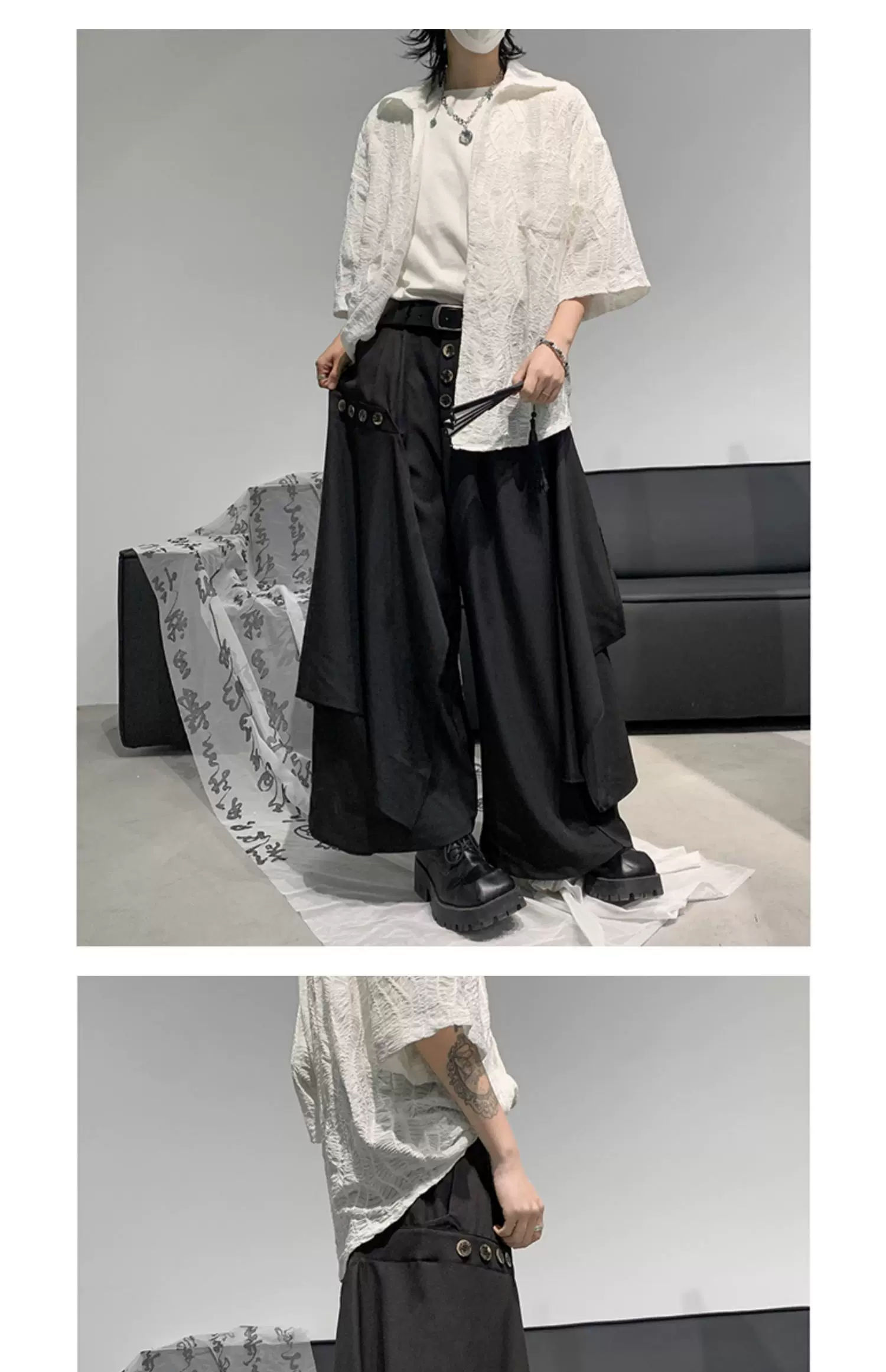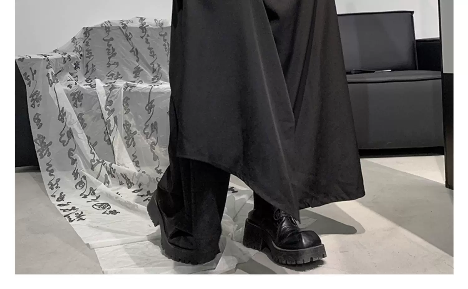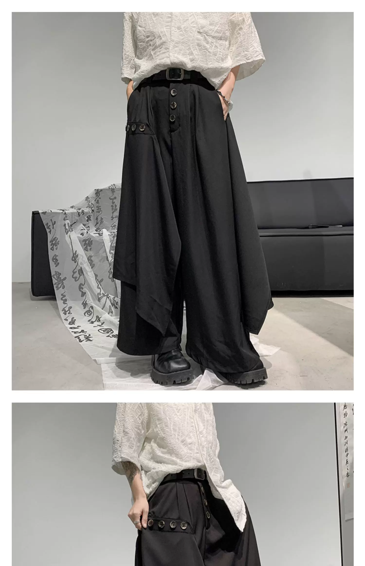 - Quần thiết kế bất đối xứng dành cho nam, quần ống rộng hip-hop mùa hè, phong cách Yamamoto thời thượng, quần âu cá tính, thoải mái.