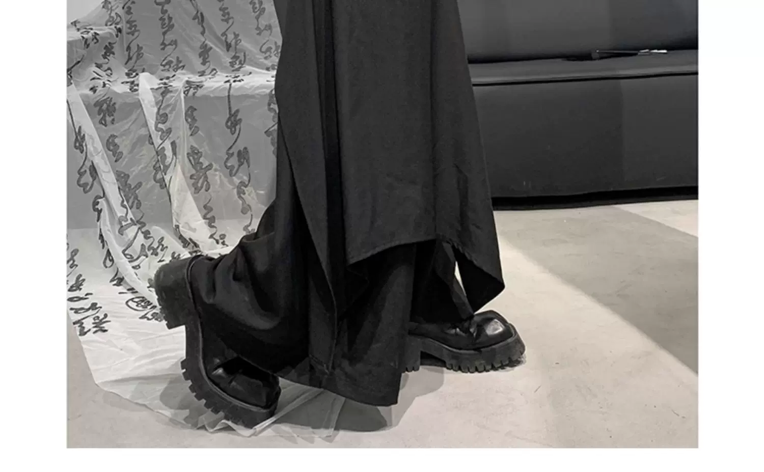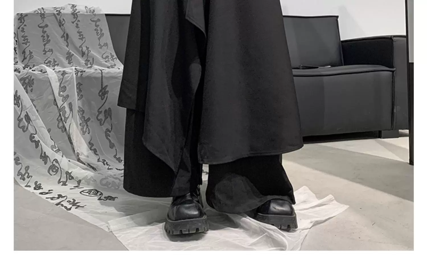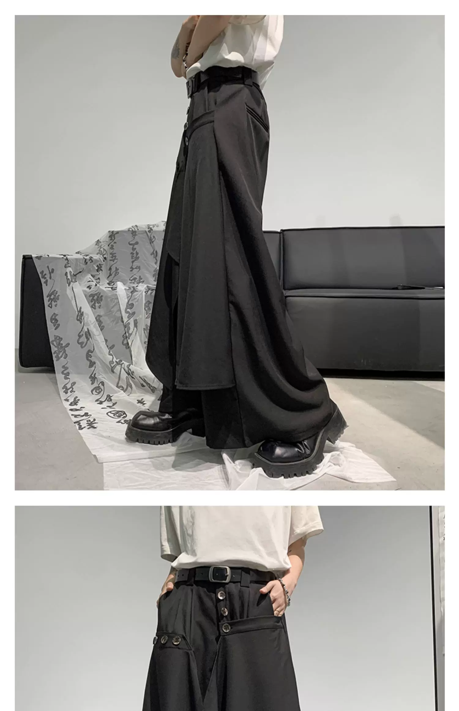 - Quần thiết kế bất đối xứng dành cho nam, quần ống rộng hip-hop mùa hè, phong cách Yamamoto thời thượng, quần âu cá tính, thoải mái.