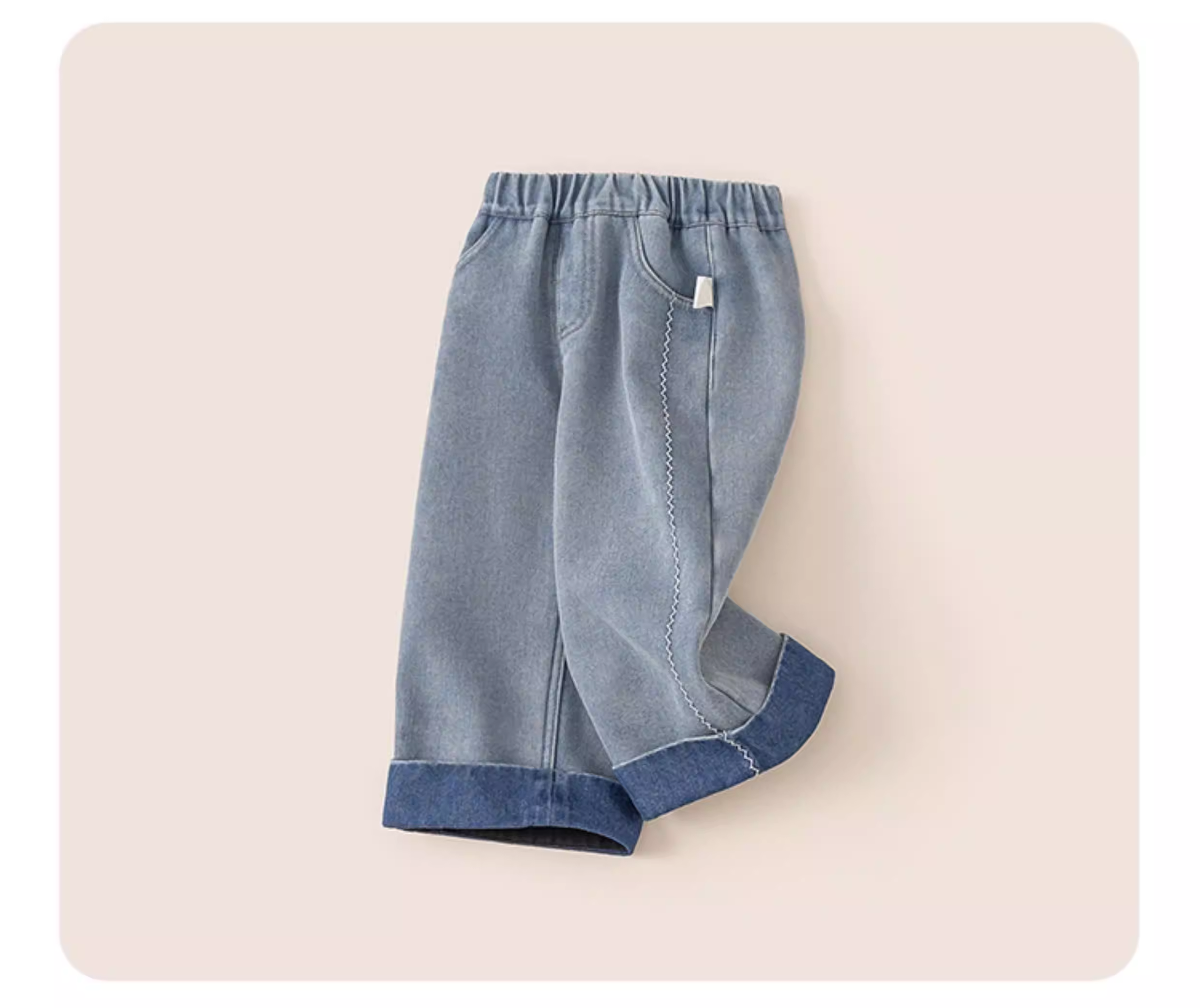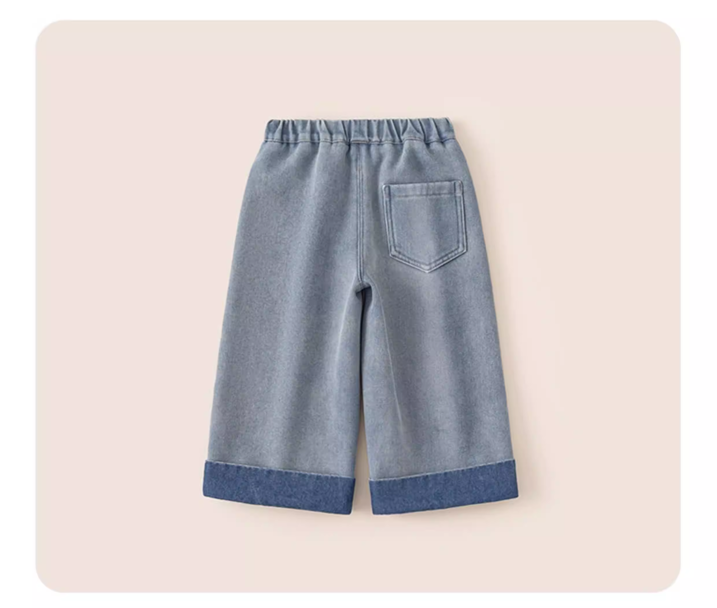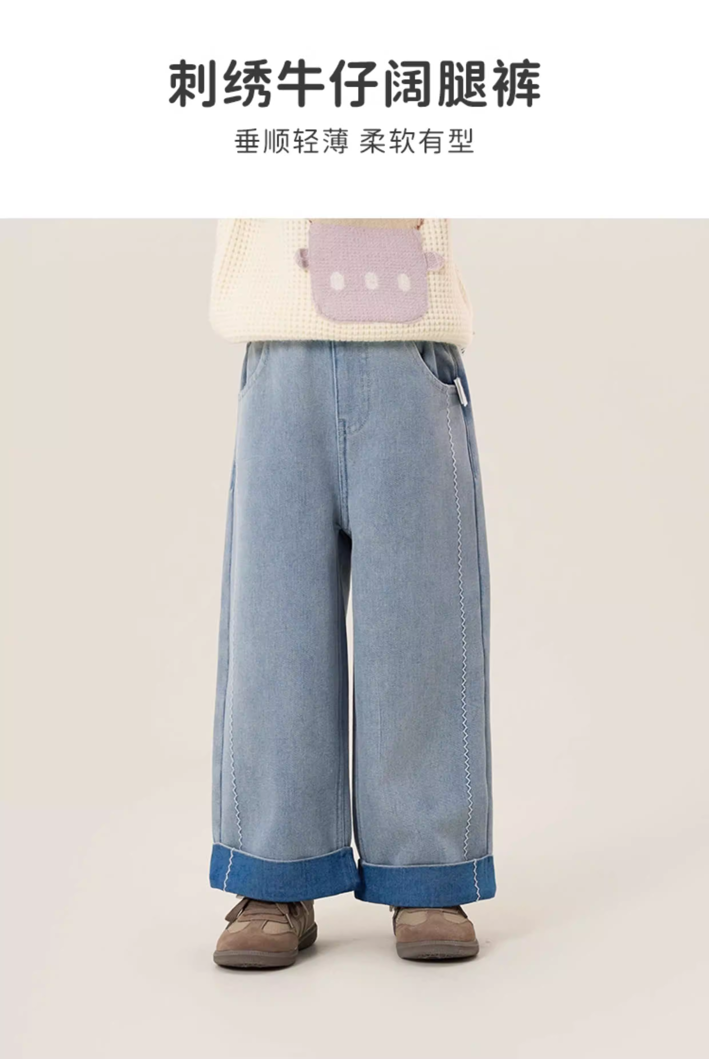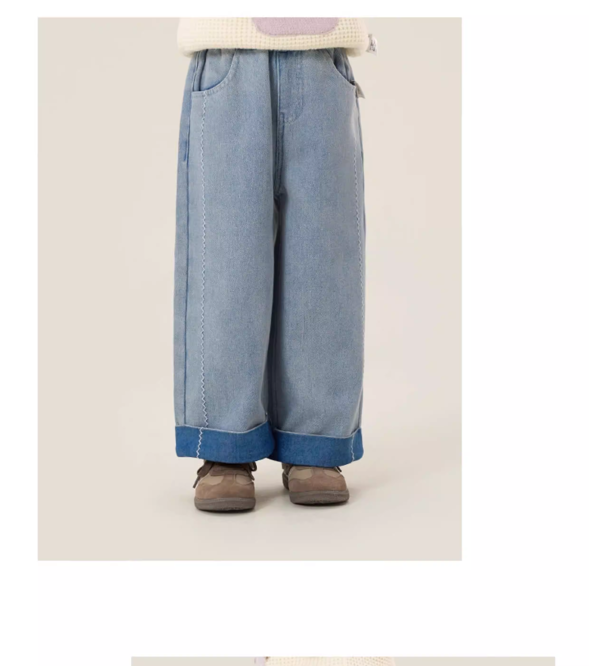- Quần trẻ em INSbobo thu đông 2025 bộ sưu tập thu mới quần bò bé gái quần ống đứng dài