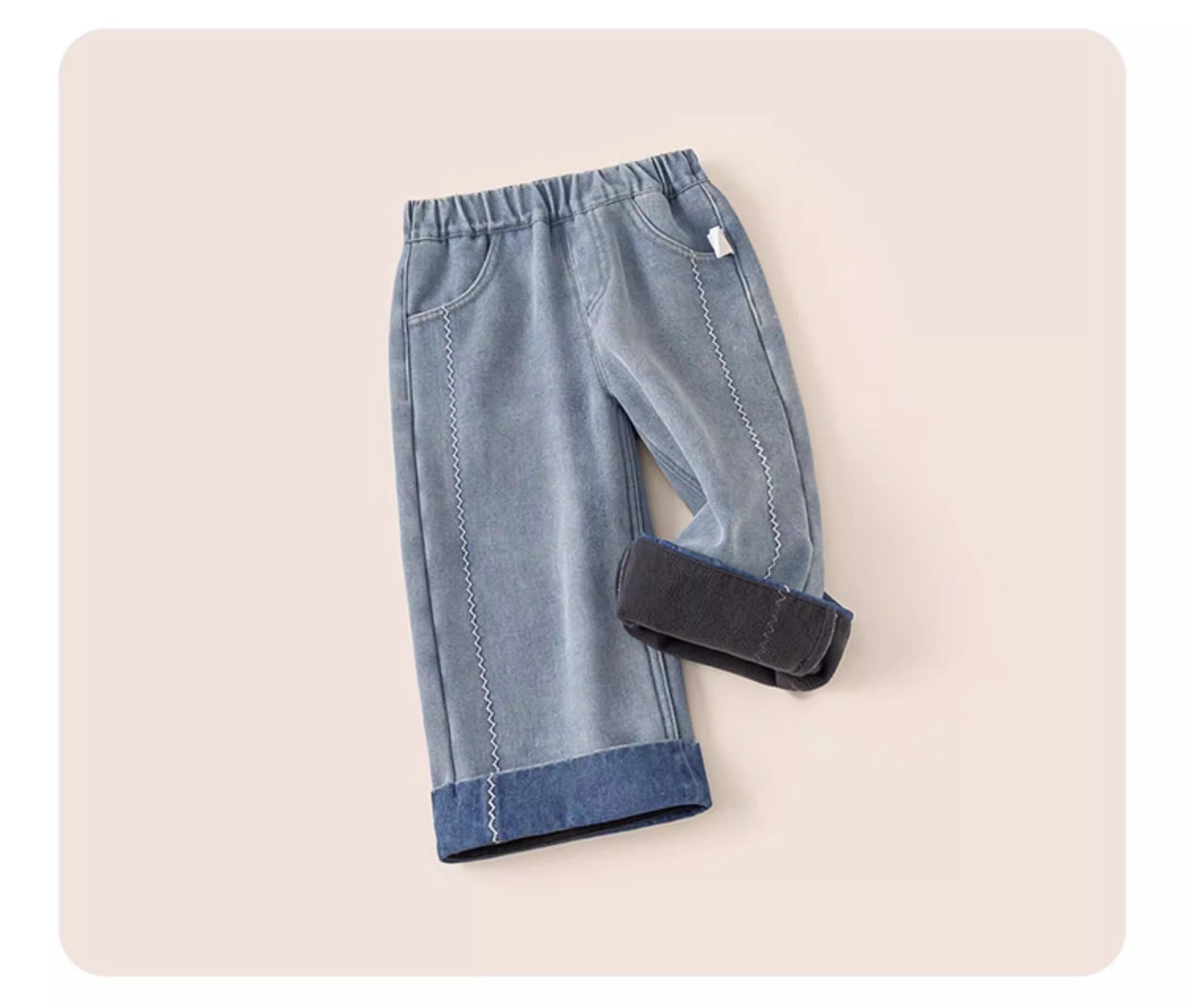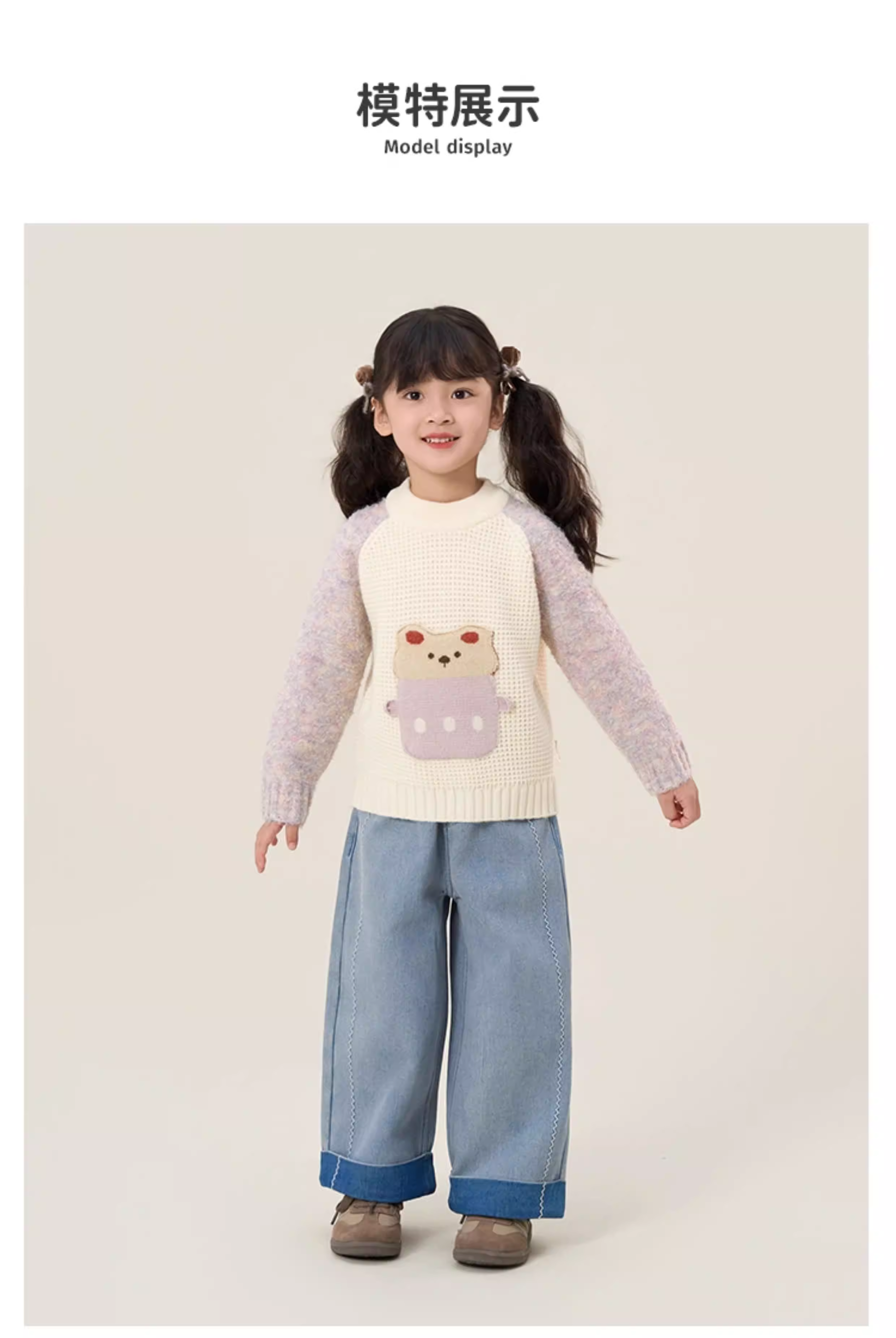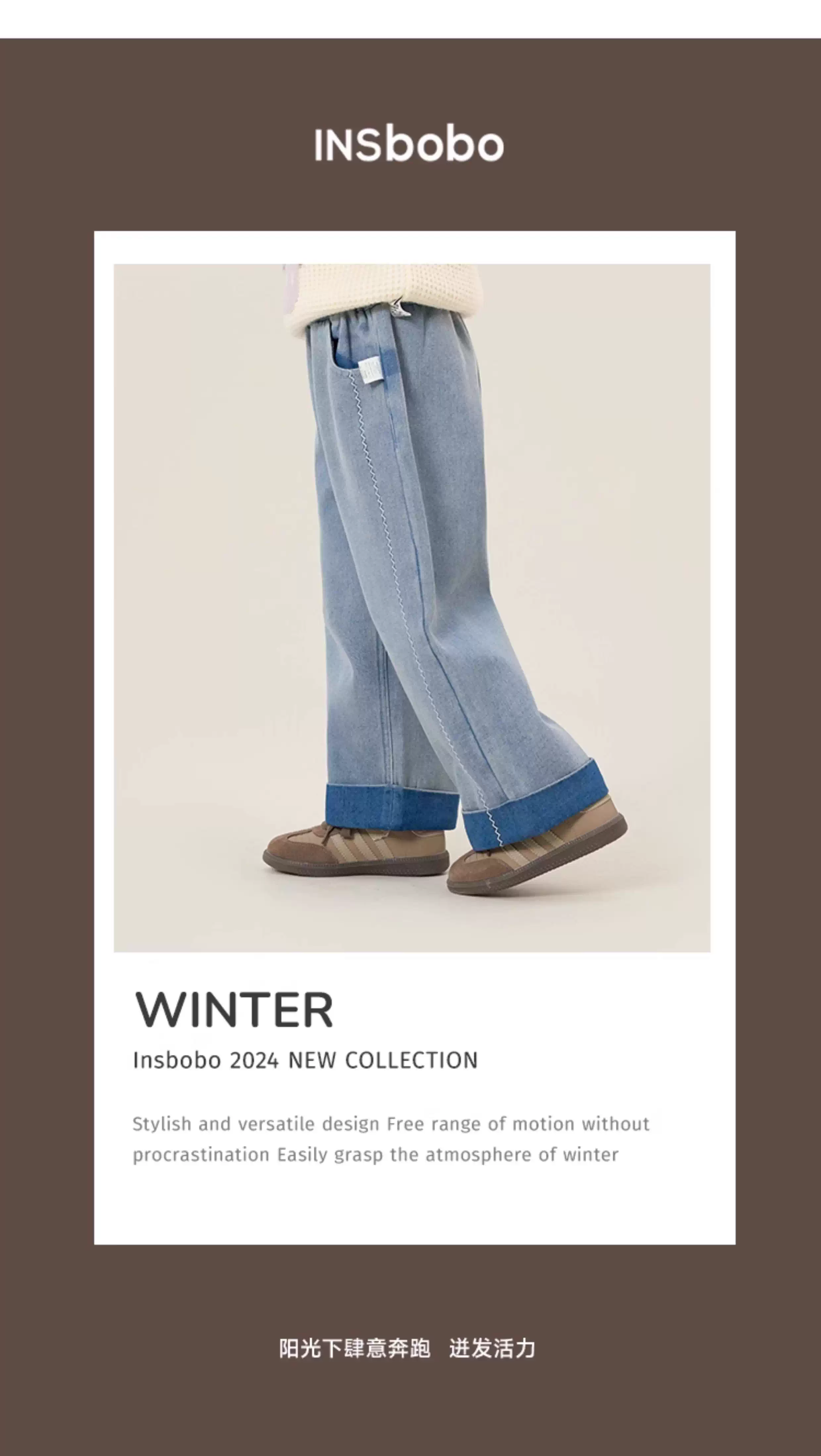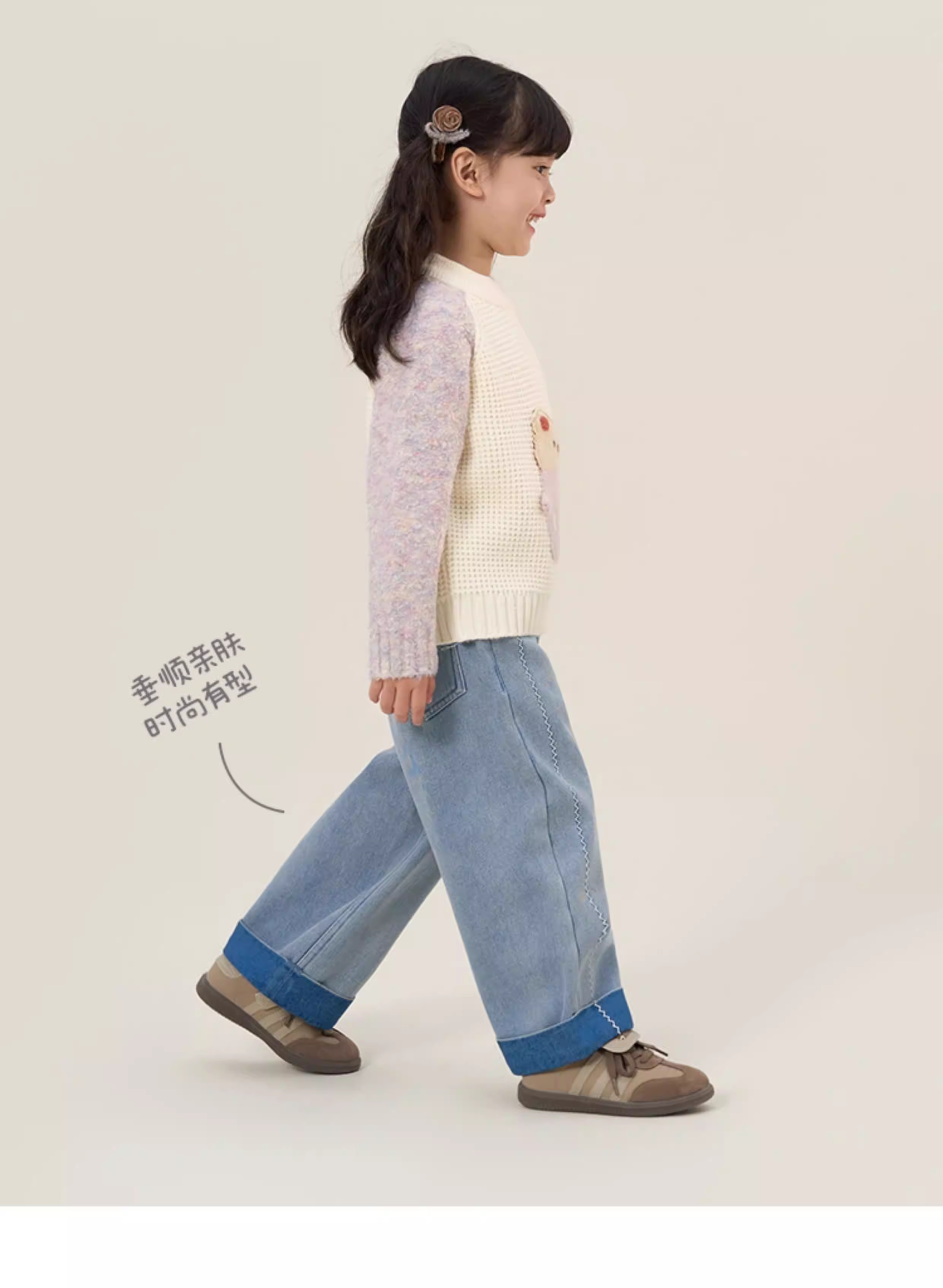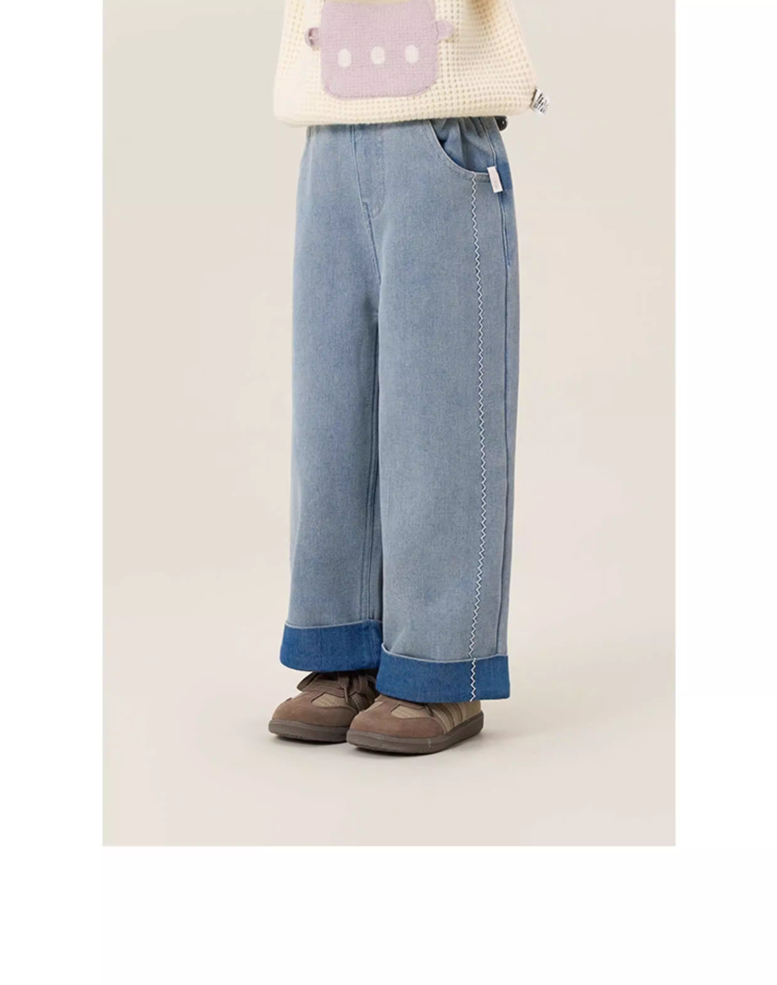- Quần trẻ em INSbobo thu đông 2025 bộ sưu tập thu mới quần bò bé gái quần ống đứng dài
