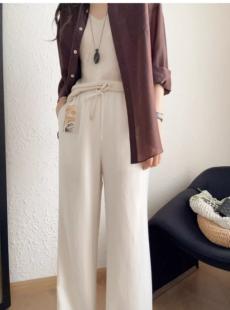 - Quần vải lanh chống nhăn! Quần ống rộng dáng rộng nhẹ và thoáng khí có cạp cao, quần ống đứng thẳng thon gọn dành cho nữ, mới dành cho mùa hè.