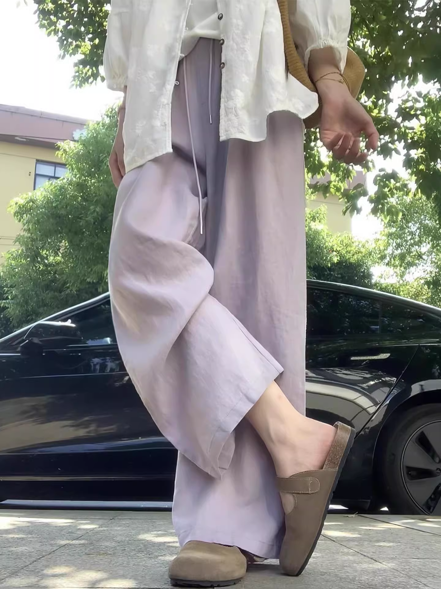 Quần vải lanh ống rộng nữ hè 2025 mỏng, size lớn, cạp cao, dáng rộng, suôn mềm, tôn dáng, quần mặc nhà thoải mái