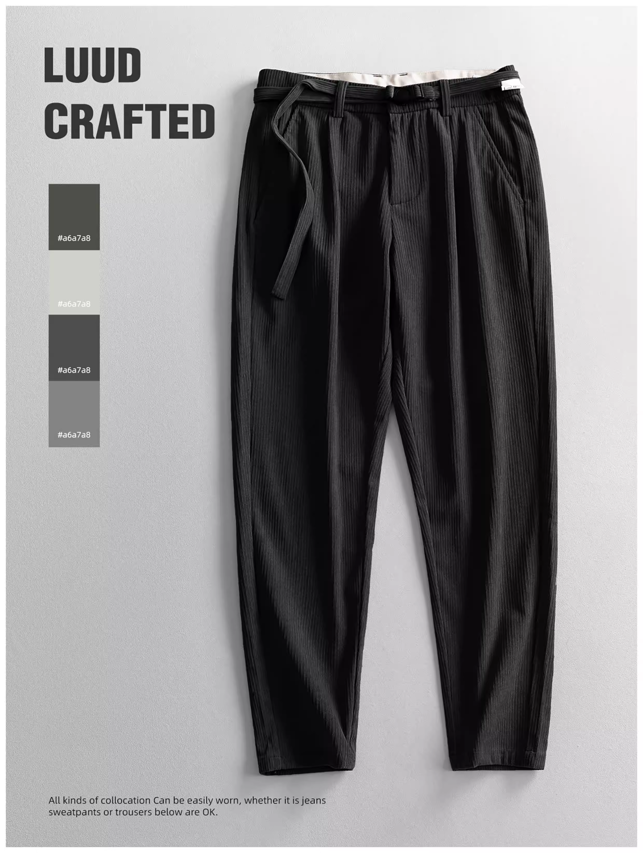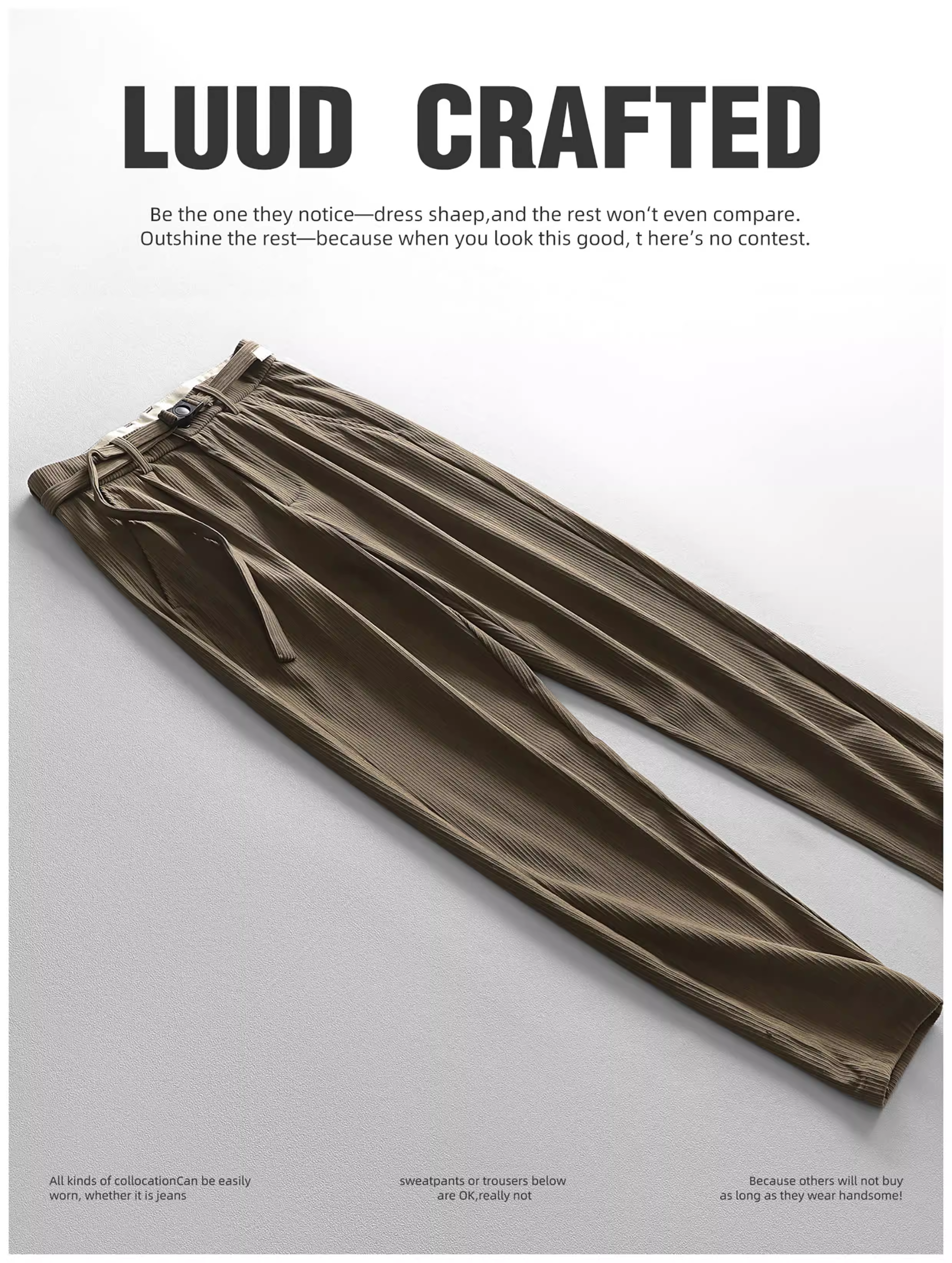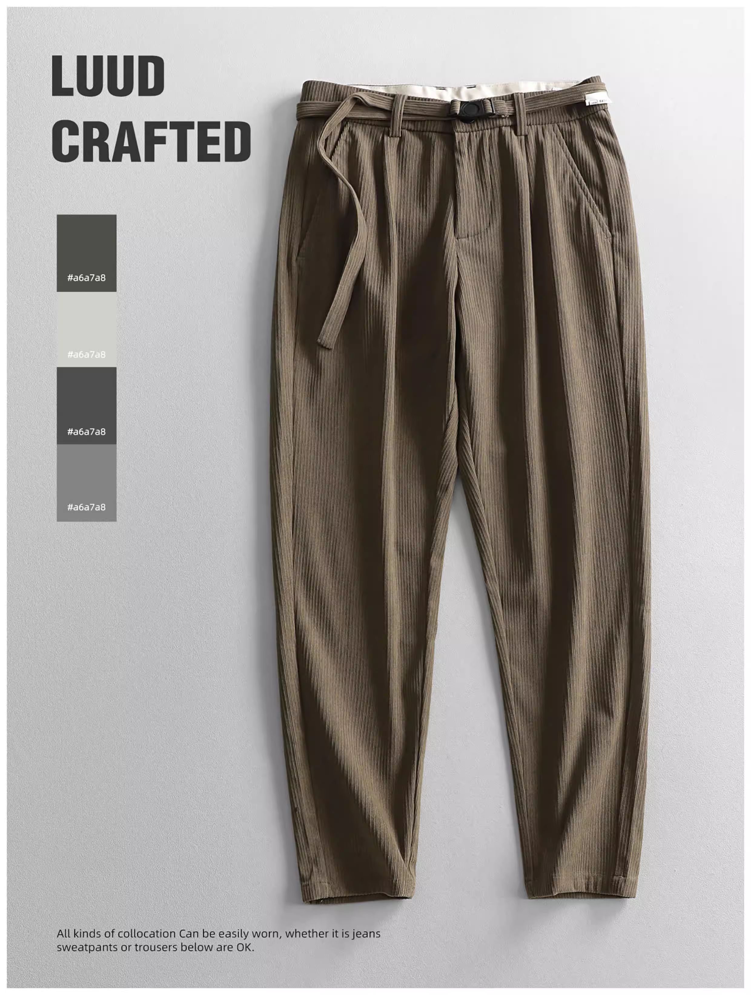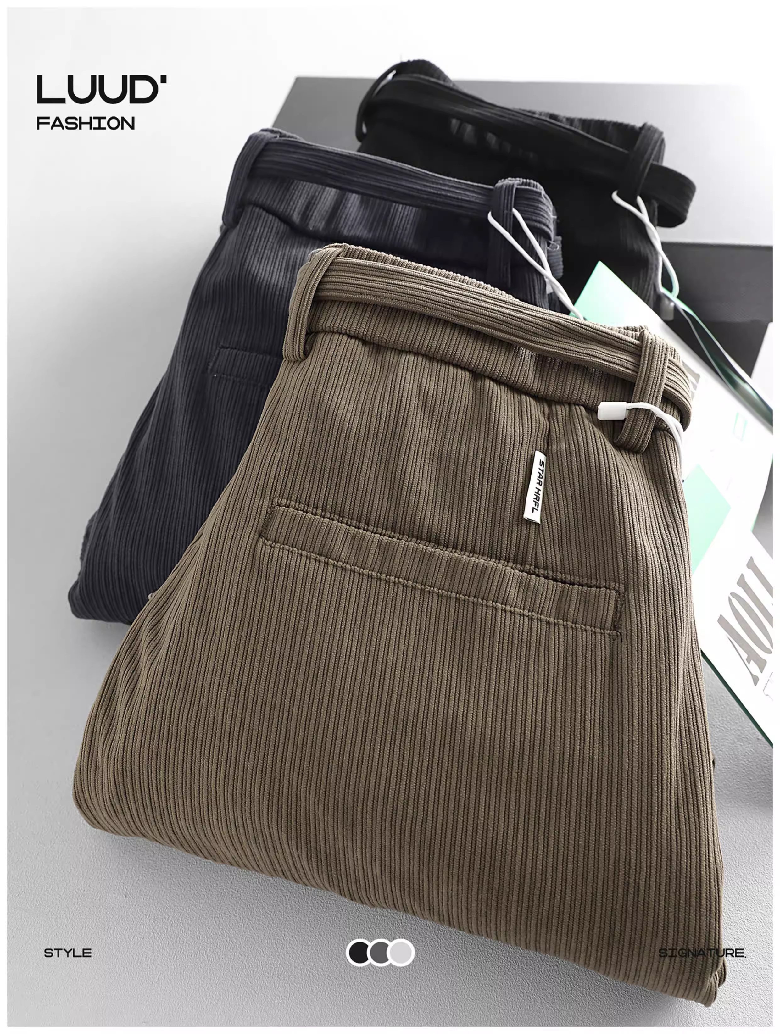Quần vải nhung kiểu cổ điển Nhật Bản LUUD dành cho nam, quần ống côn ấm áp mùa thu đông có thắt lưng, quần dài thường ngày