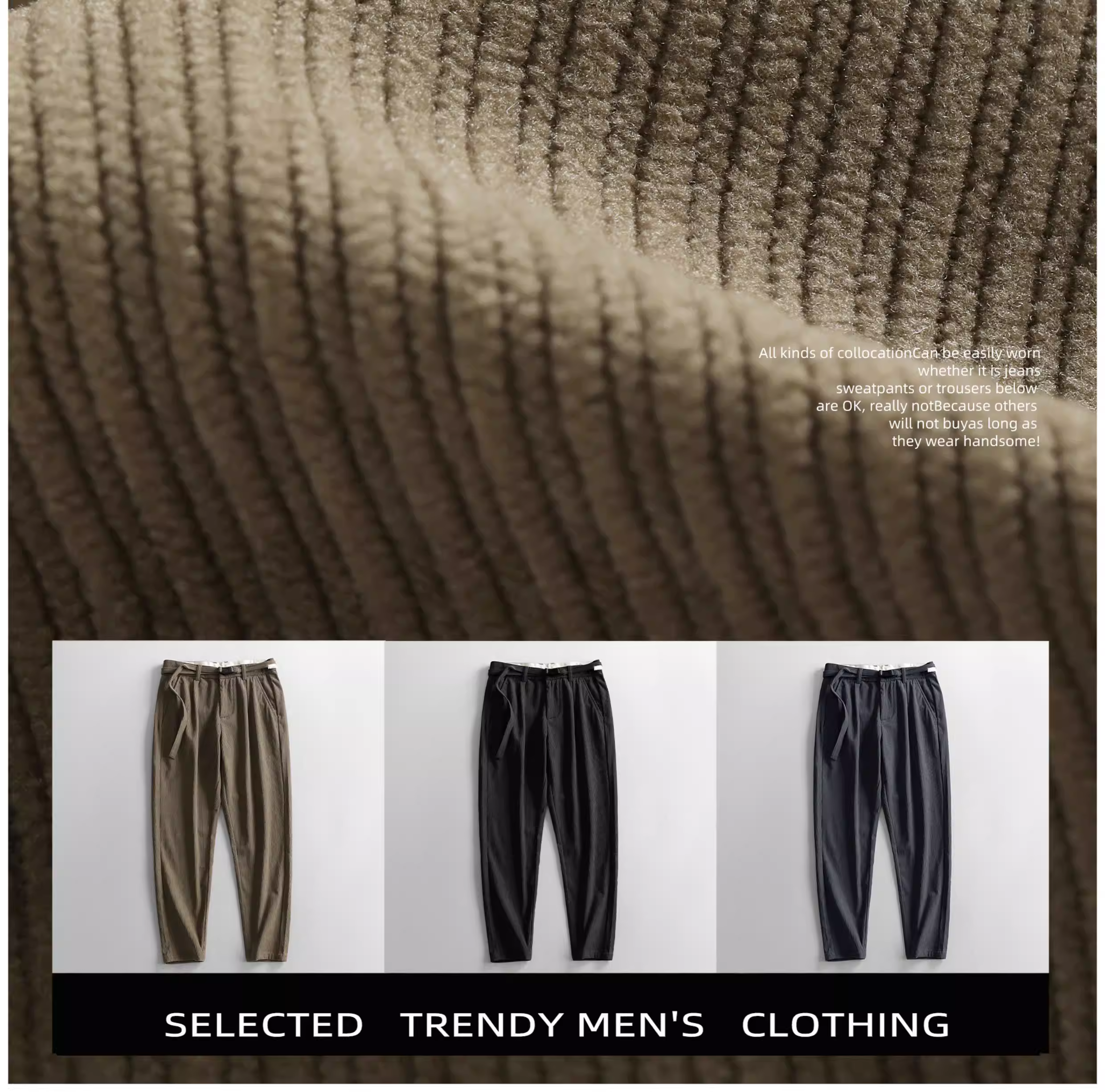 - Quần vải nhung kiểu cổ điển Nhật Bản LUUD dành cho nam, quần ống côn ấm áp mùa thu đông có thắt lưng, quần dài thường ngày