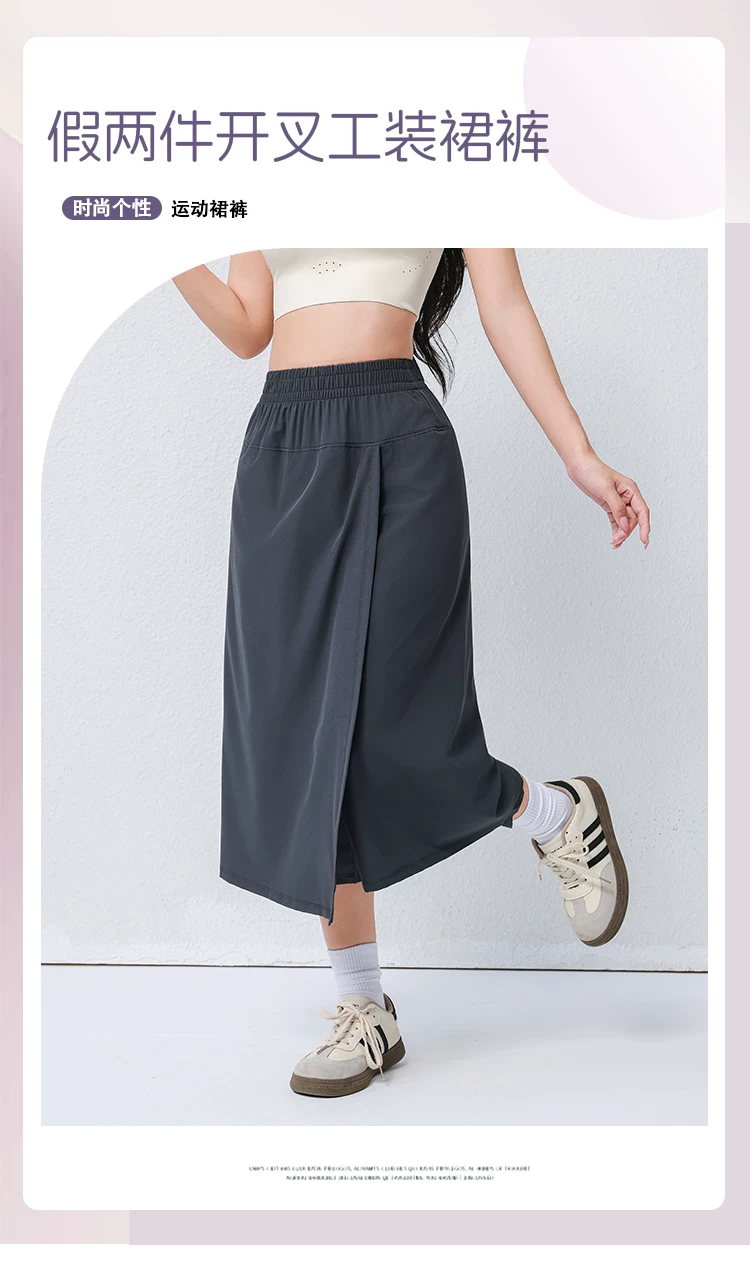 Quần váy công sở Jiumai Yipin Grey Yamamoto dành cho nữ, Váy thể thao mỏng nhanh khô, Váy ống rộng tập thể dục chạy bộ thông thường.