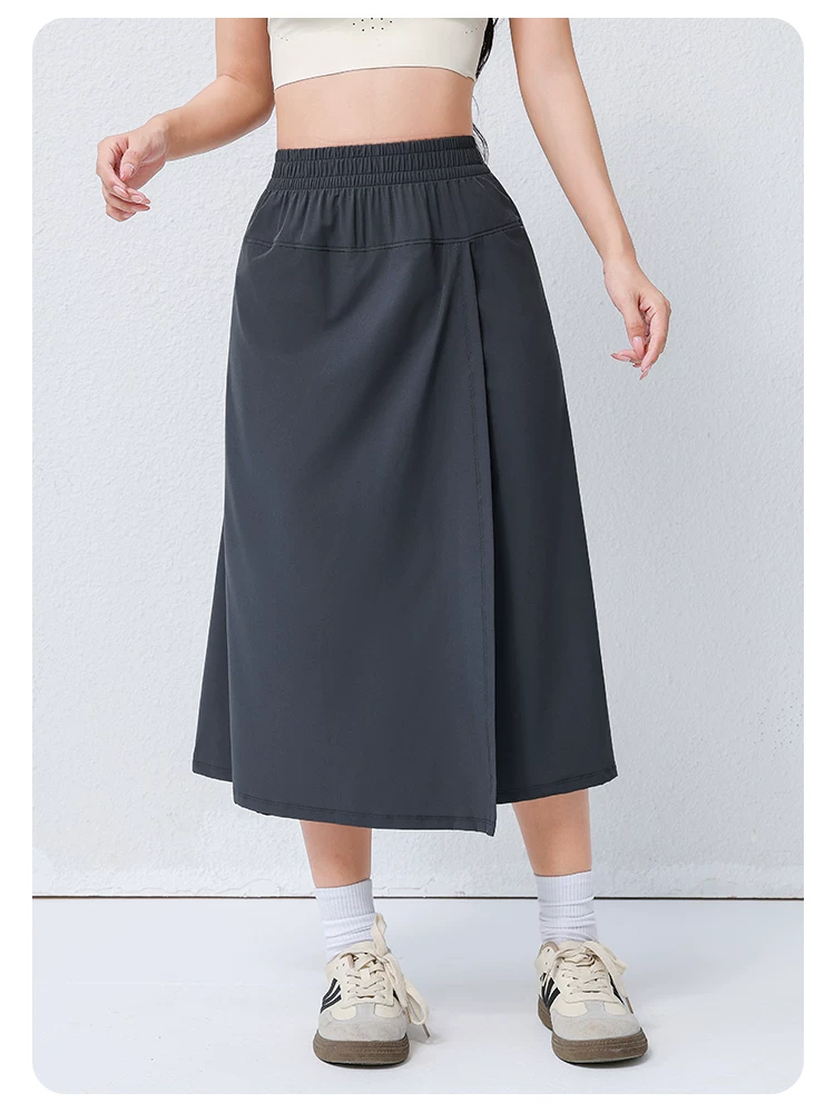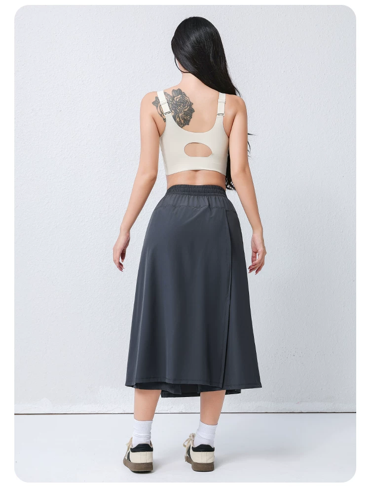 - Quần váy công sở Jiumai Yipin Grey Yamamoto dành cho nữ, Váy thể thao mỏng nhanh khô, Váy ống rộng tập thể dục chạy bộ thông thường.