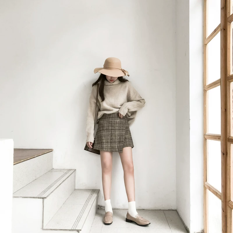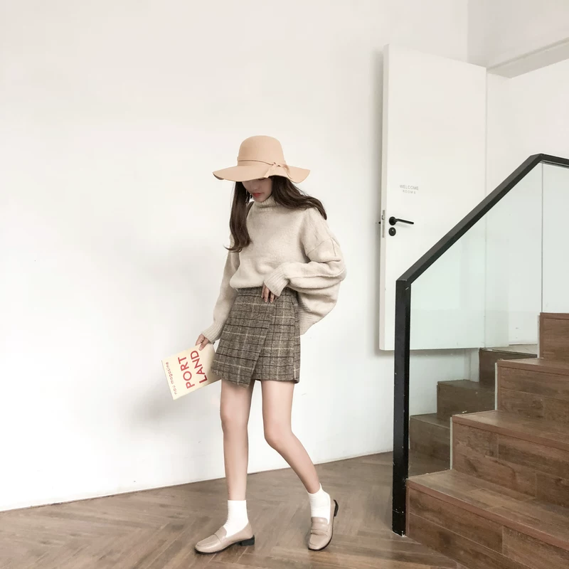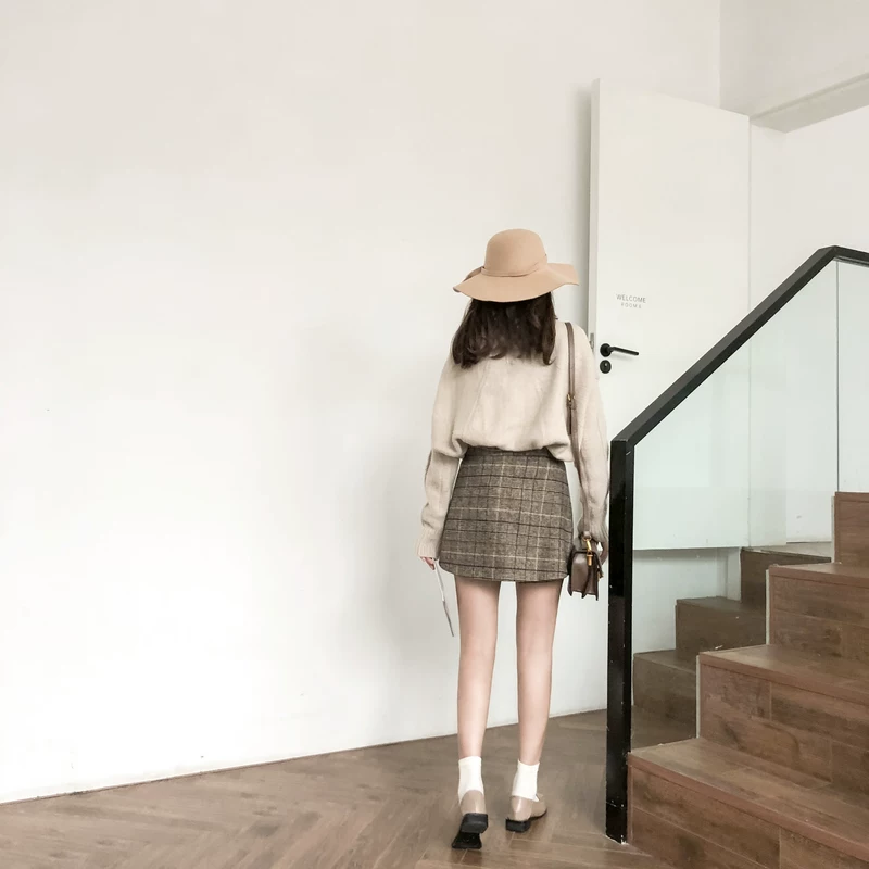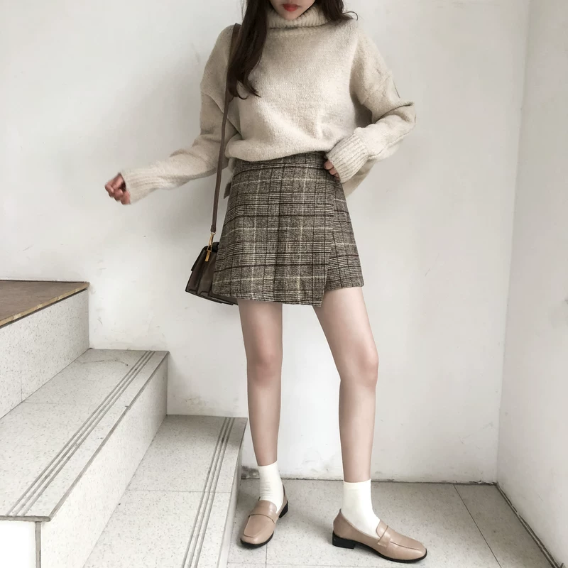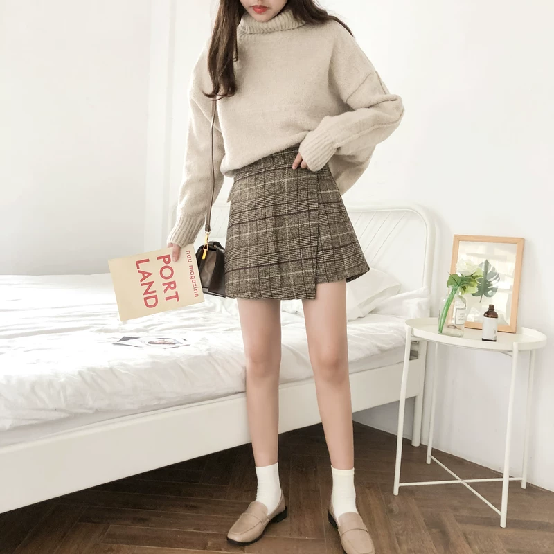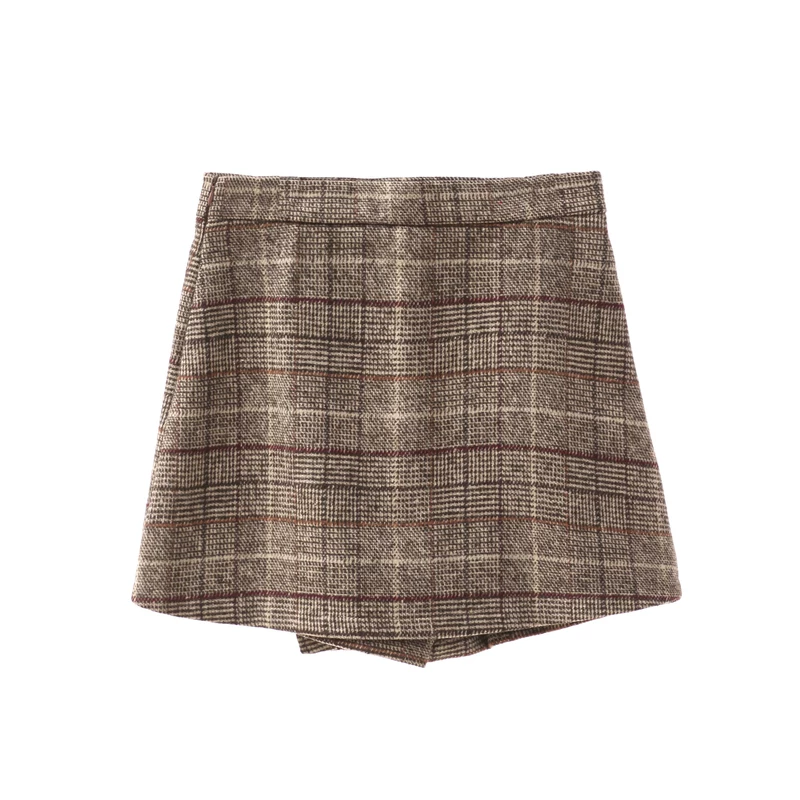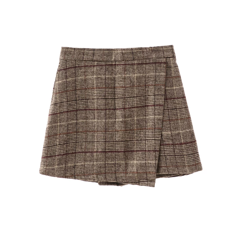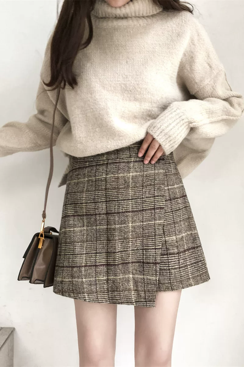 - Quần váy len kẻ ca rô mùa thu đông 2023 dành cho nữ cỡ lớn, chống lộ, ôm hông, kiểu dáng bất đối xứng, ngắn