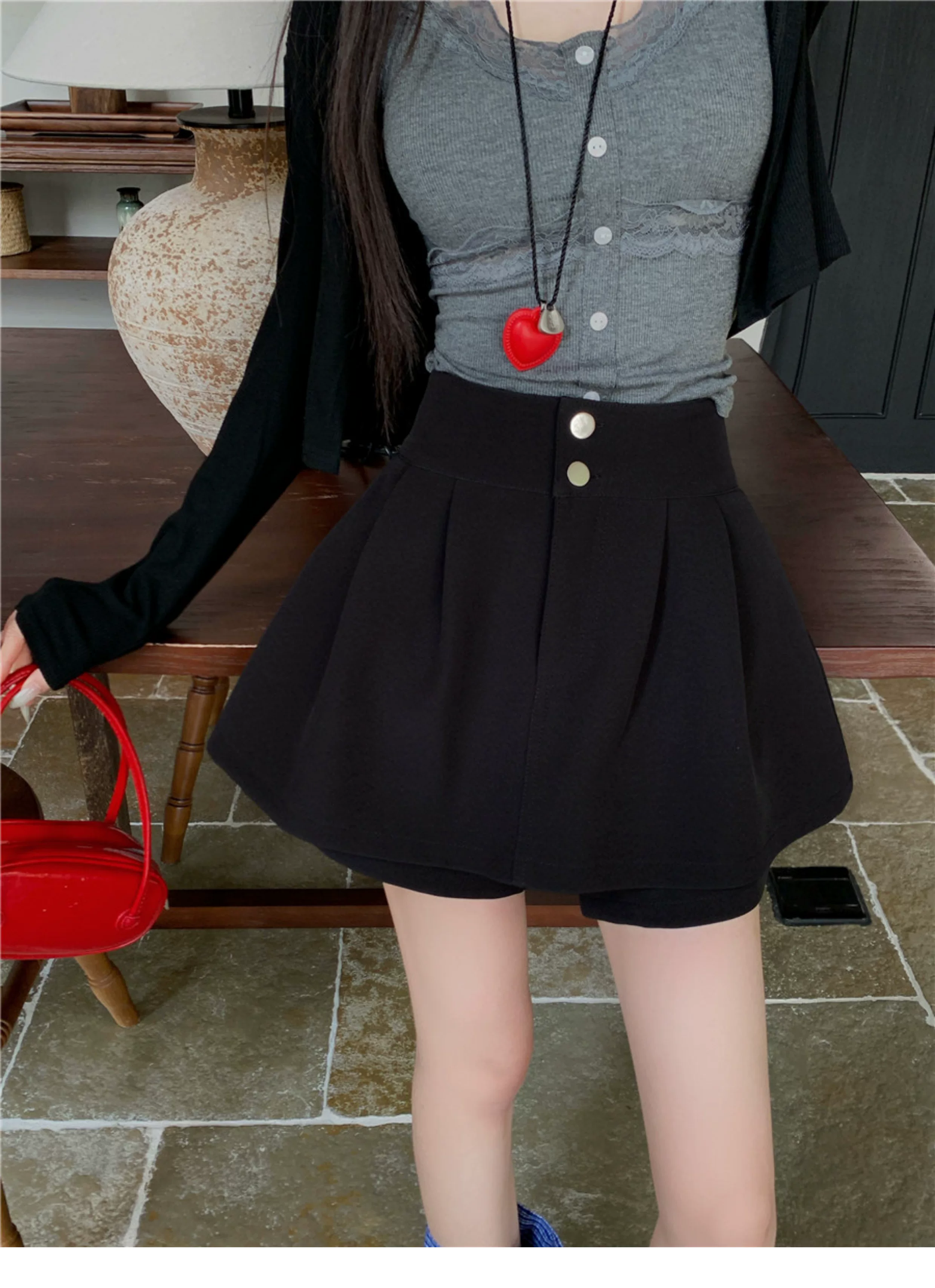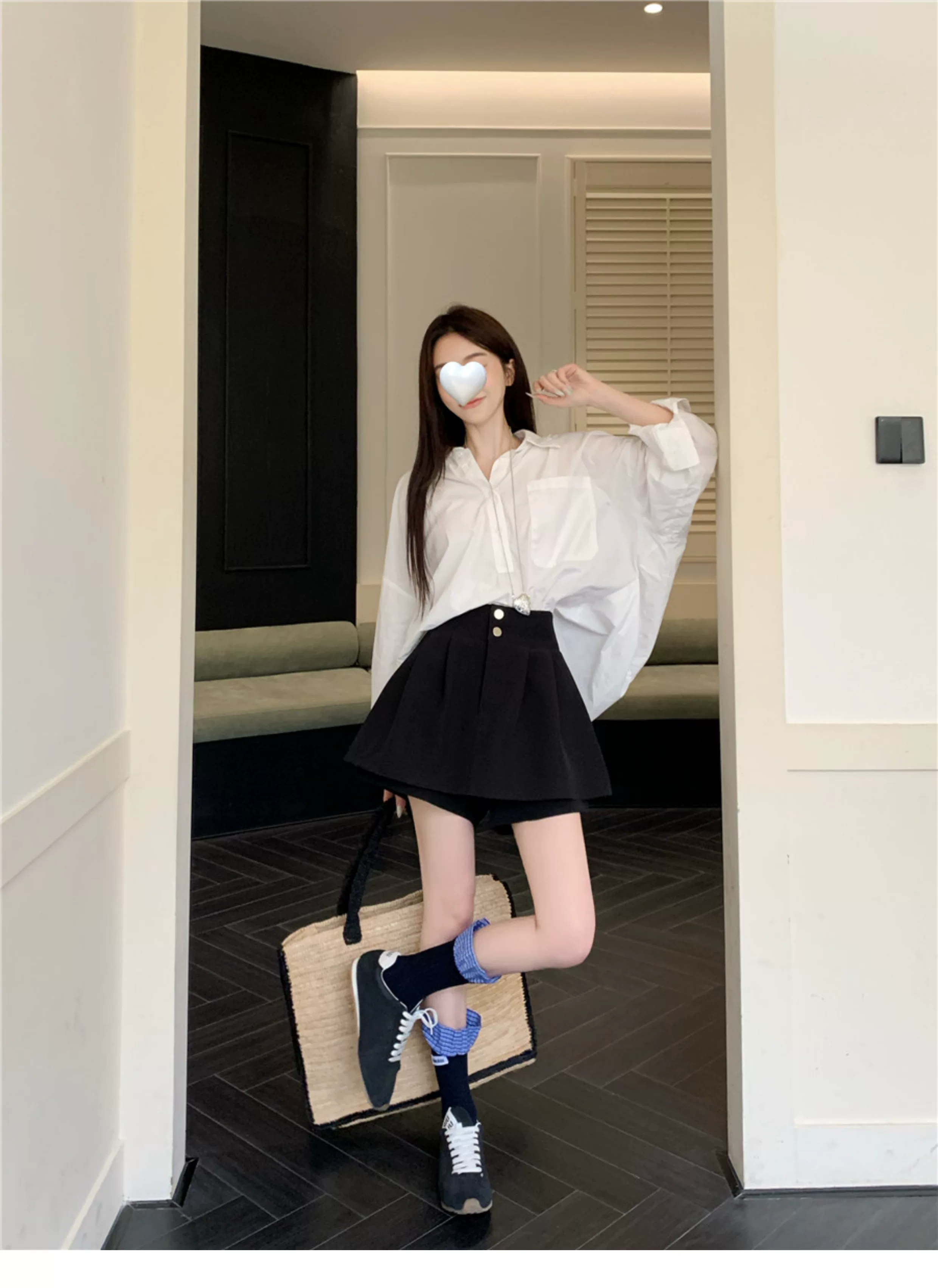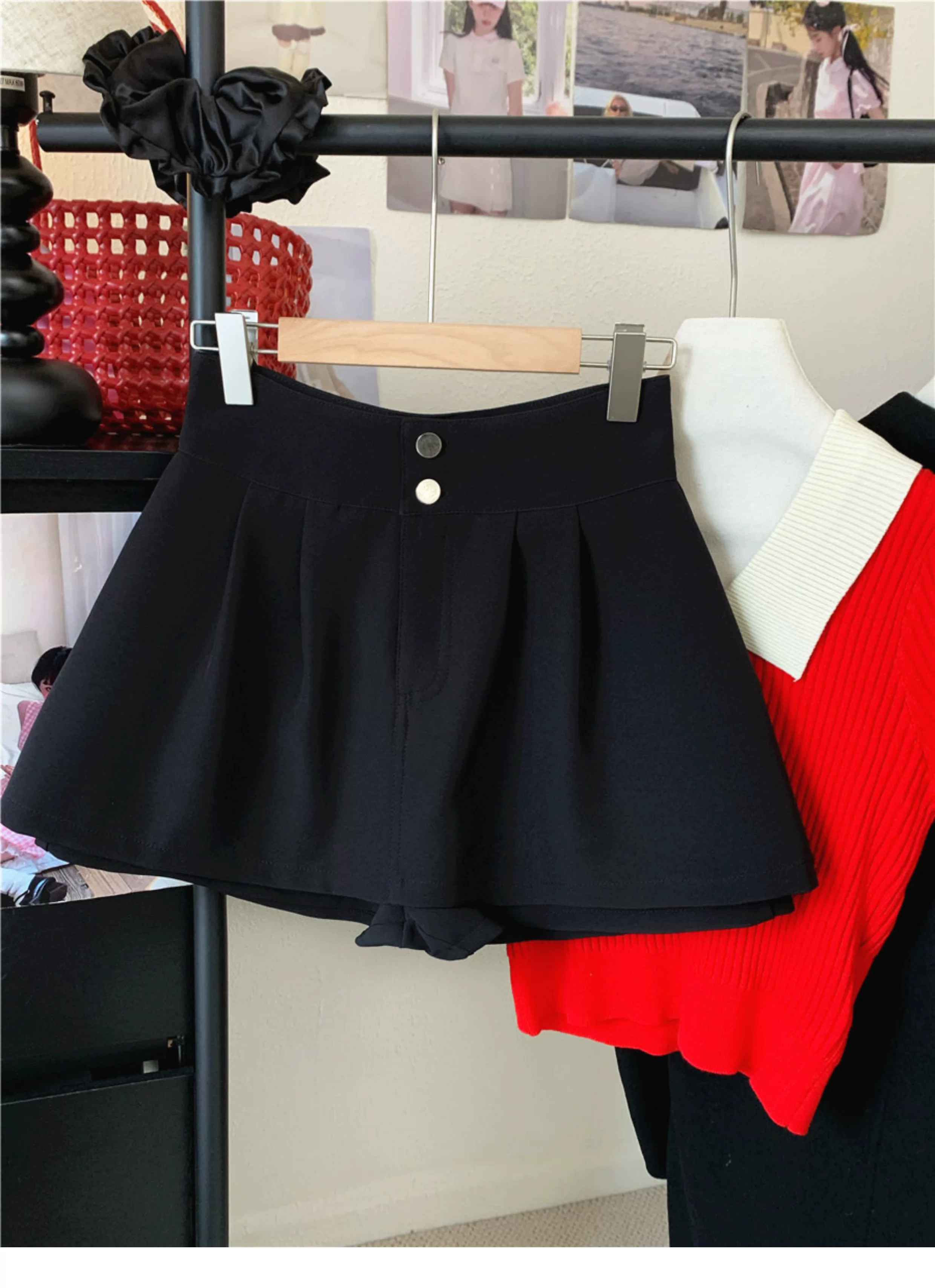 Quần váy trắng, quần short ống rộng cạp cao giảm béo cỡ lớn mùa hè mới dành cho nữ, quần váy ngắn hình nụ hoa màu đen, váy.