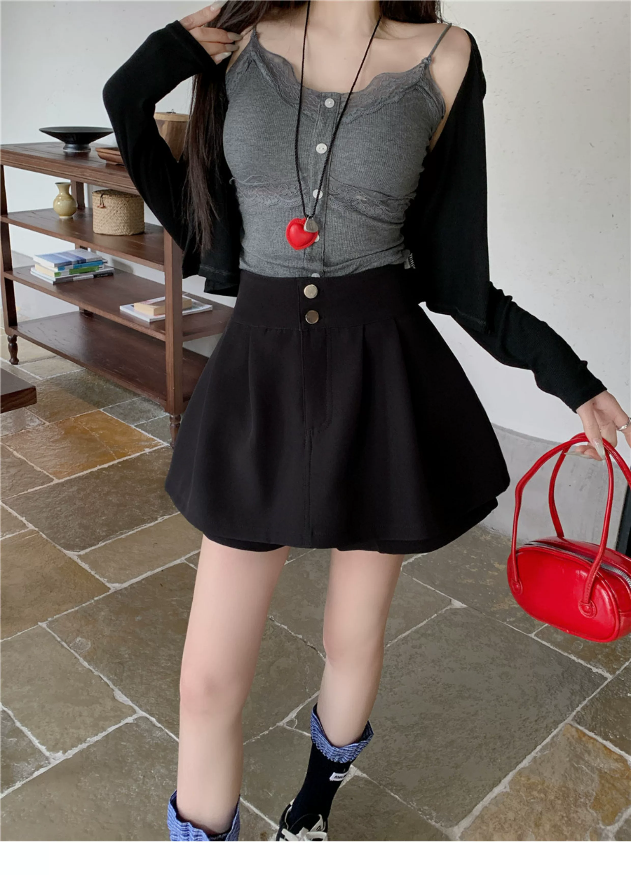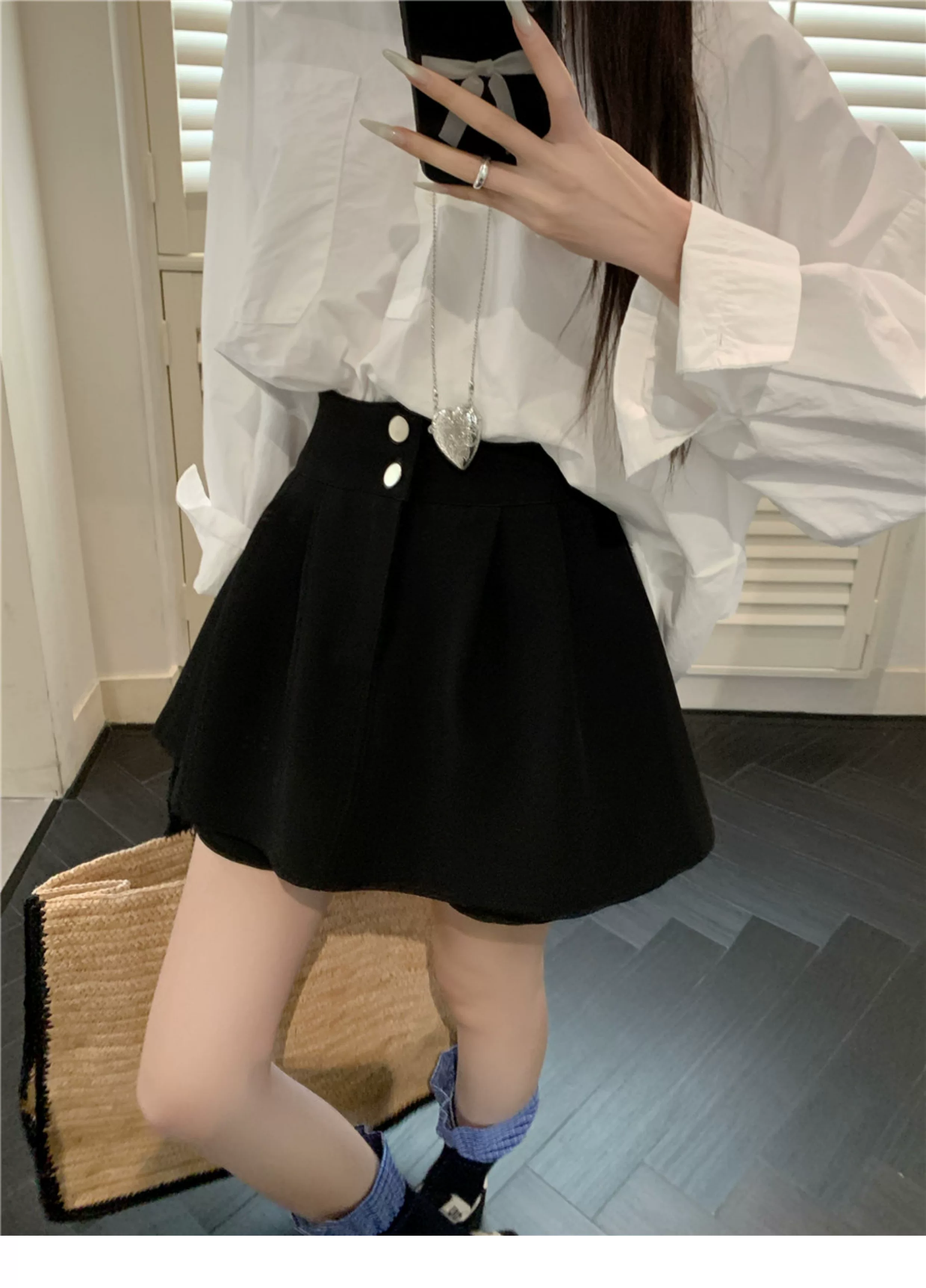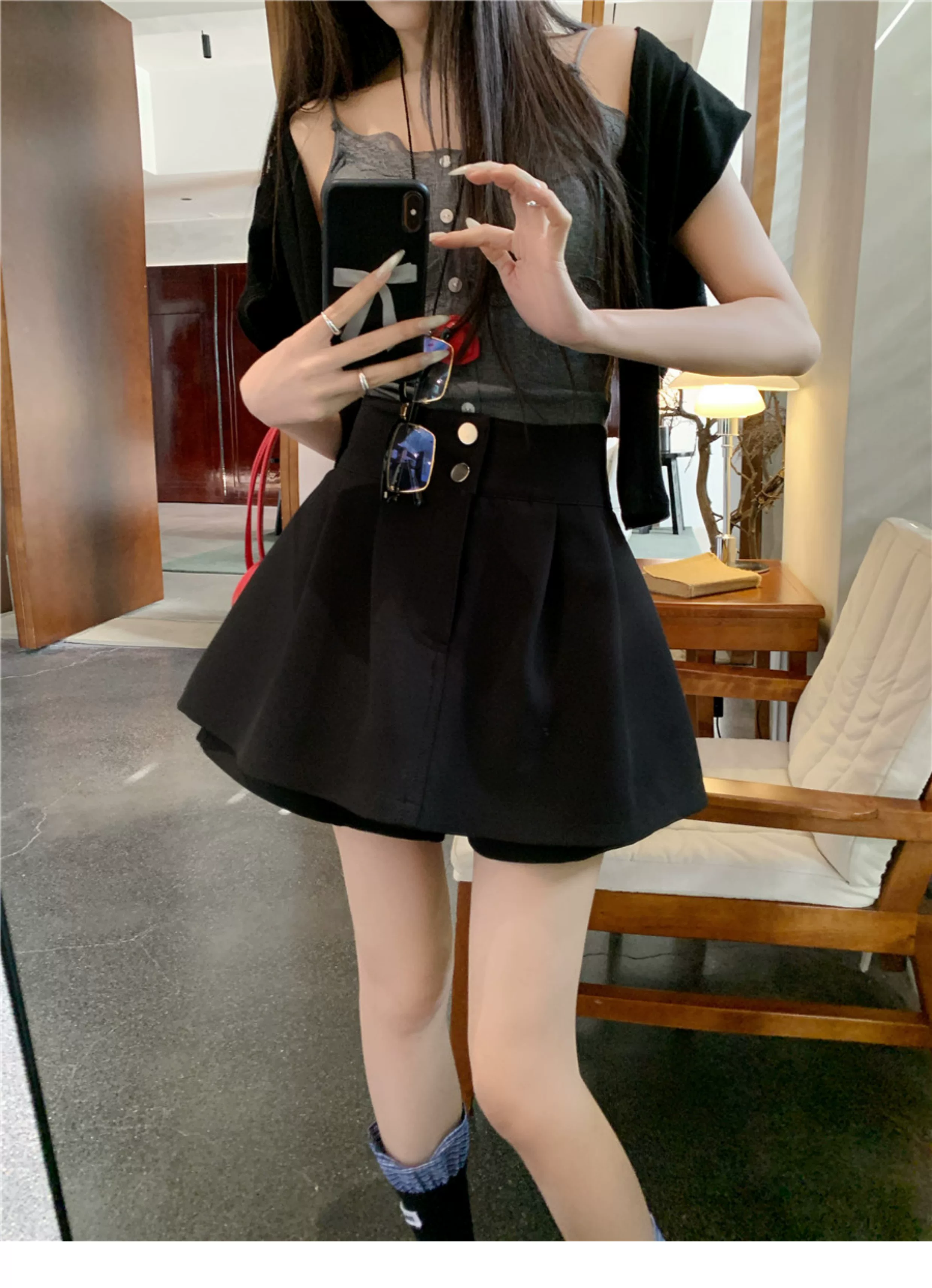 Quần váy trắng, quần short ống rộng cạp cao giảm béo cỡ lớn mùa hè mới dành cho nữ, quần váy ngắn hình nụ hoa màu đen, váy.