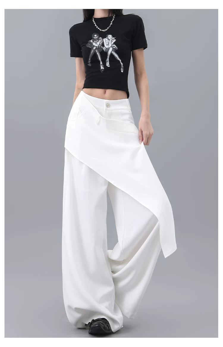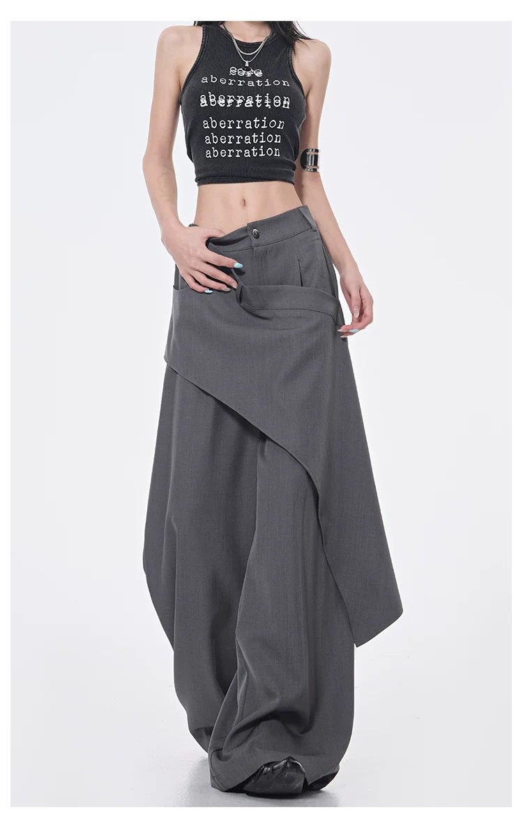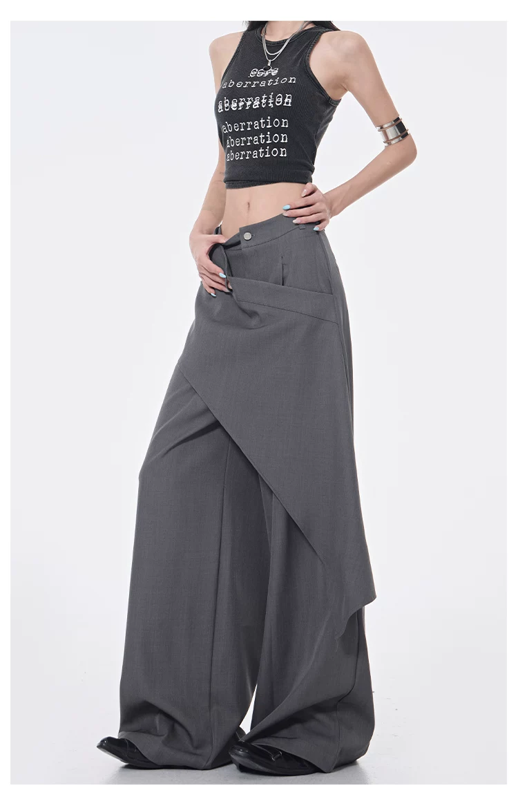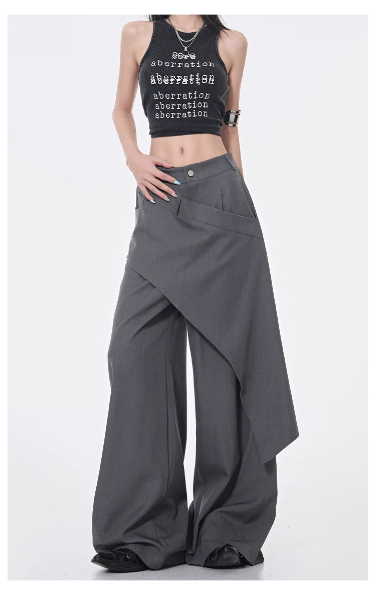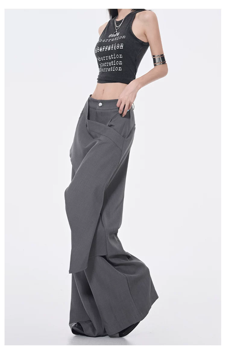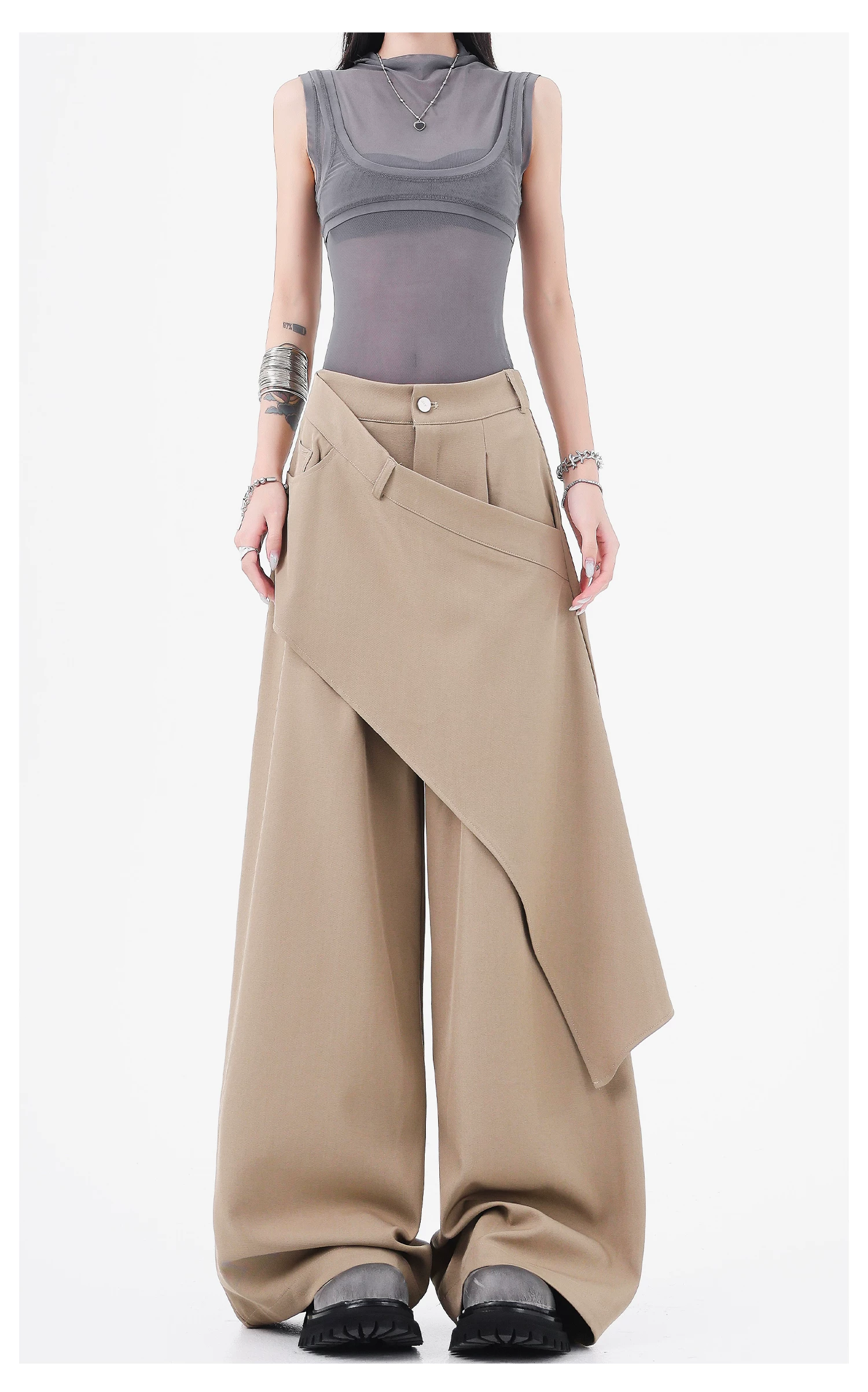 Quần vest chắp vá không đều kiểu dáng KEN STUDIO dành cho nữ, quần dài xếp ly dáng thẳng lưng cao mùa hè