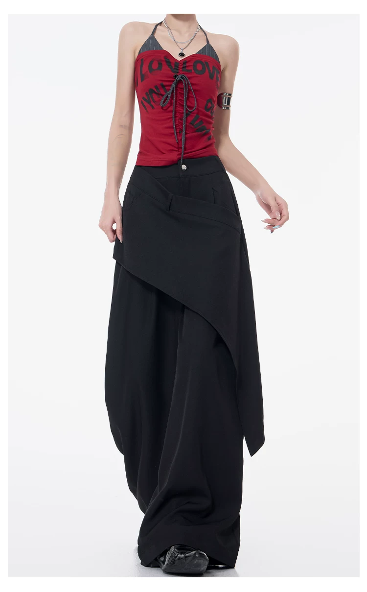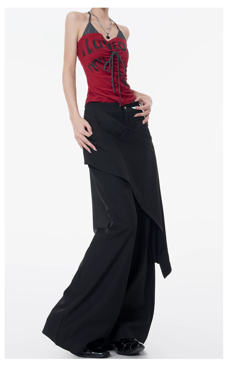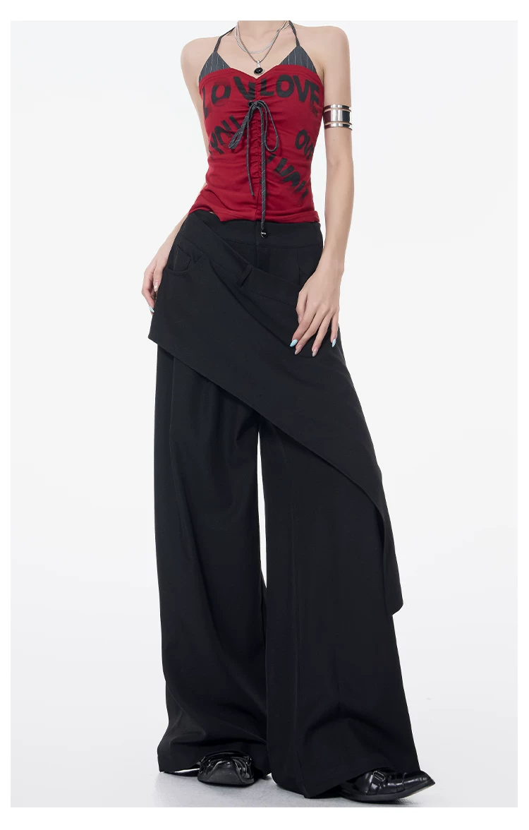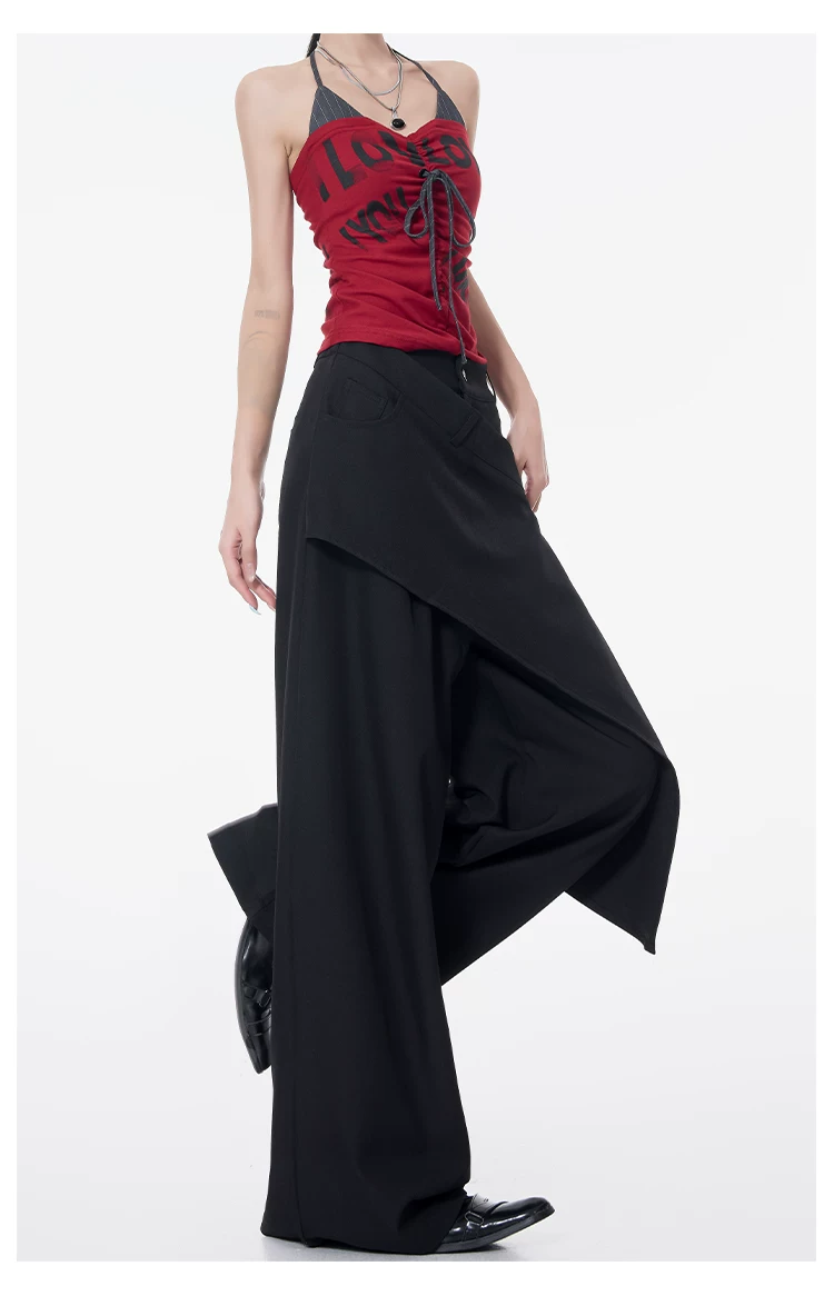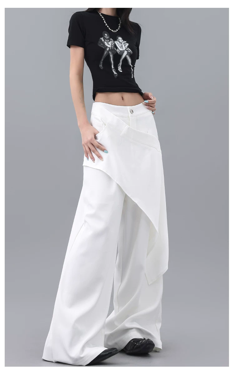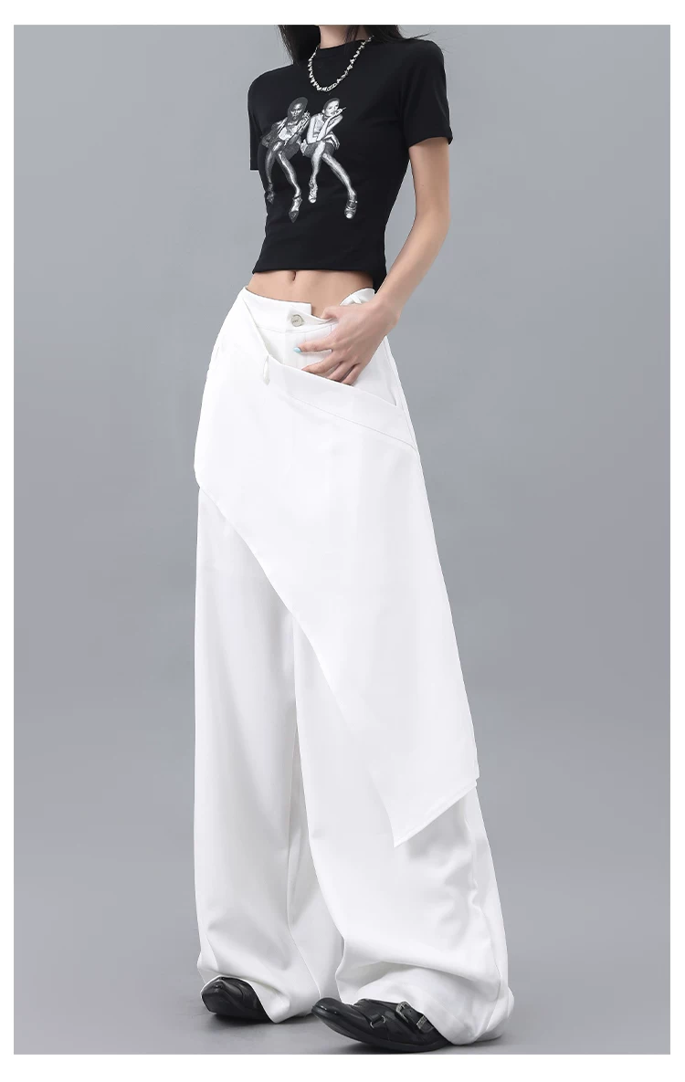 Quần vest chắp vá không đều kiểu dáng KEN STUDIO dành cho nữ, quần dài xếp ly dáng thẳng lưng cao mùa hè
