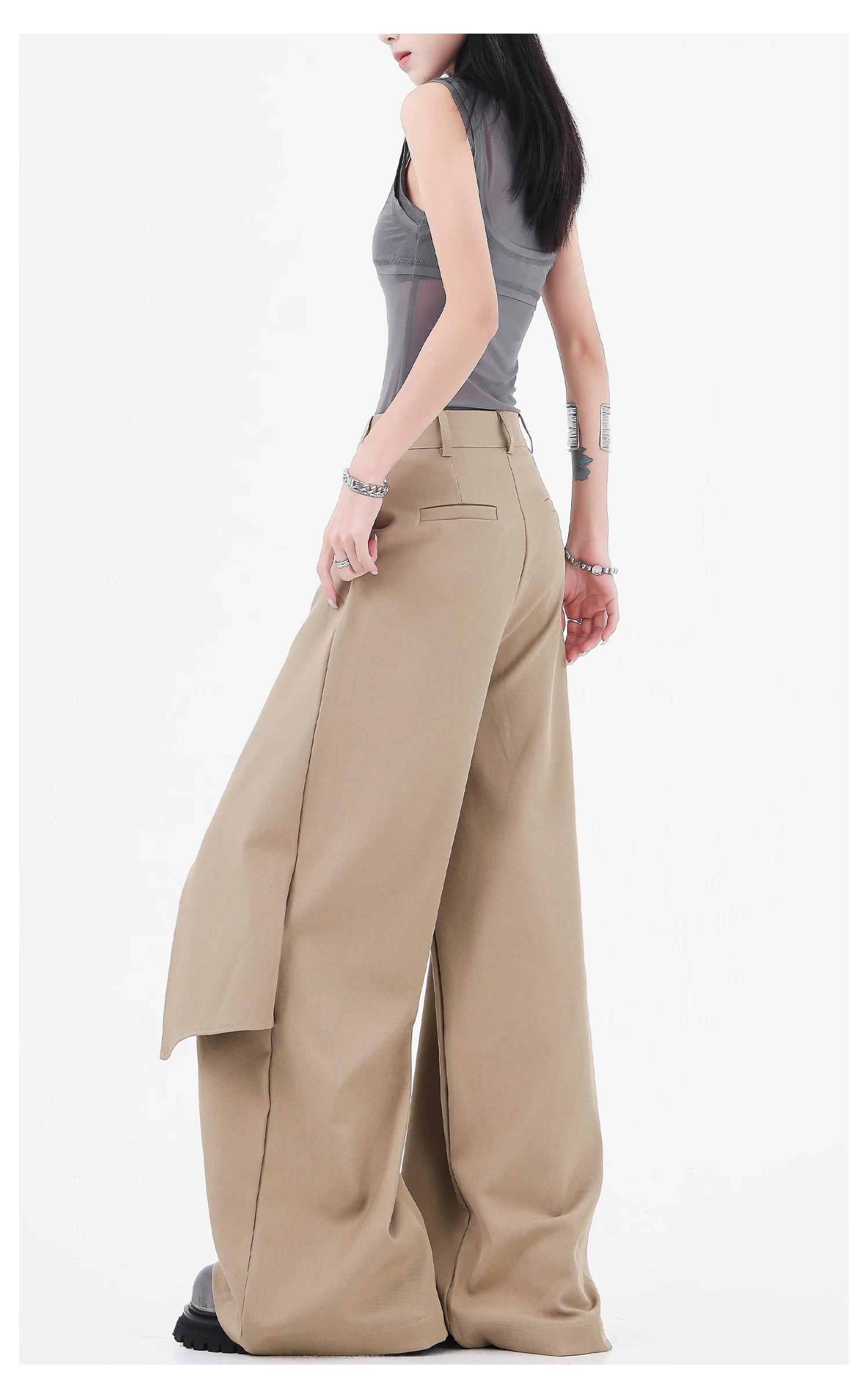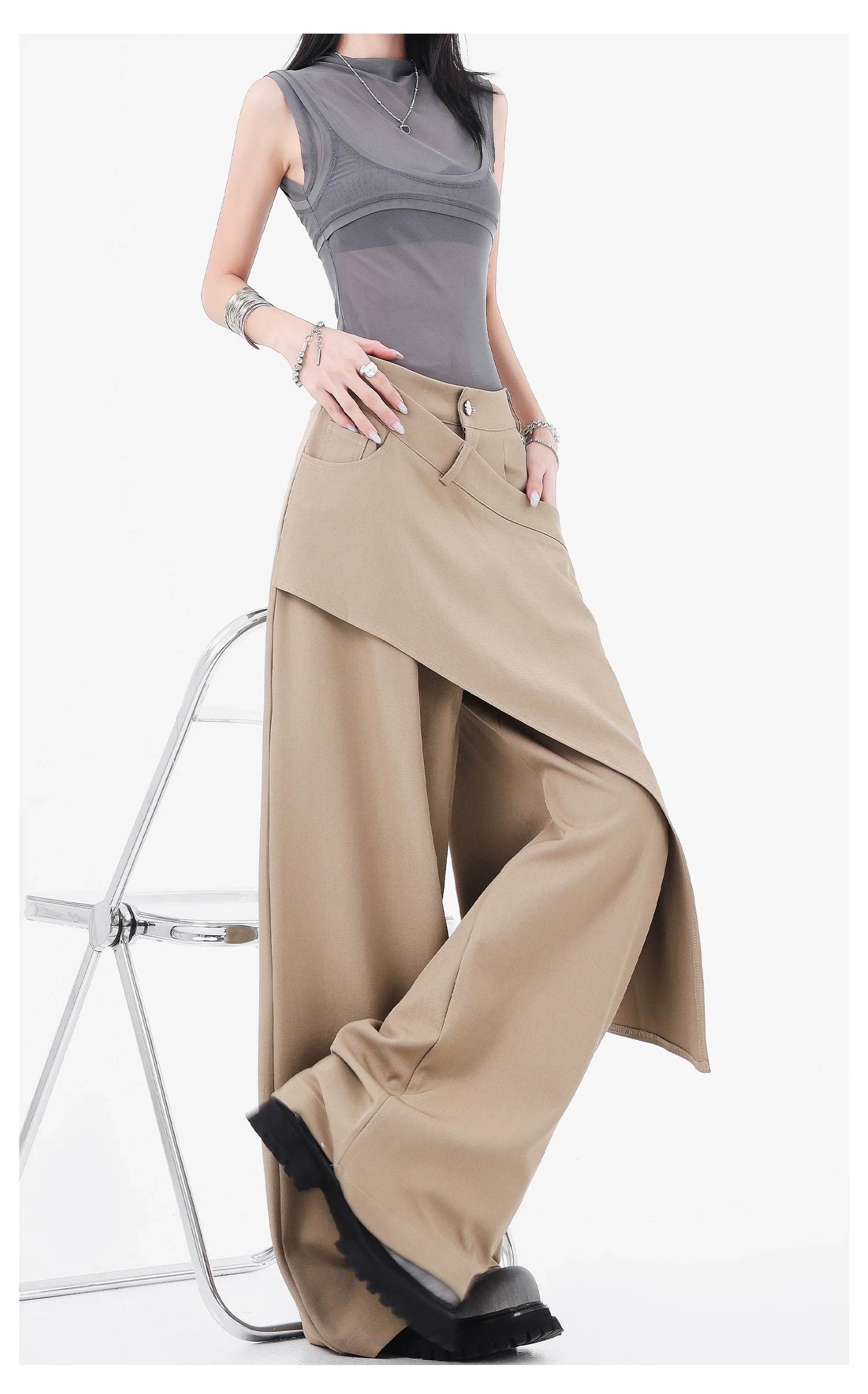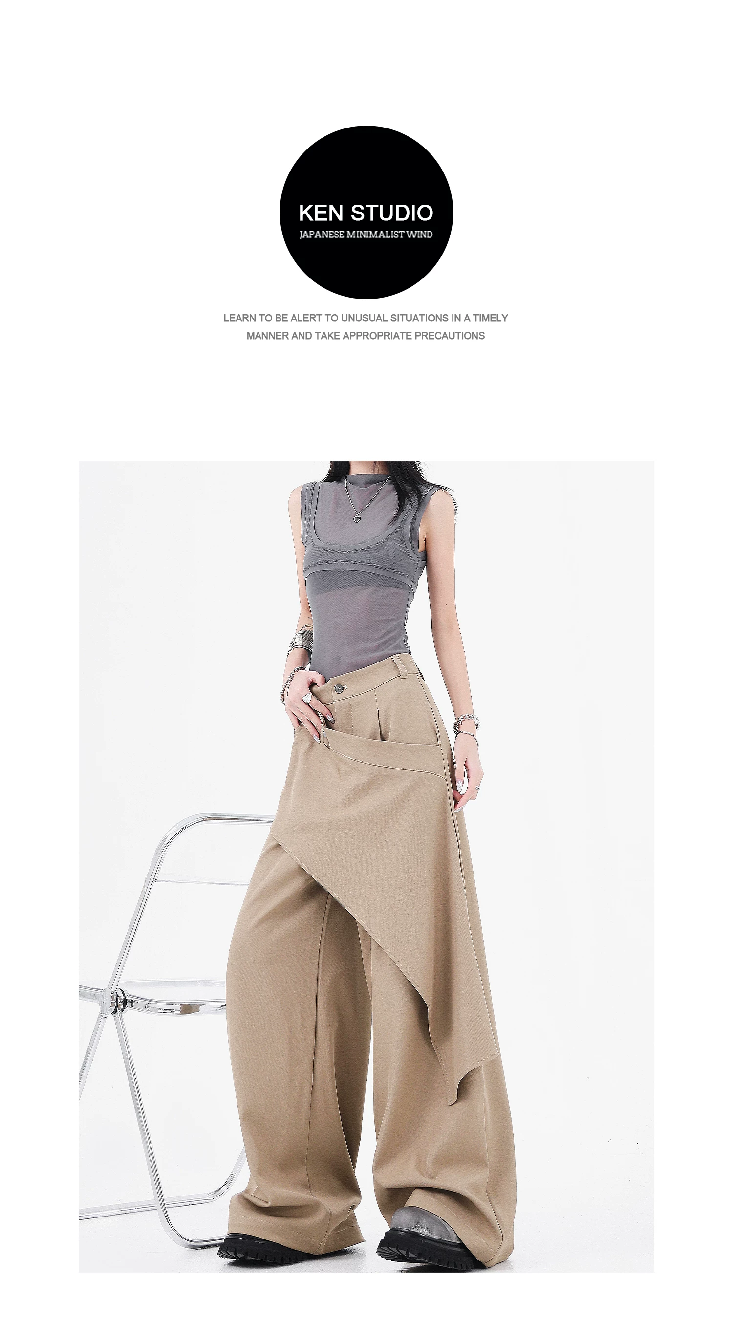 - Quần vest chắp vá không đều kiểu dáng KEN STUDIO dành cho nữ, quần dài xếp ly dáng thẳng lưng cao mùa hè