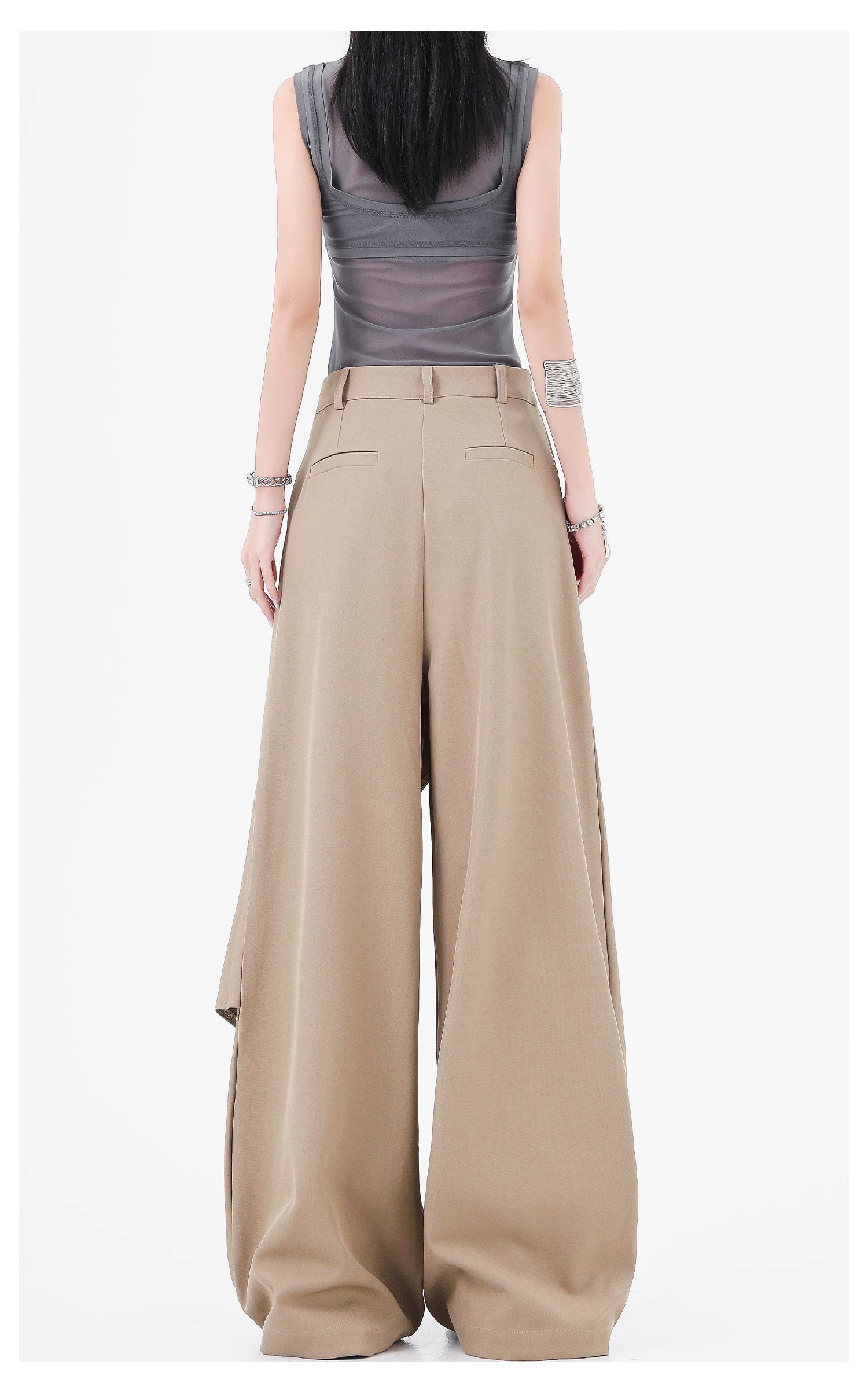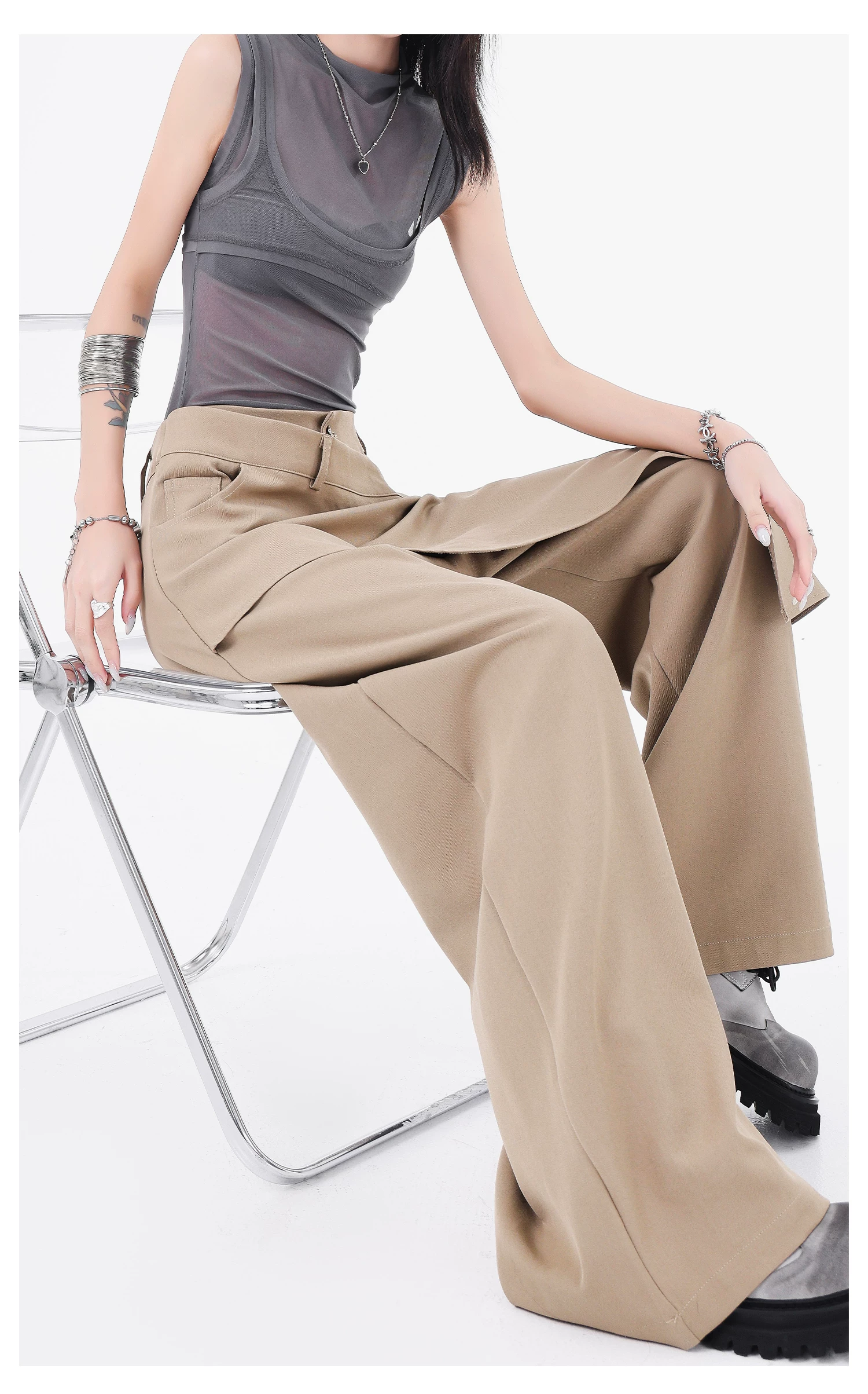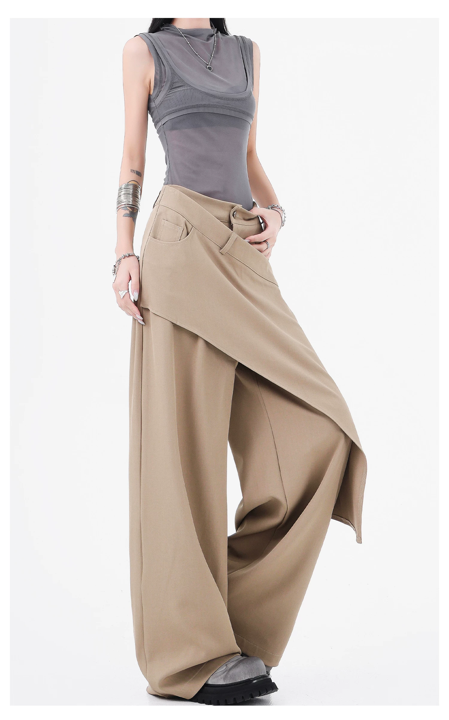 - Quần vest chắp vá không đều kiểu dáng KEN STUDIO dành cho nữ, quần dài xếp ly dáng thẳng lưng cao mùa hè