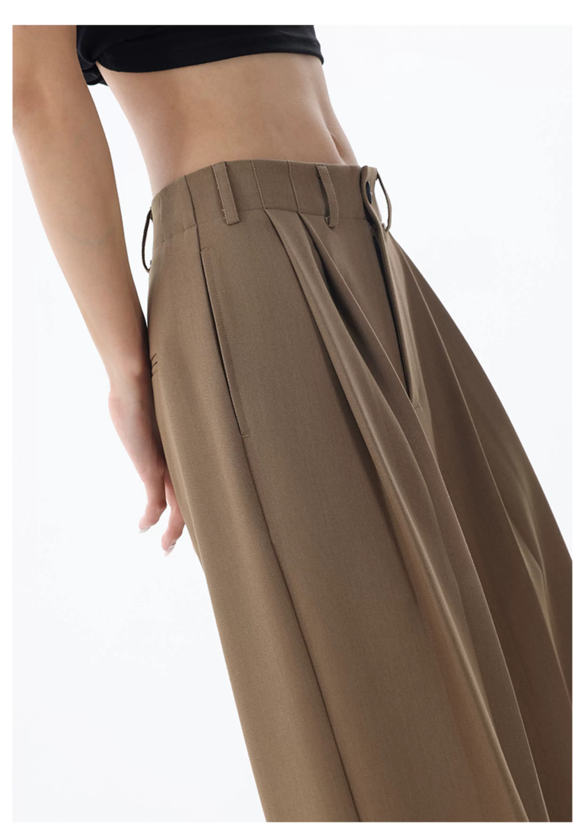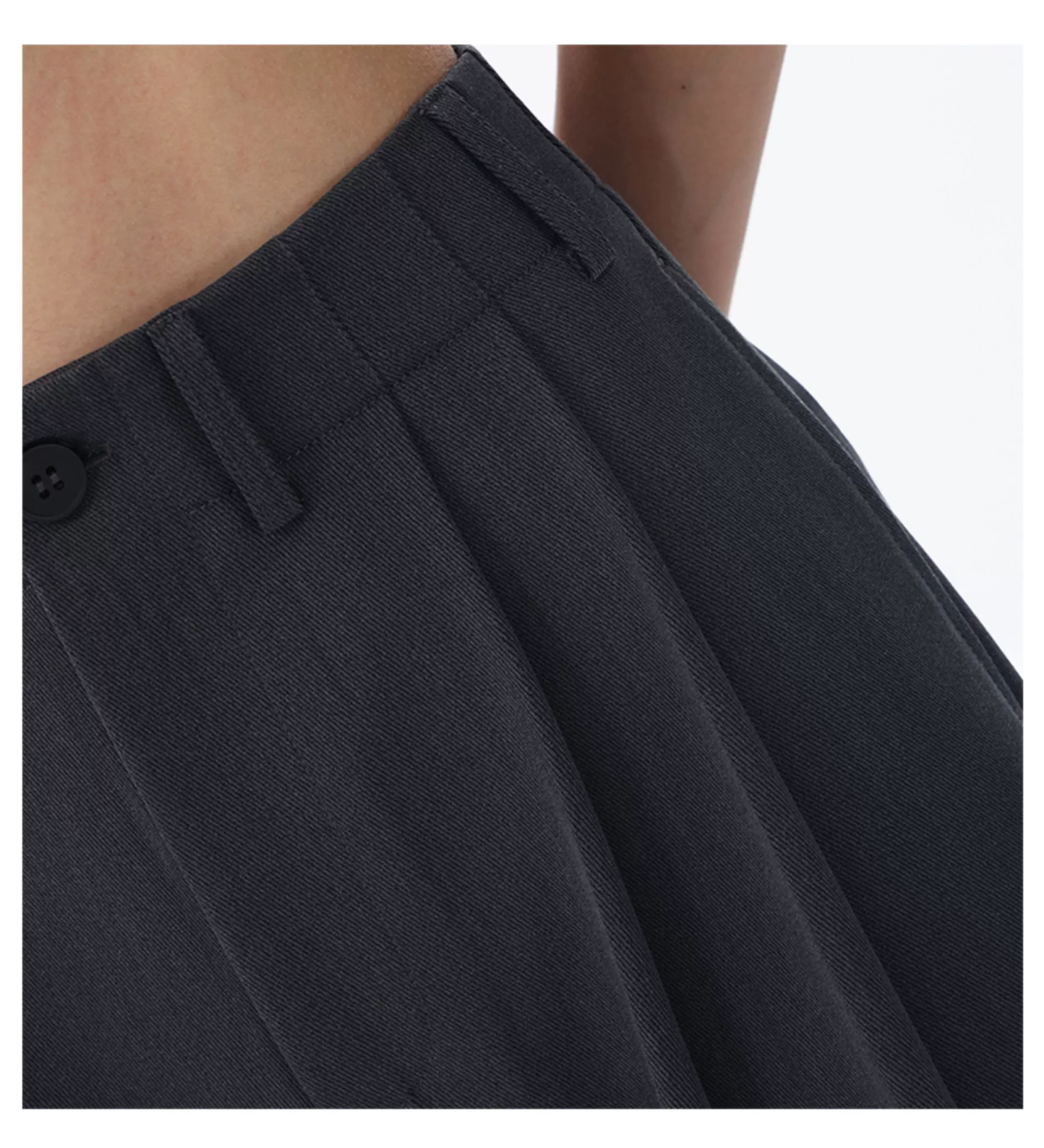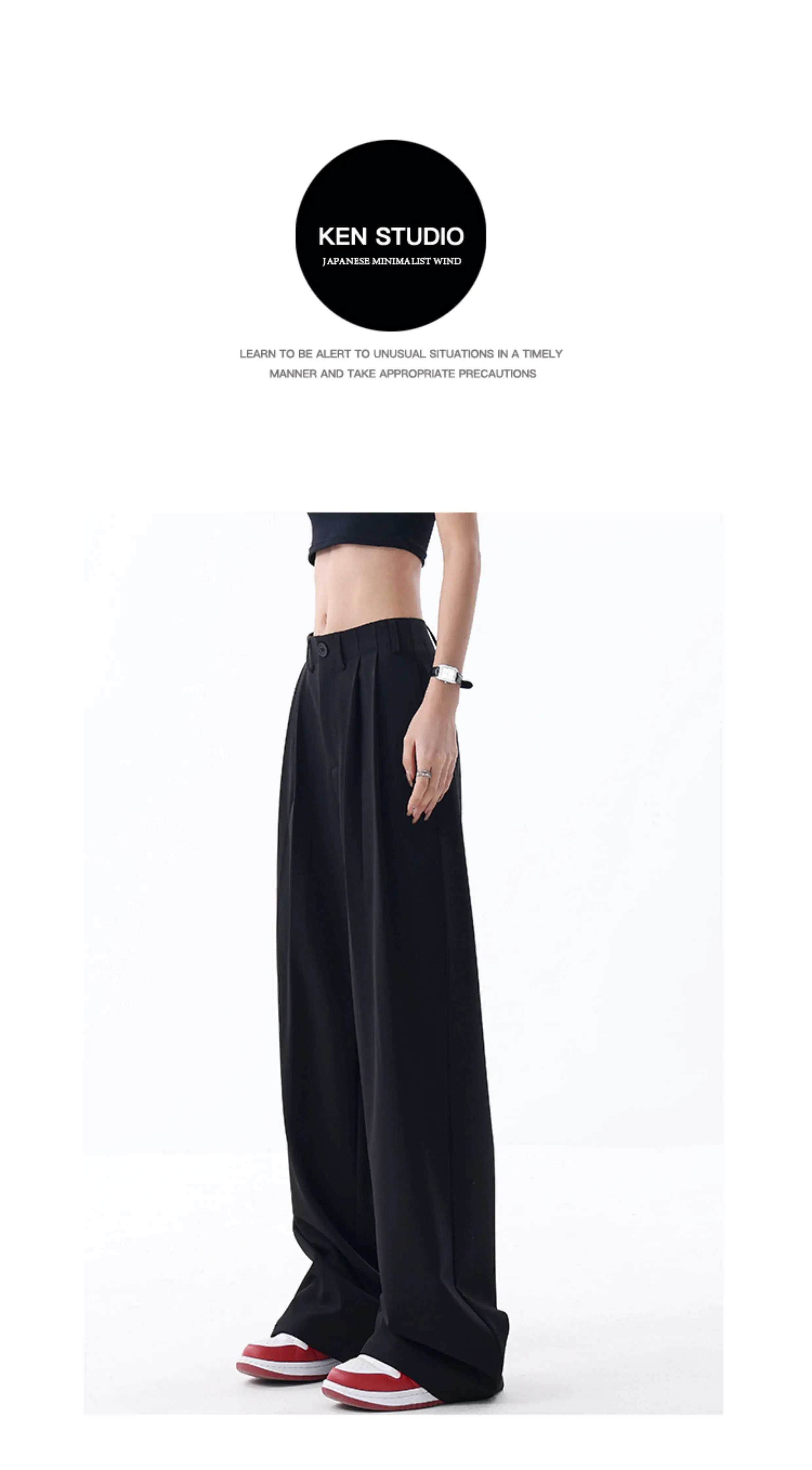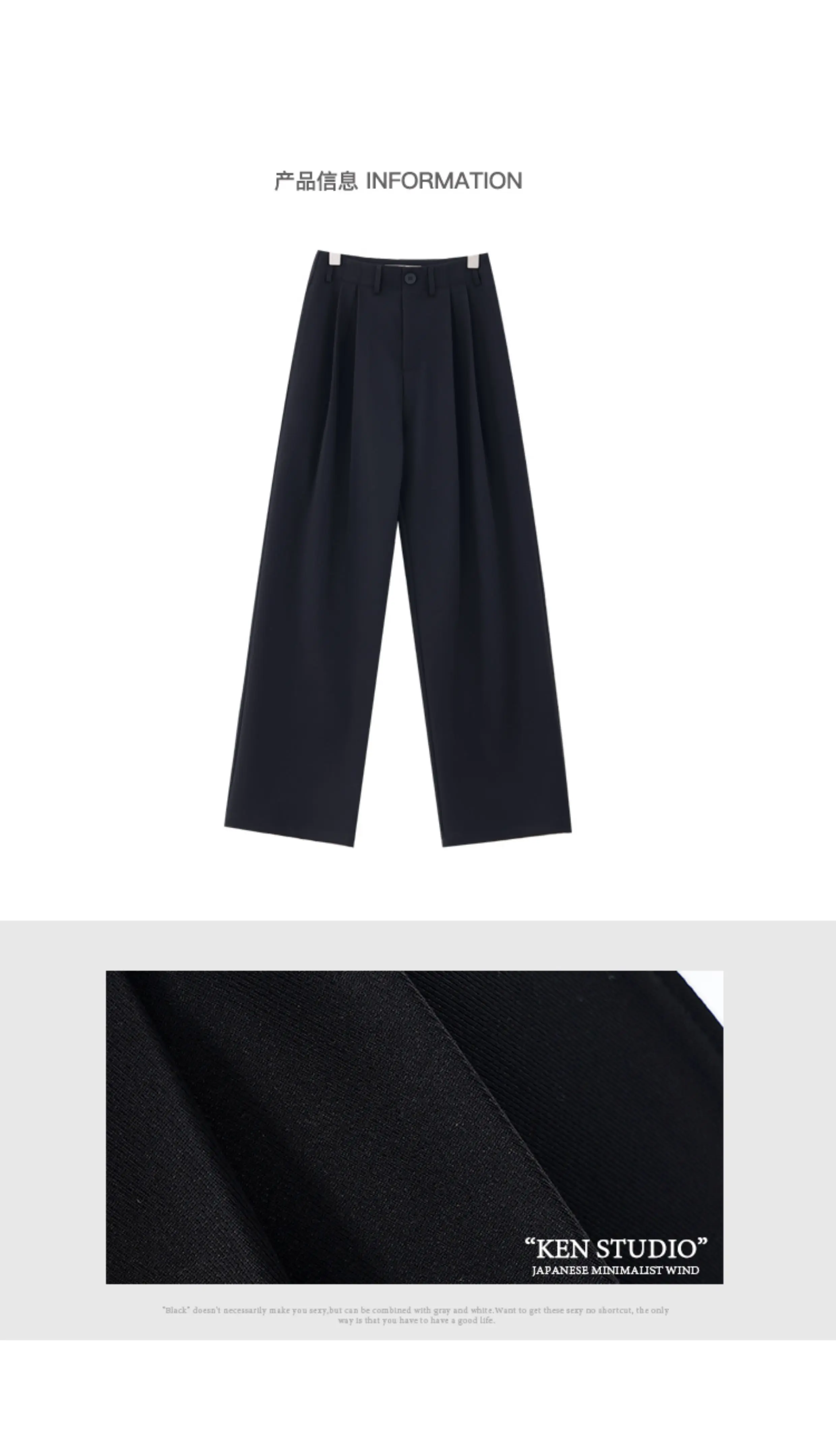 - Quần vest đen thiết kế nguyên bản của KEN STUDIO dành cho nữ với kiểu xếp ly, quần ống rộng dáng rộng, thoải mái.