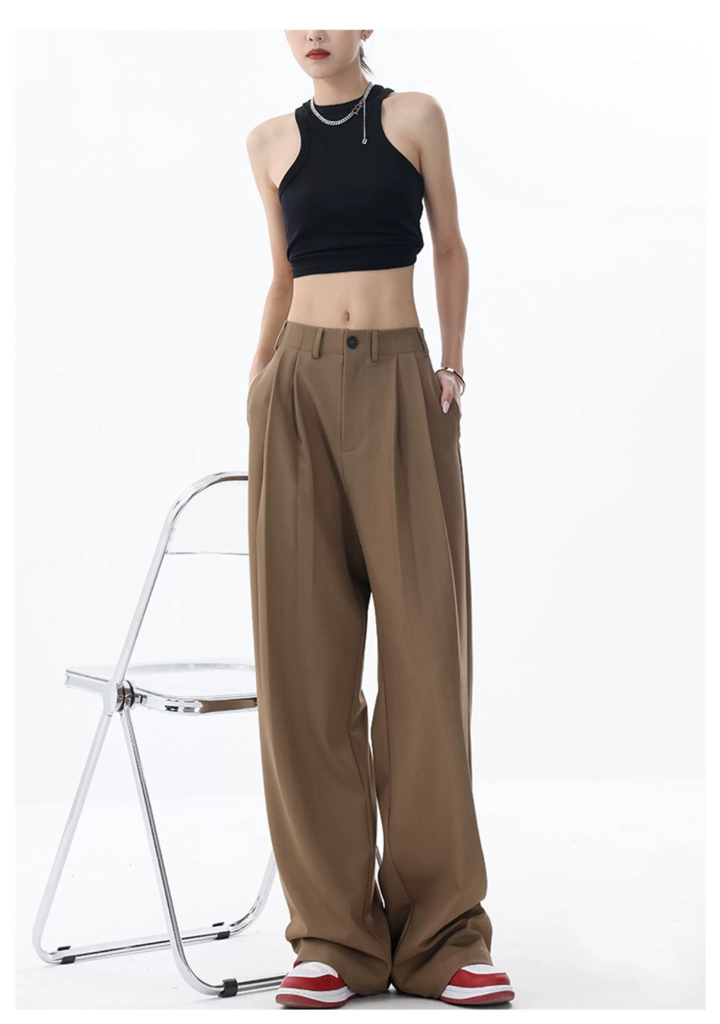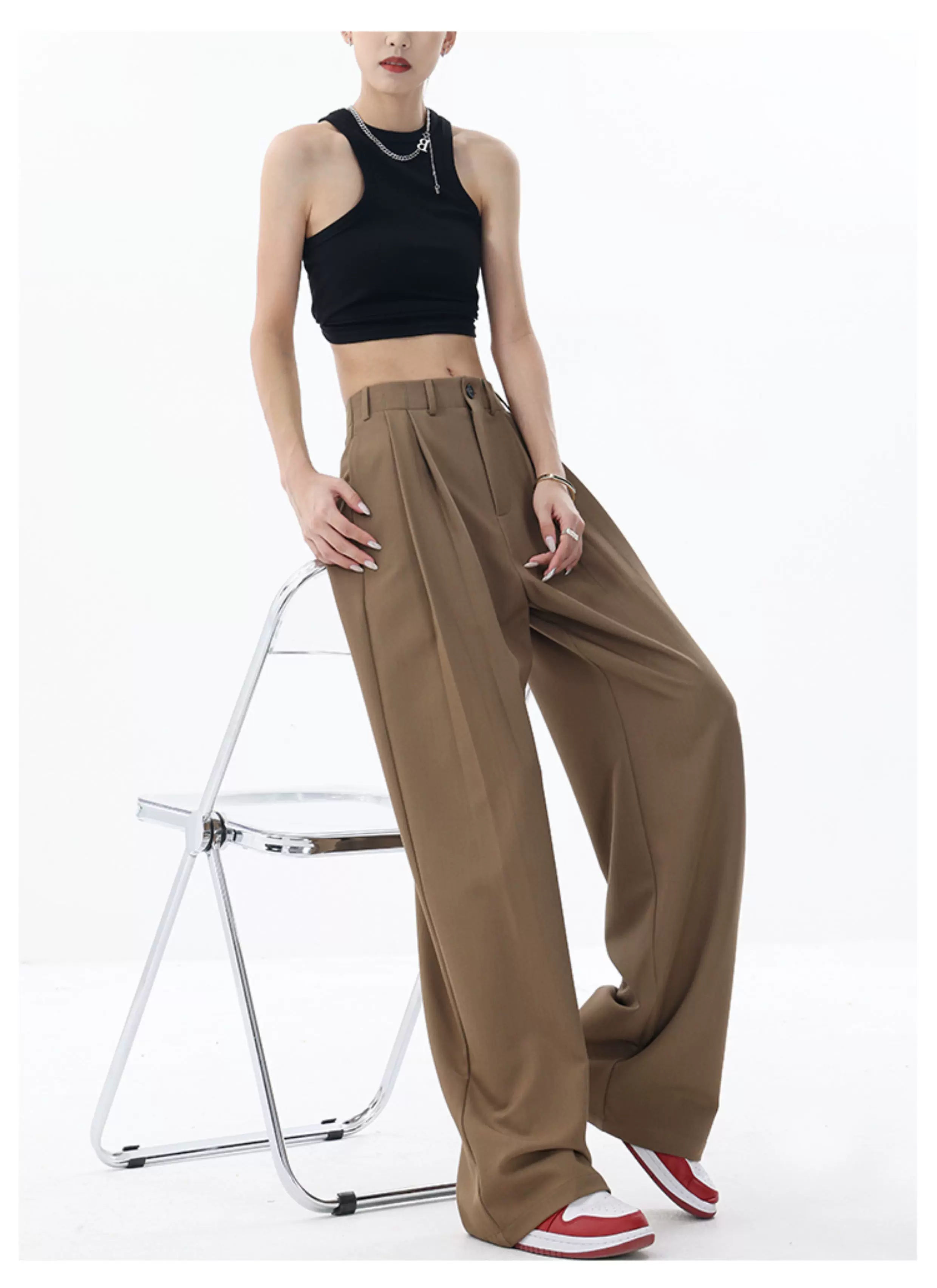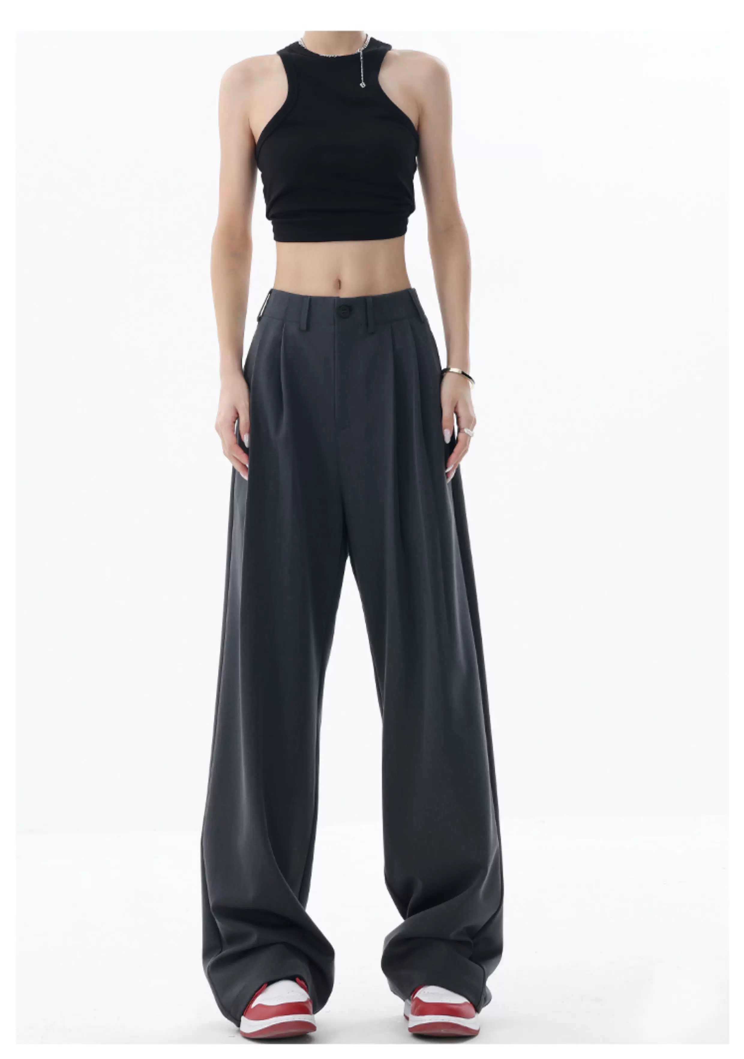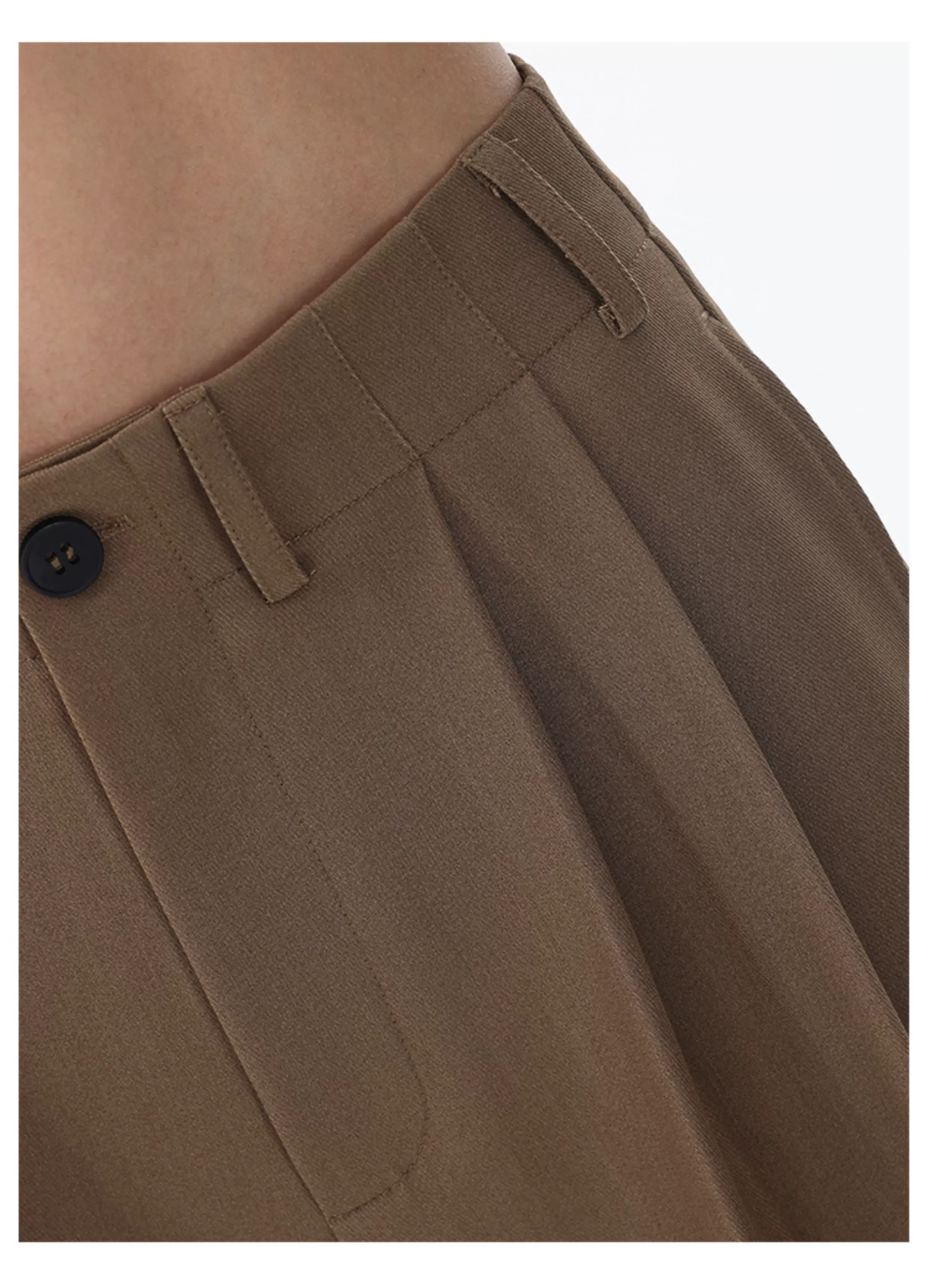 - Quần vest đen thiết kế nguyên bản của KEN STUDIO dành cho nữ với kiểu xếp ly, quần ống rộng dáng rộng, thoải mái.