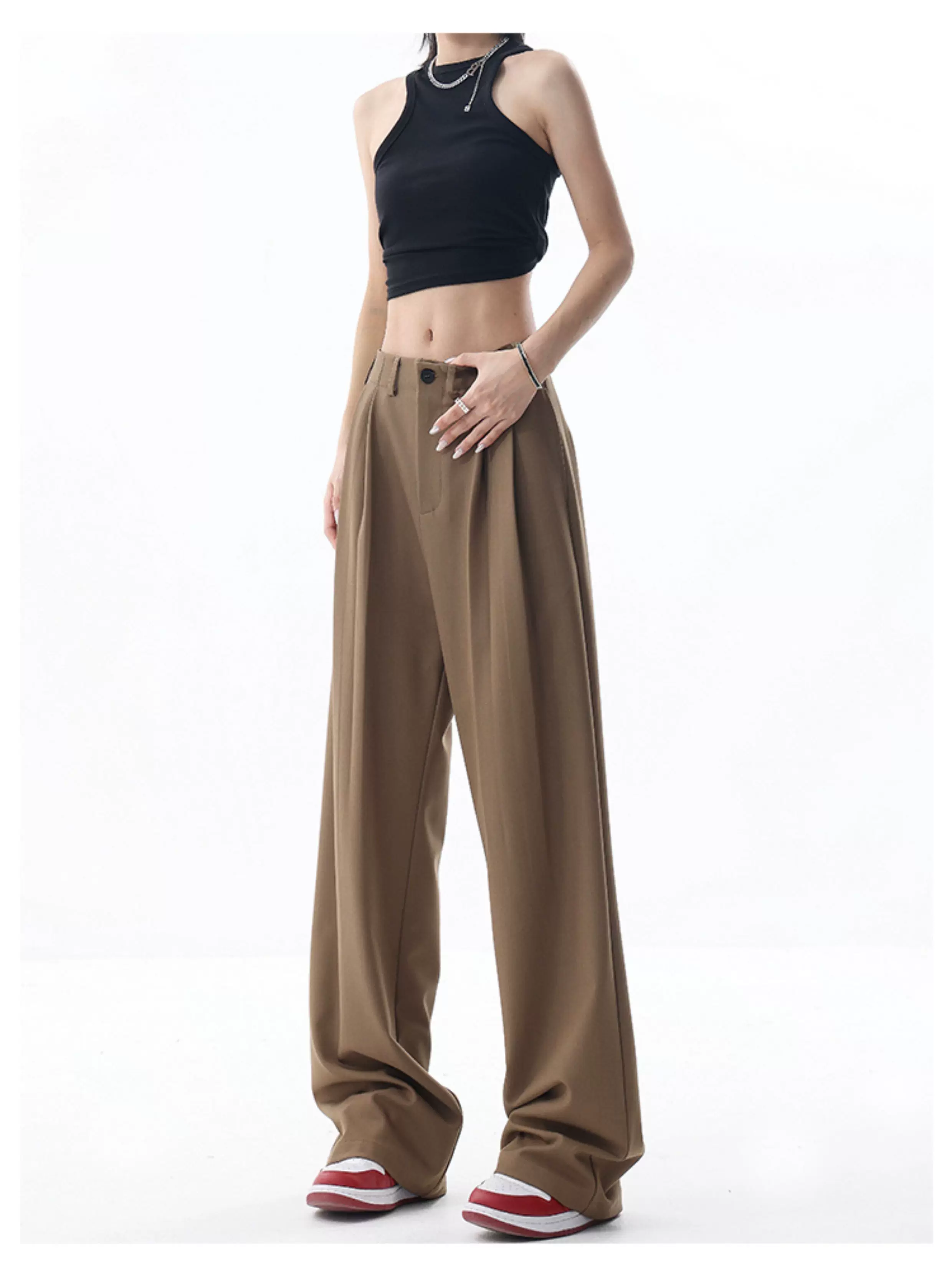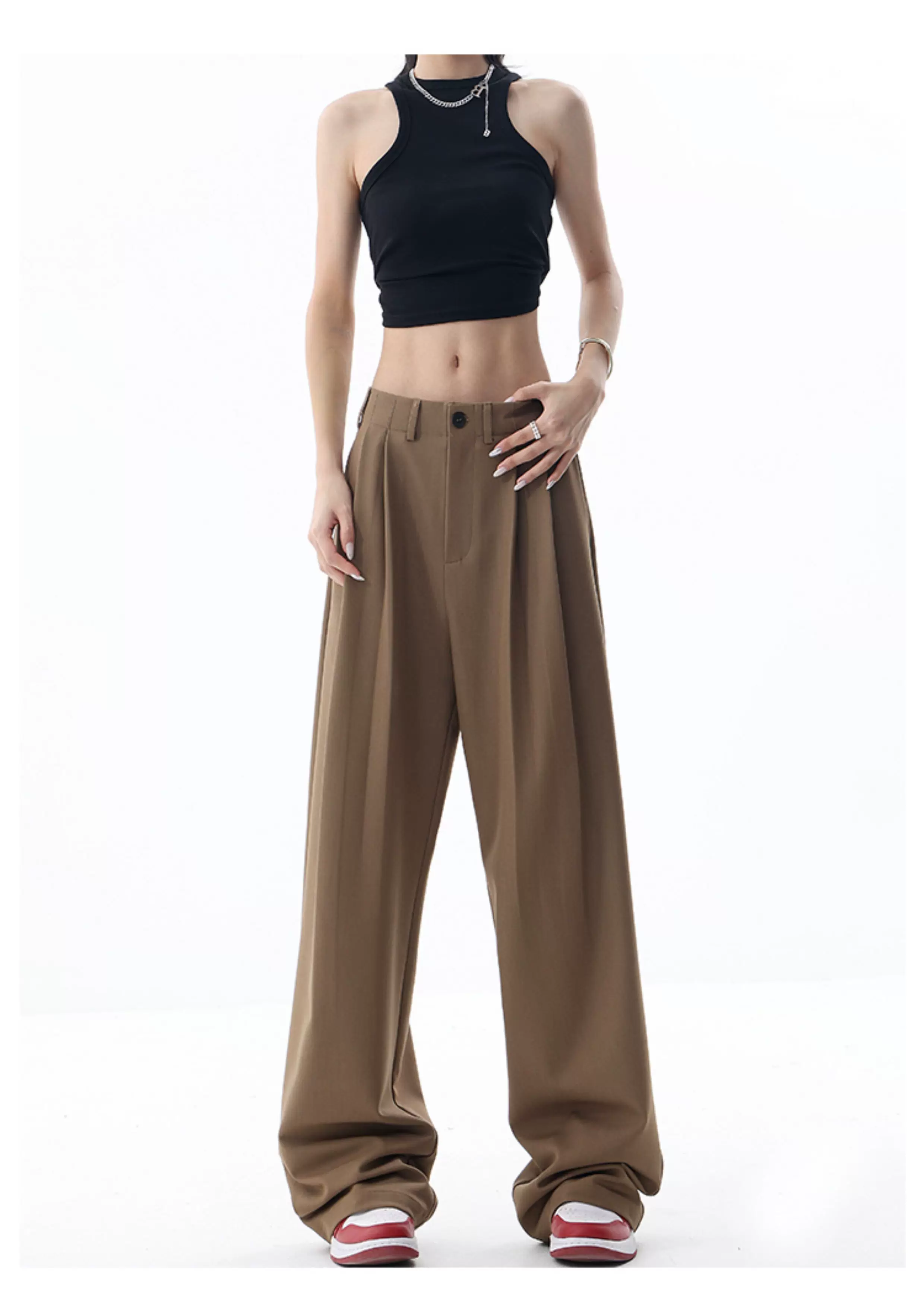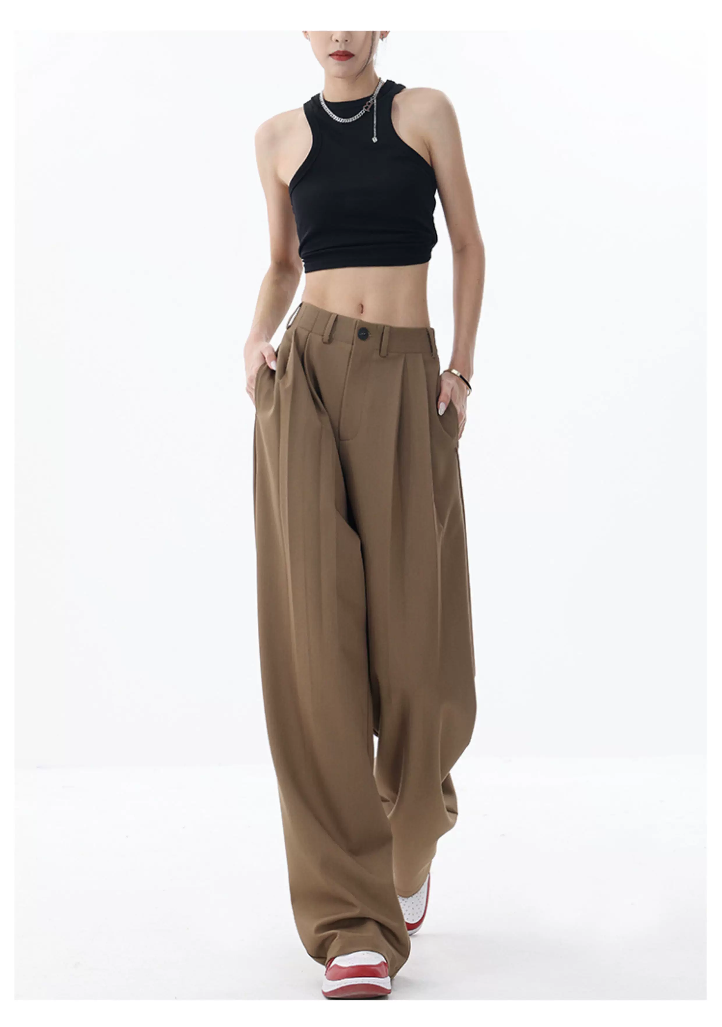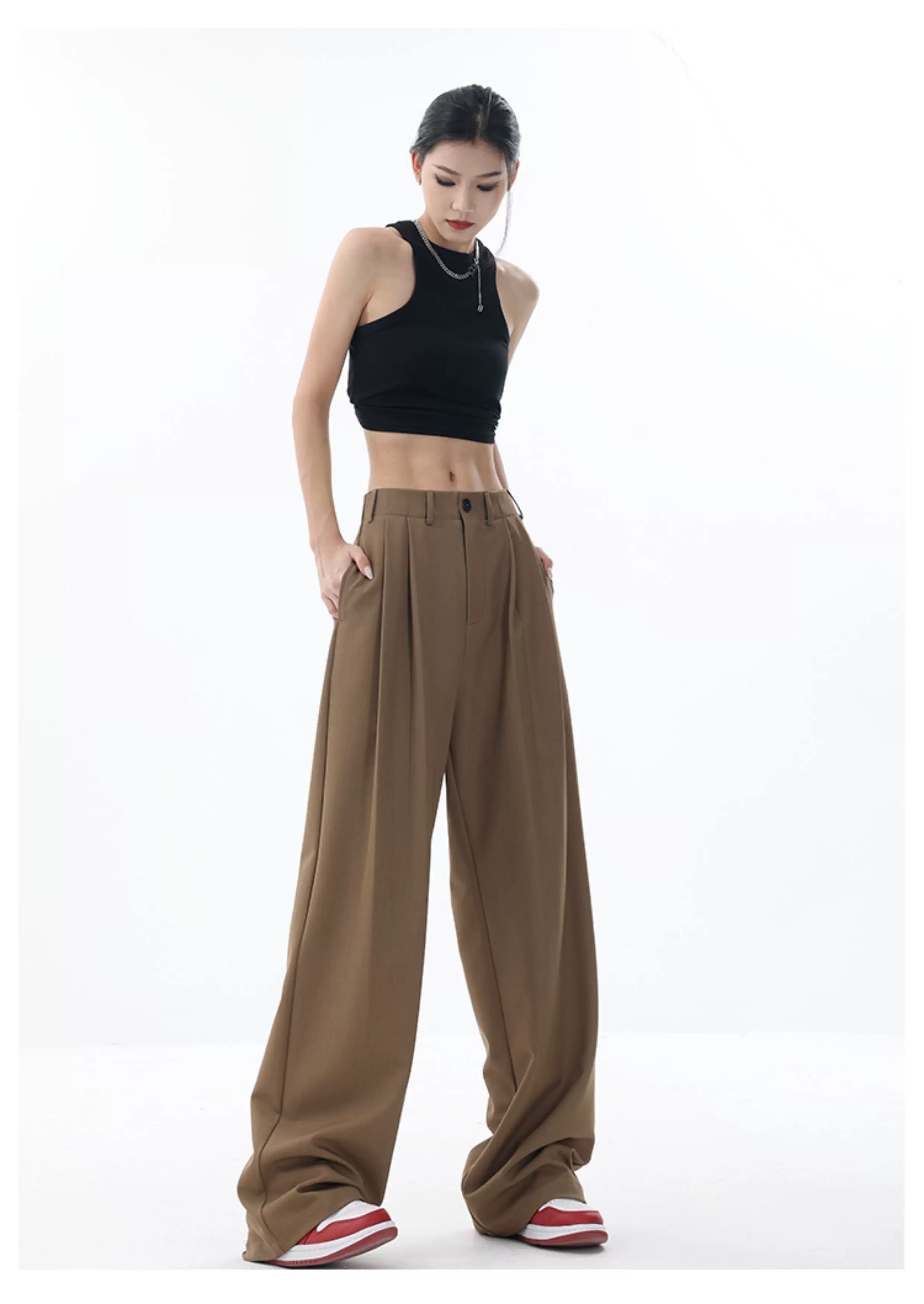 - Quần vest đen thiết kế nguyên bản của KEN STUDIO dành cho nữ với kiểu xếp ly, quần ống rộng dáng rộng, thoải mái.