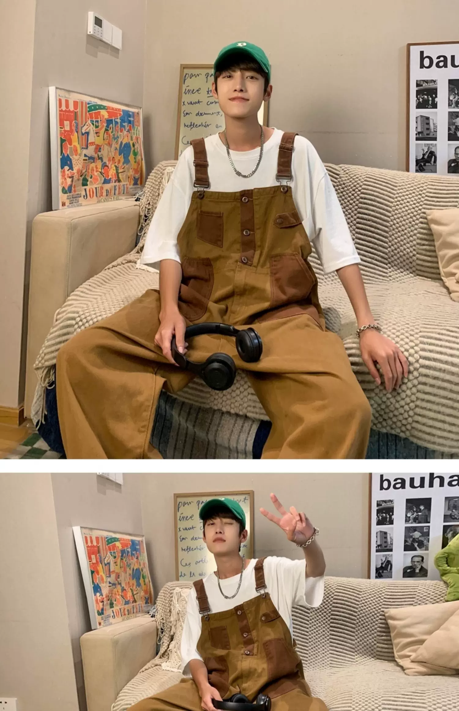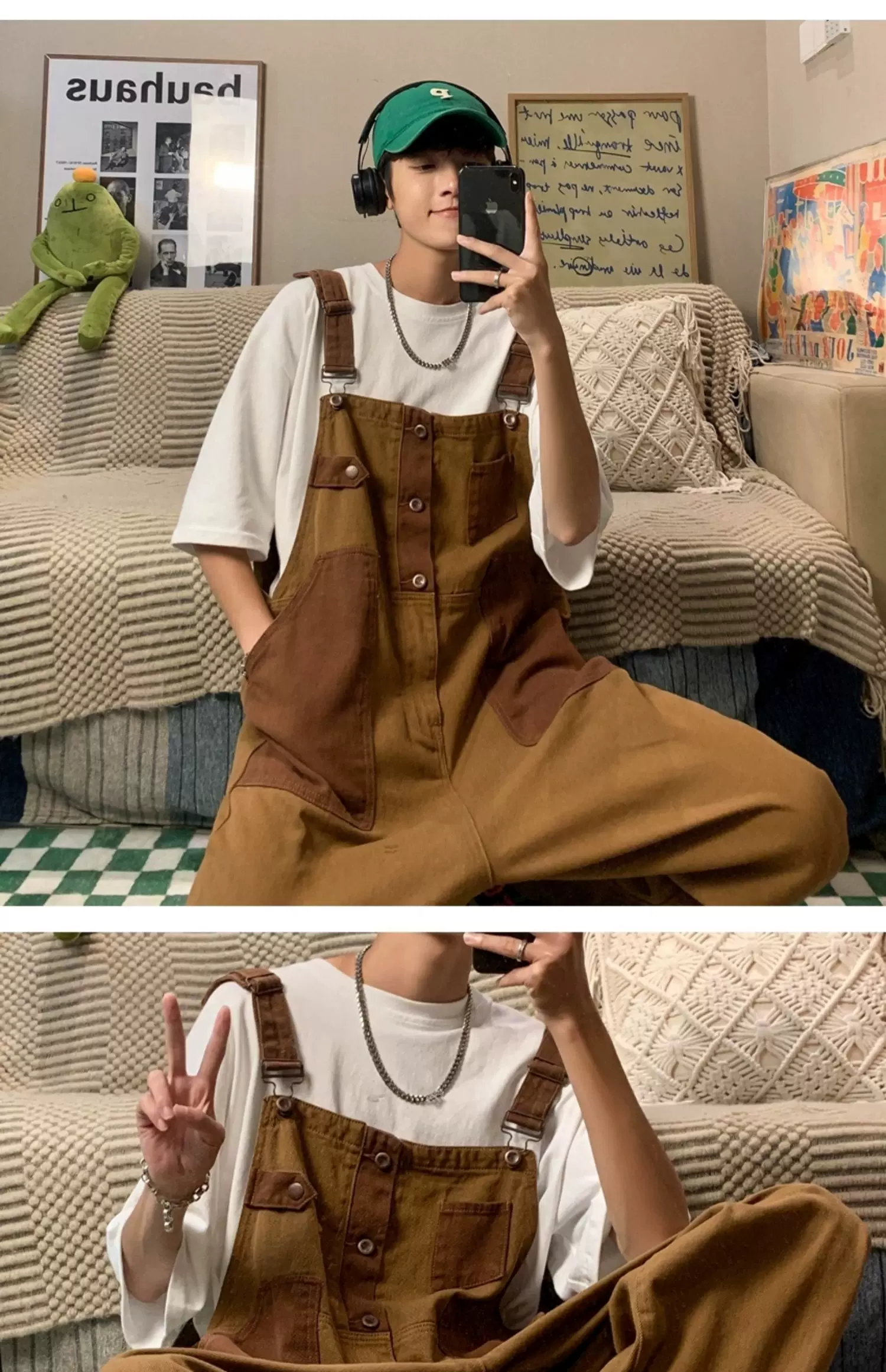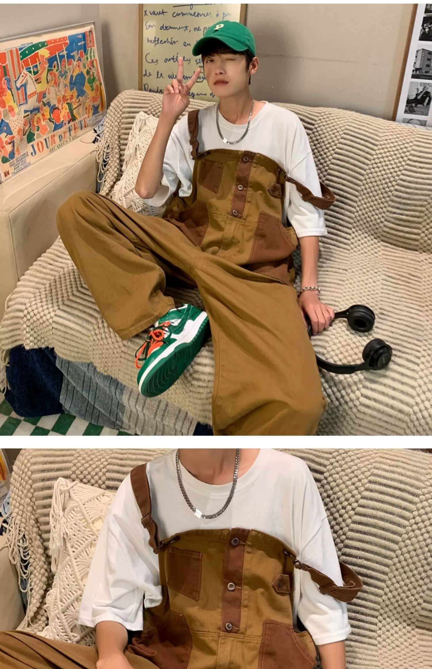 - Quần yếm denim phong cách retro Nhật Bản dành cho nam, quần công sở ống rộng mùa hè, thiết kế thương hiệu thời thượng, quần dài dáng rộng thoải mái.
