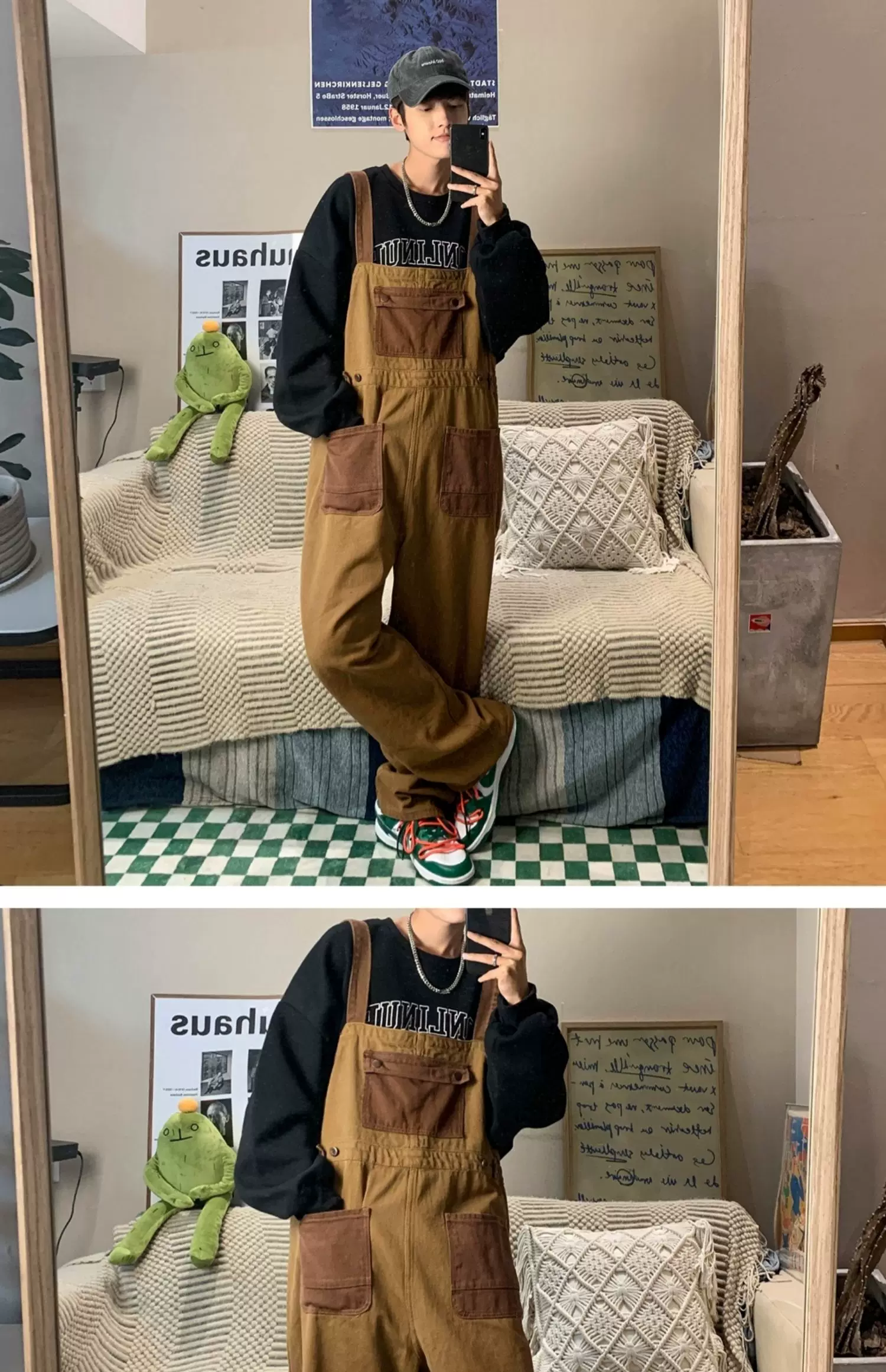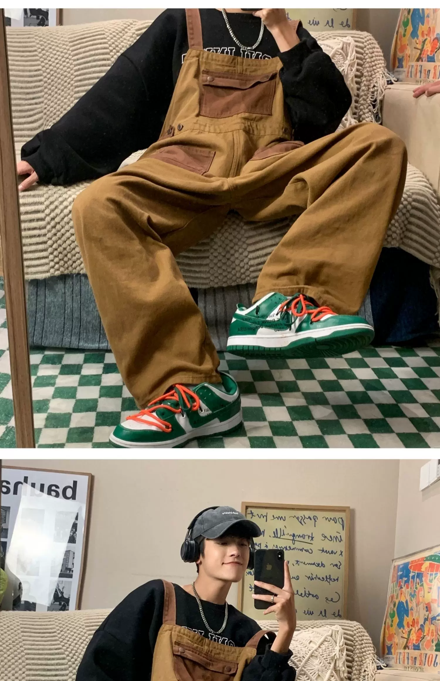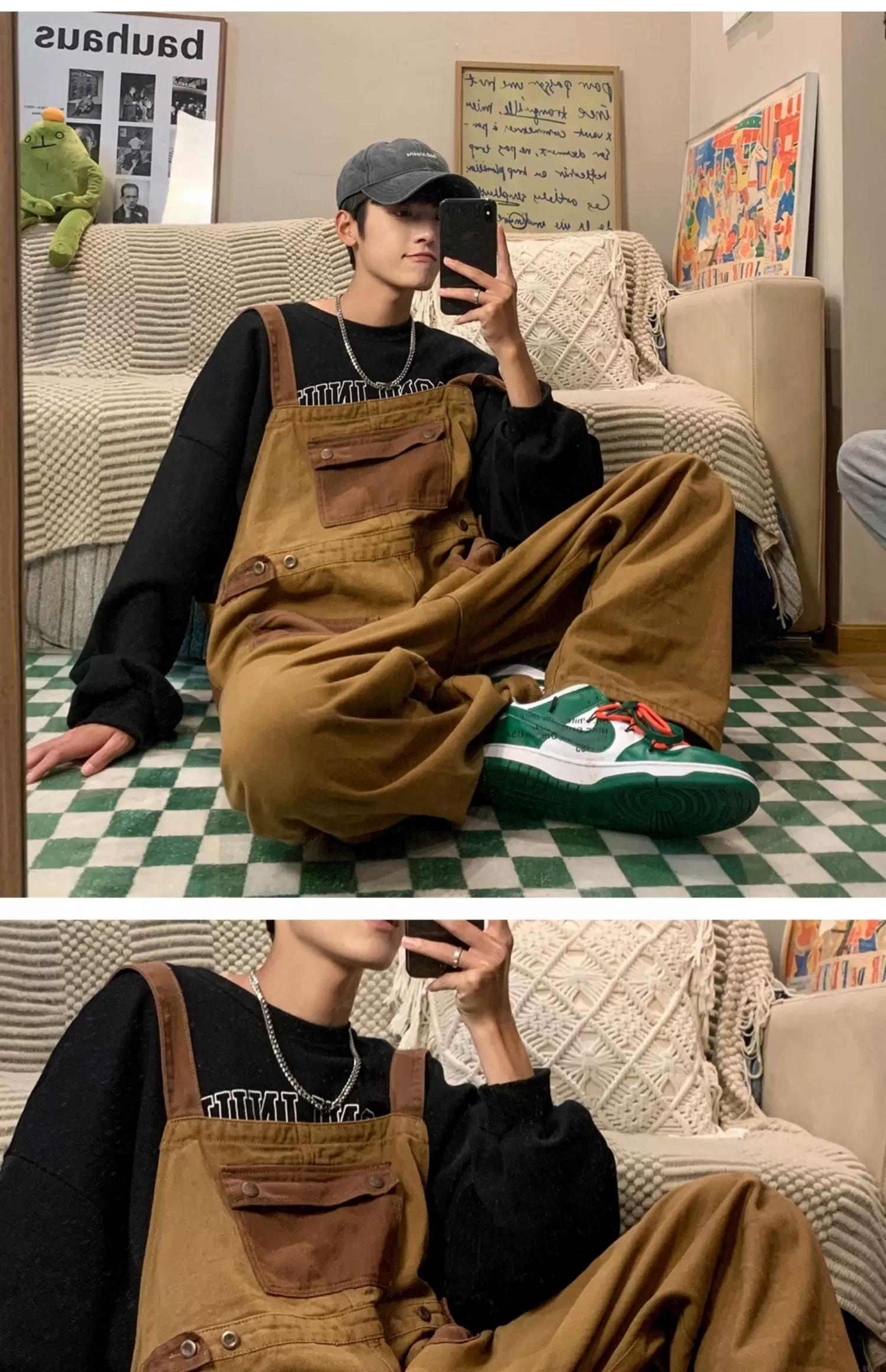 - Quần yếm denim phong cách retro Nhật Bản dành cho nam, quần công sở ống rộng mùa hè, thiết kế thương hiệu thời thượng, quần dài dáng rộng thoải mái.