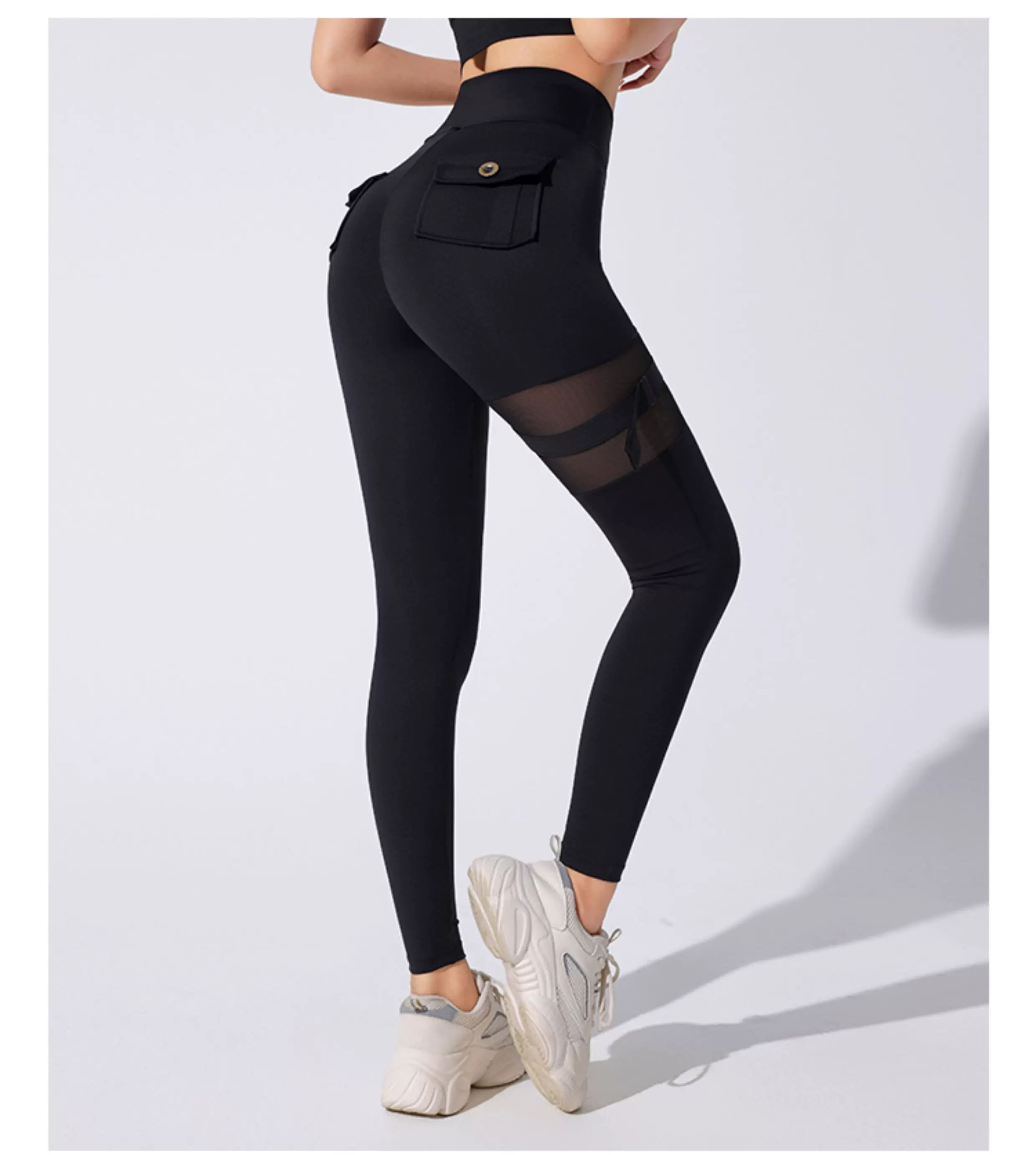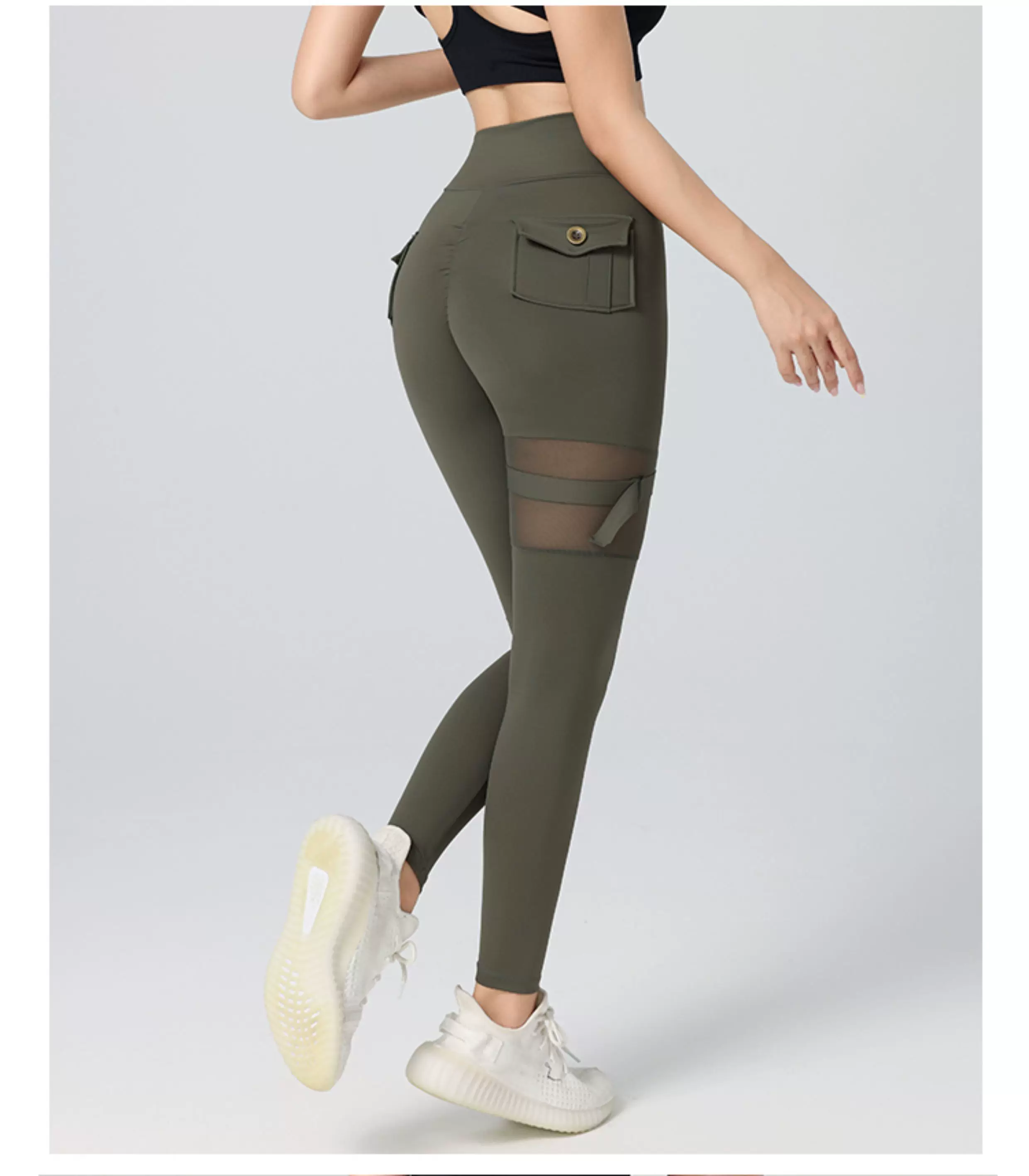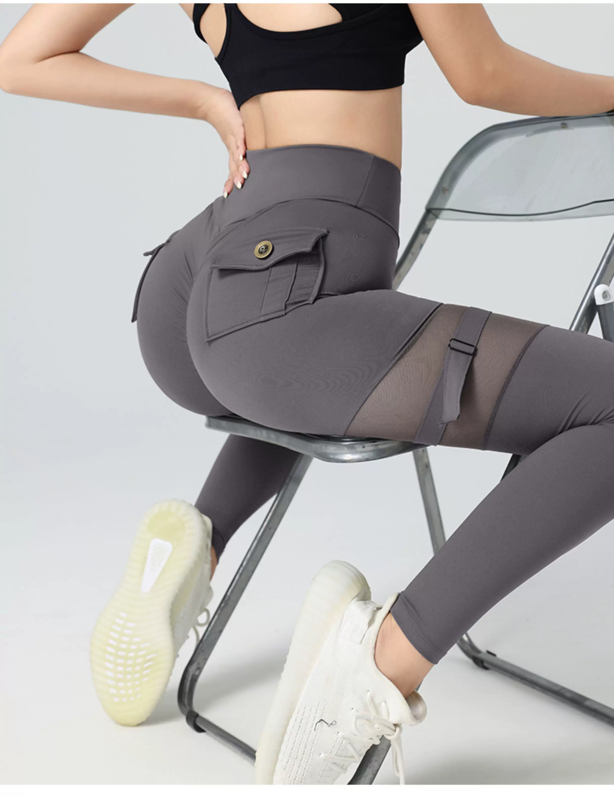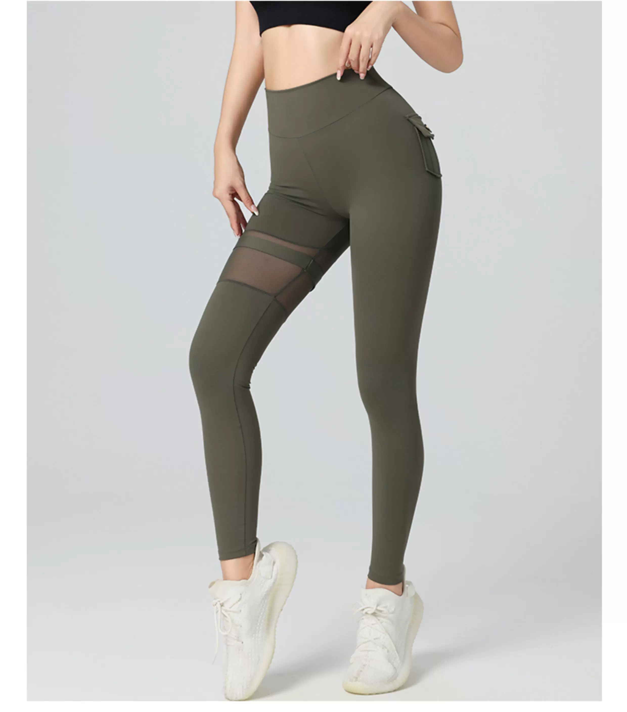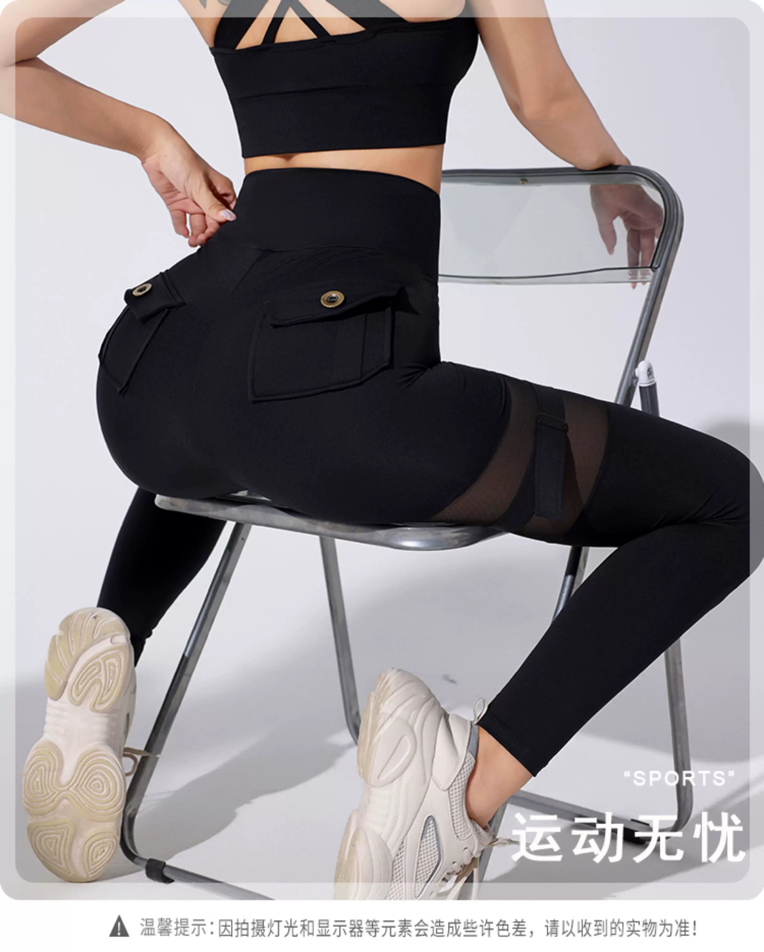 - Quần yoga chín phần có túi lưới, cạp cao, ôm sát, gợi cảm, nâng mông, tôn dáng, quần thể thao chín phần dành cho mùa hè.
