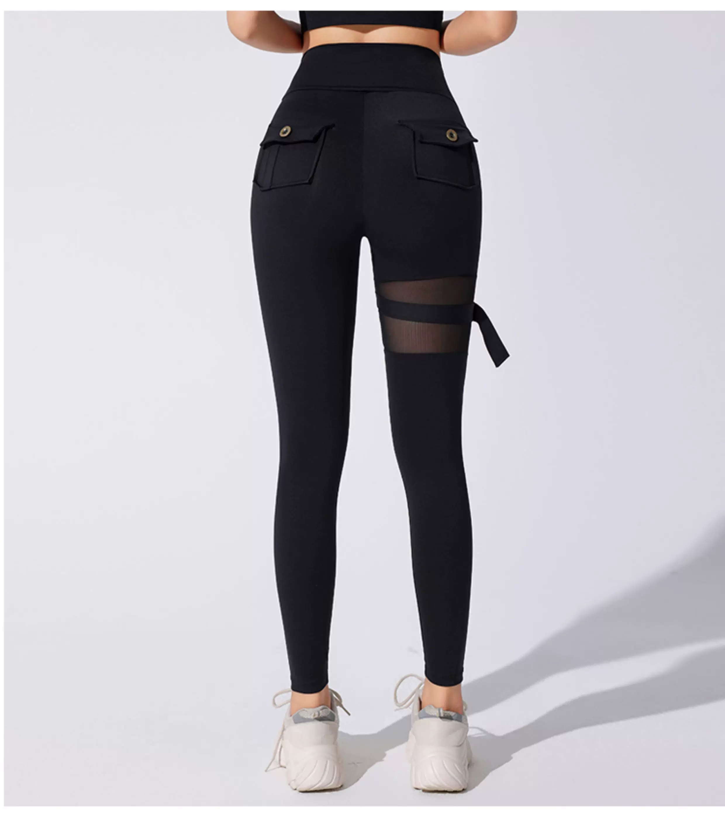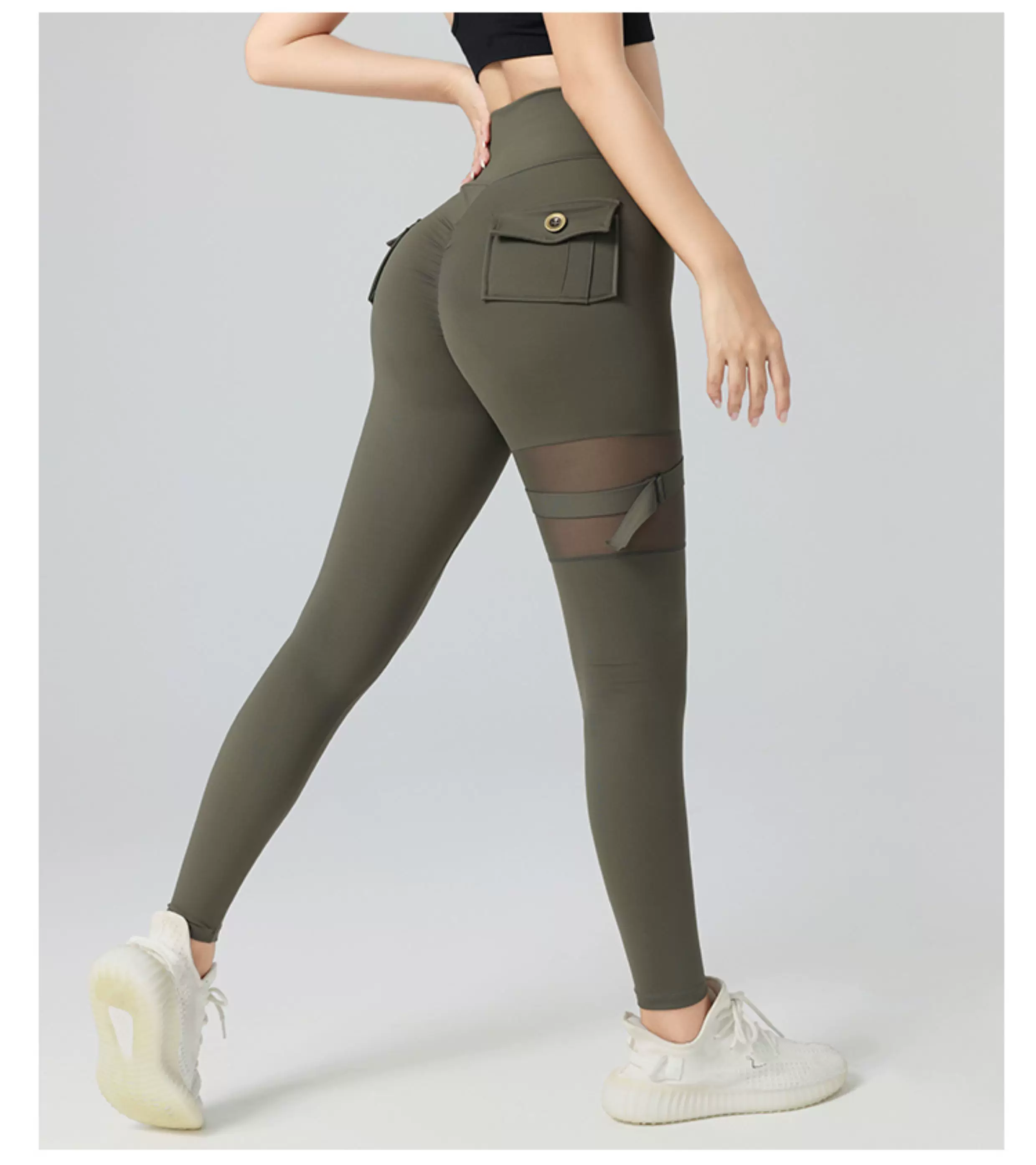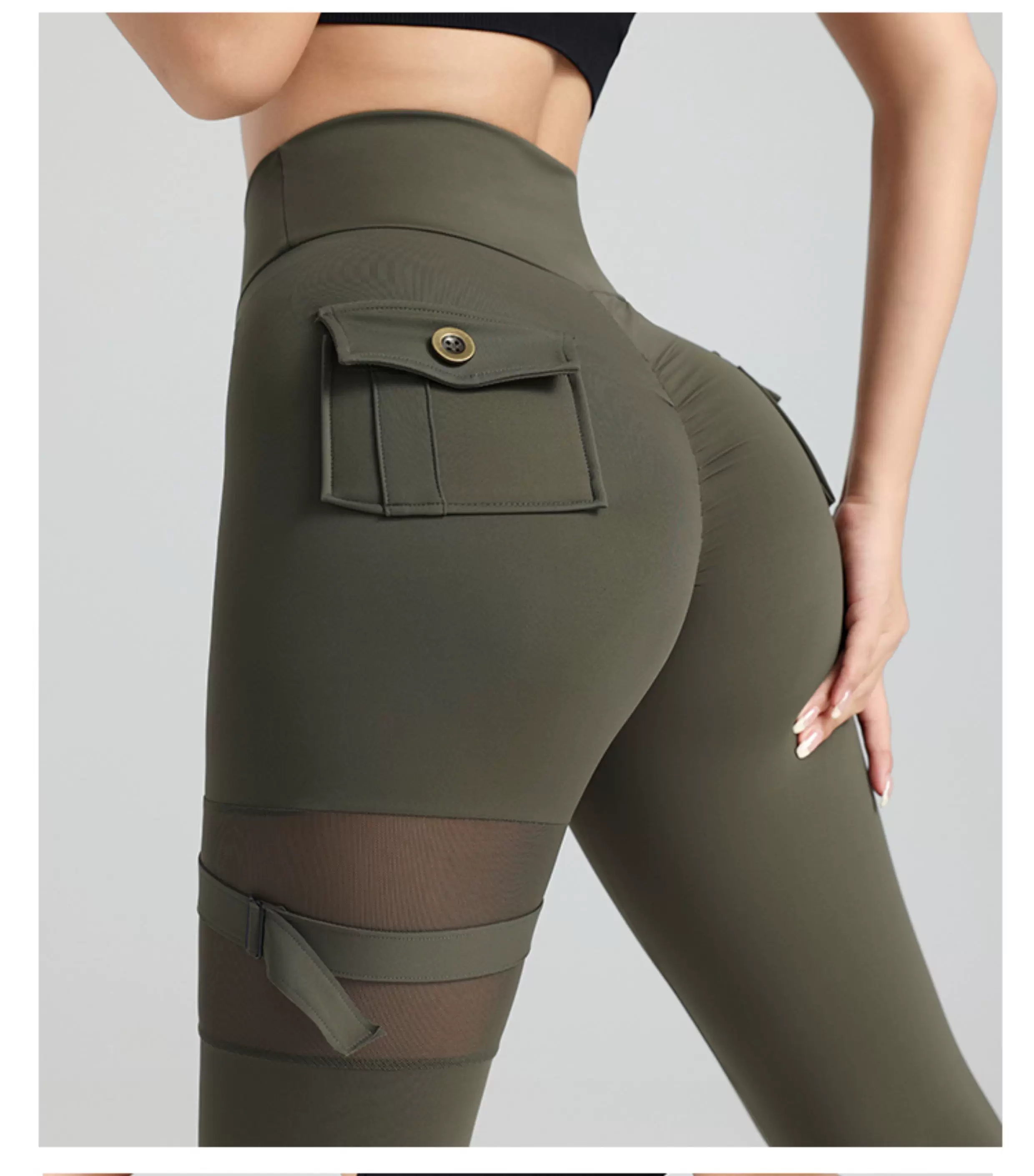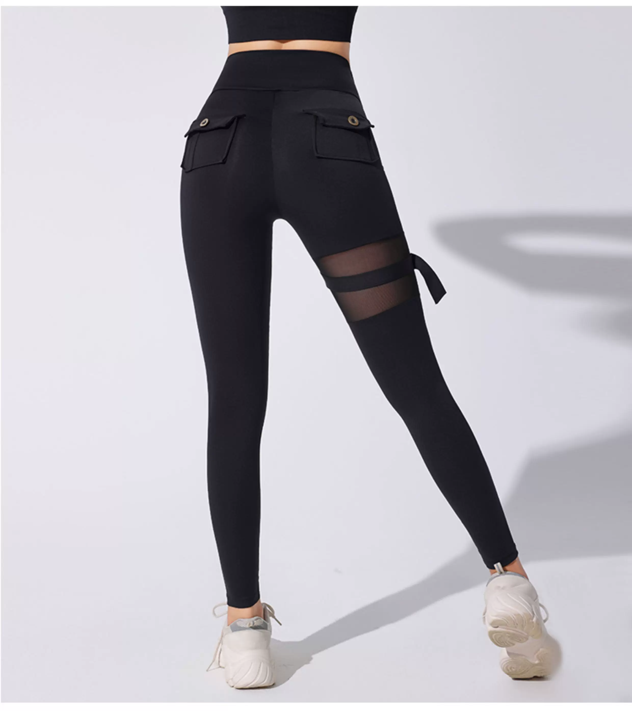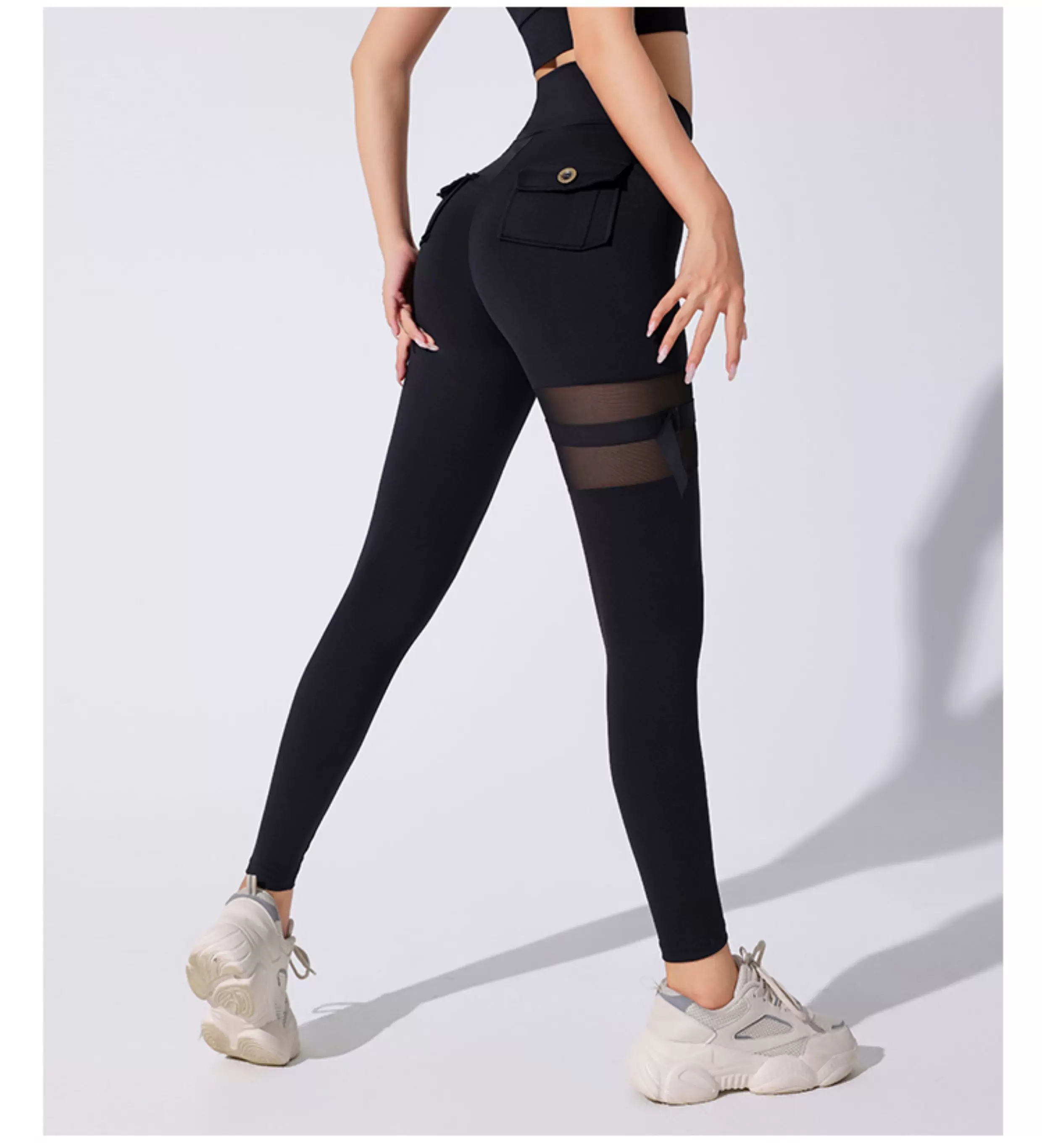 - Quần yoga chín phần có túi lưới, cạp cao, ôm sát, gợi cảm, nâng mông, tôn dáng, quần thể thao chín phần dành cho mùa hè.