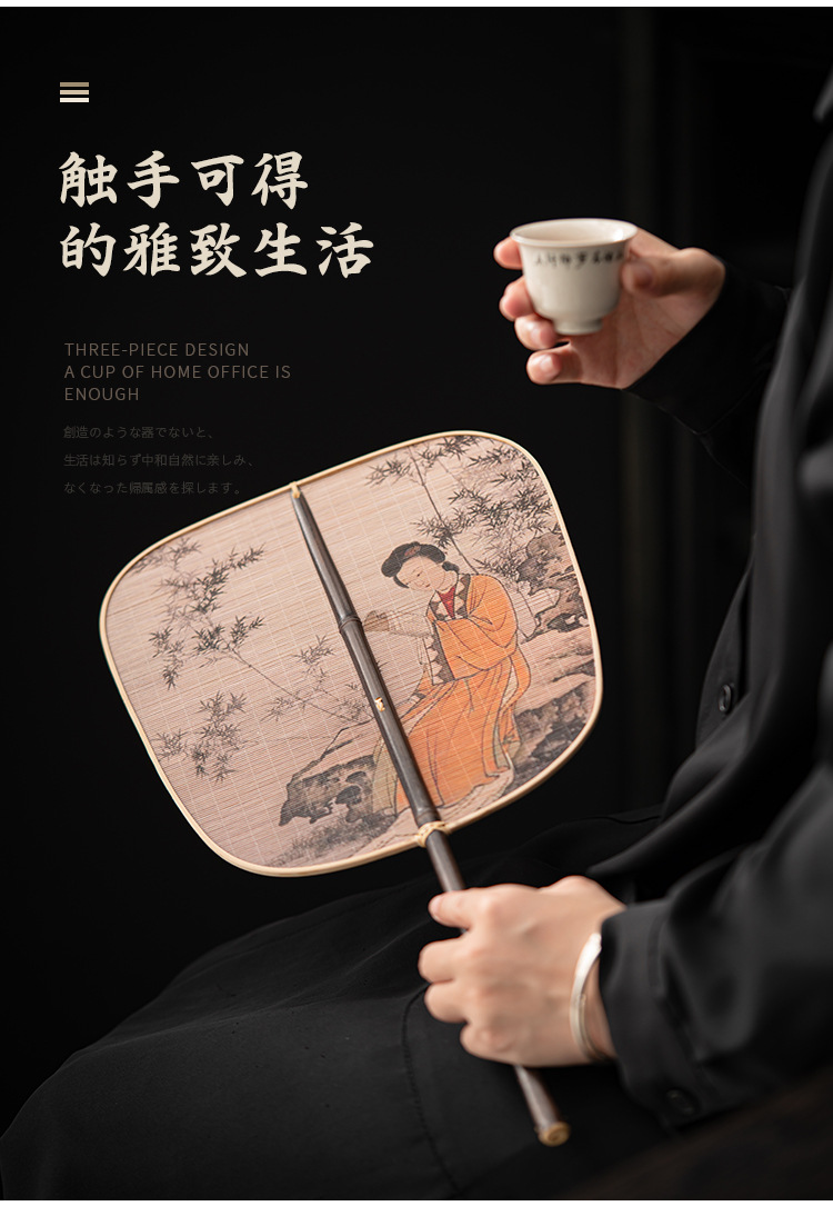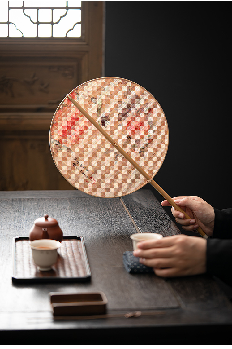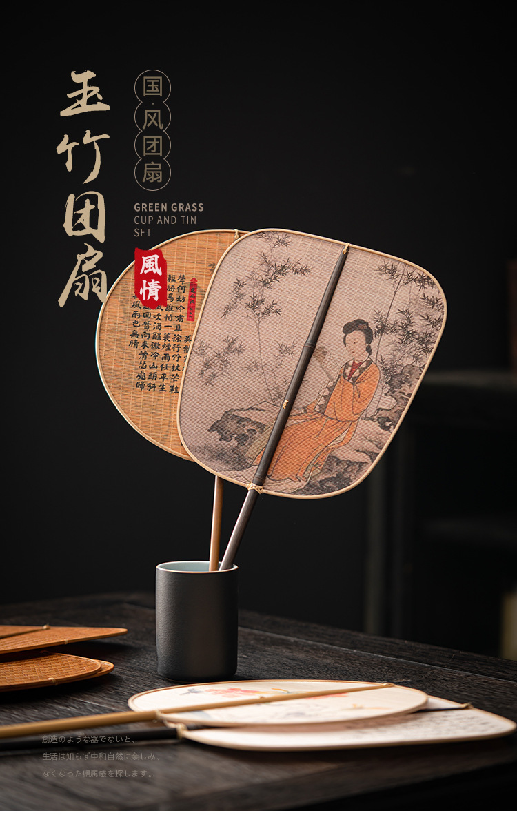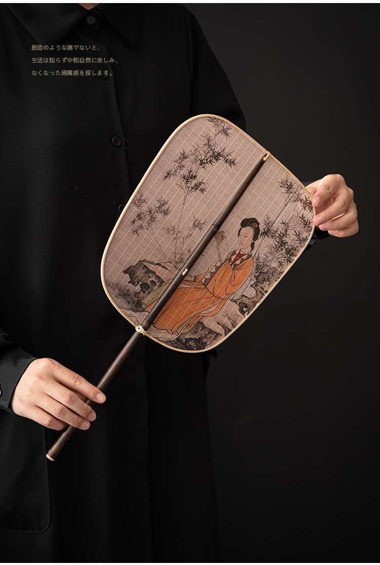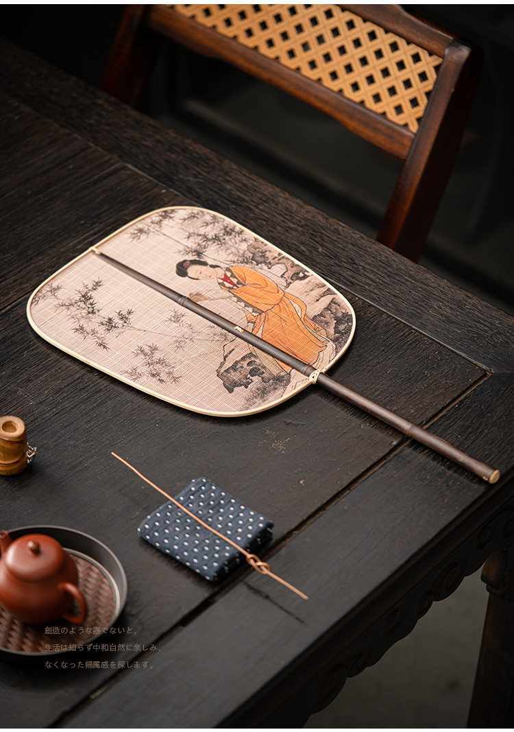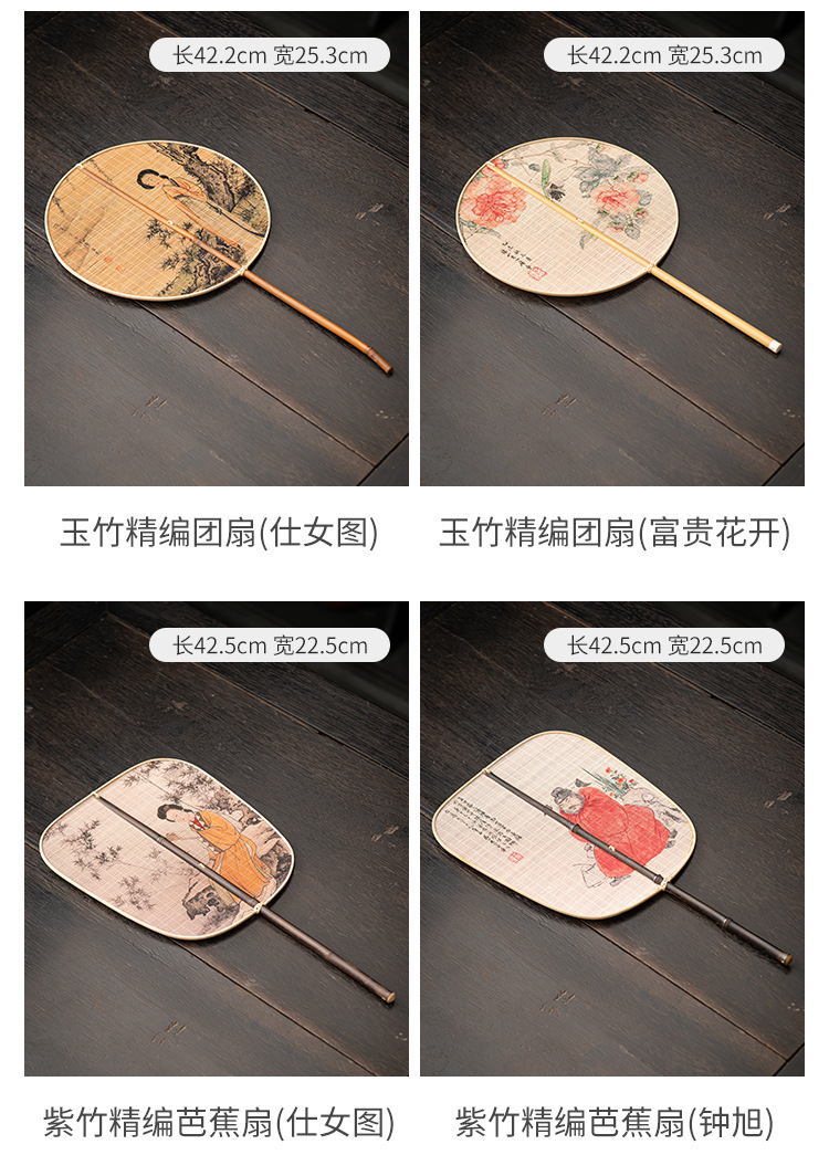 - Quạt nhỏ satin đan tre thủ công quạt lớn Quạt tre Trung Quốc sơn mài lớn quạt đuôi quạt tre dày Quạt Gỗ Xanh