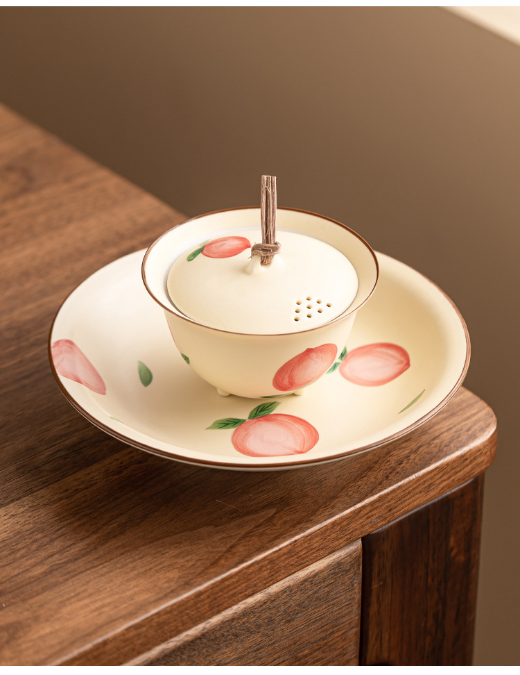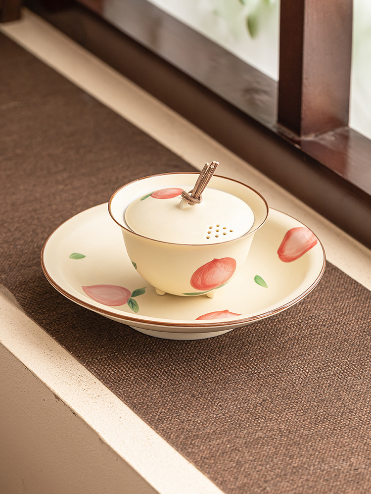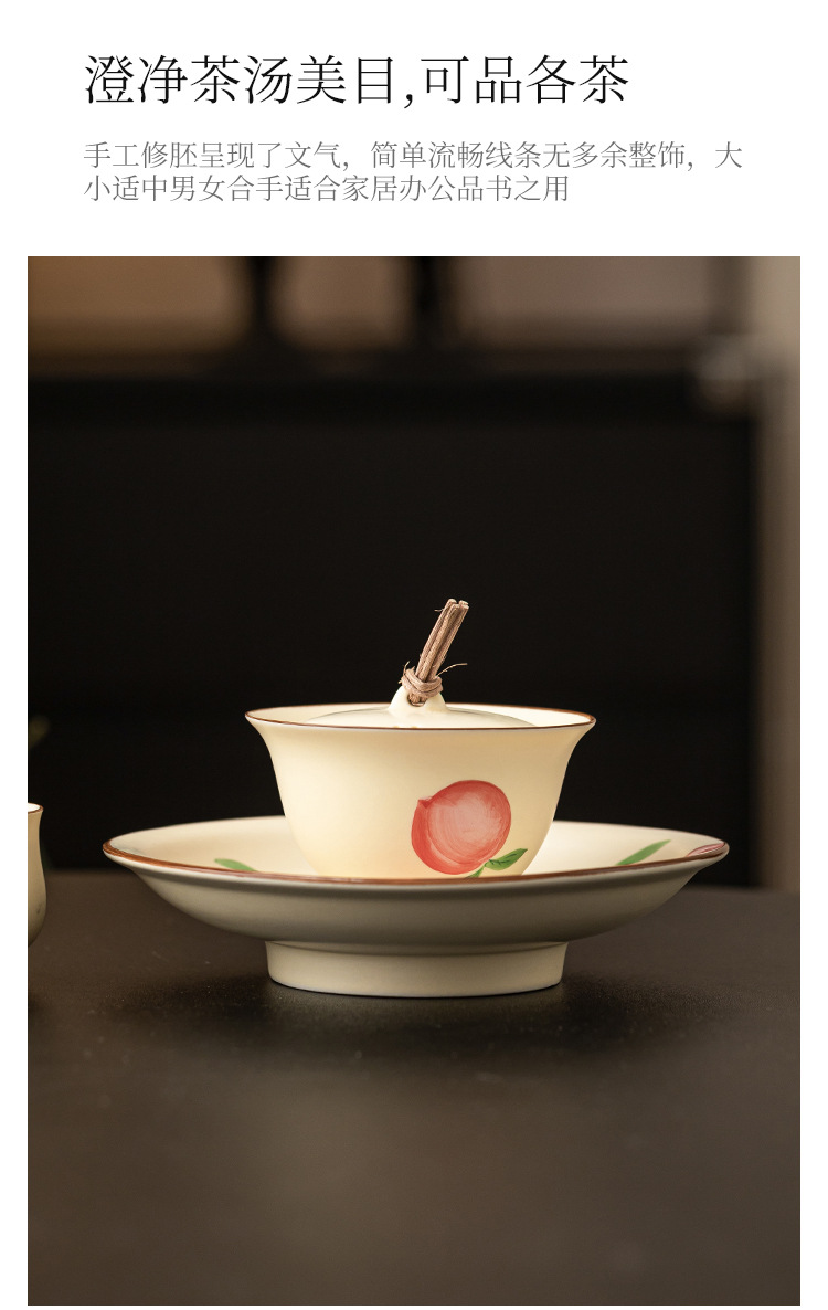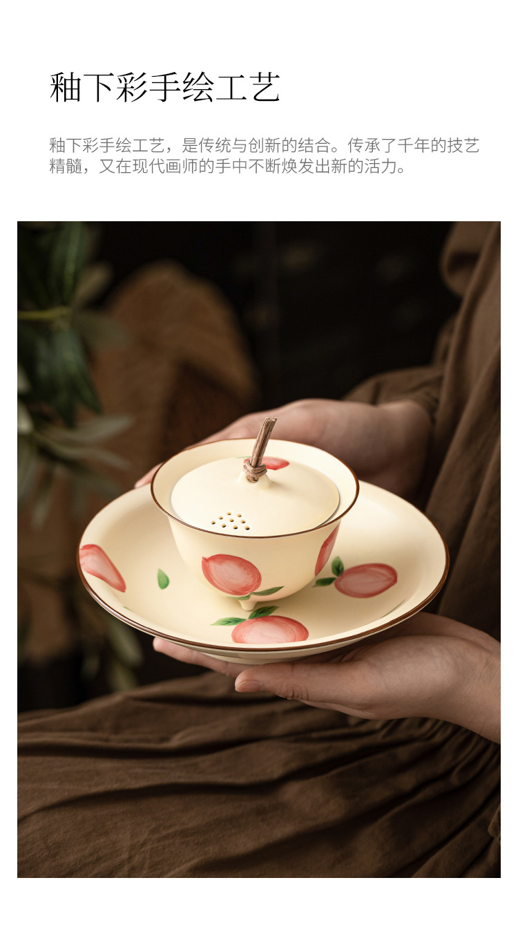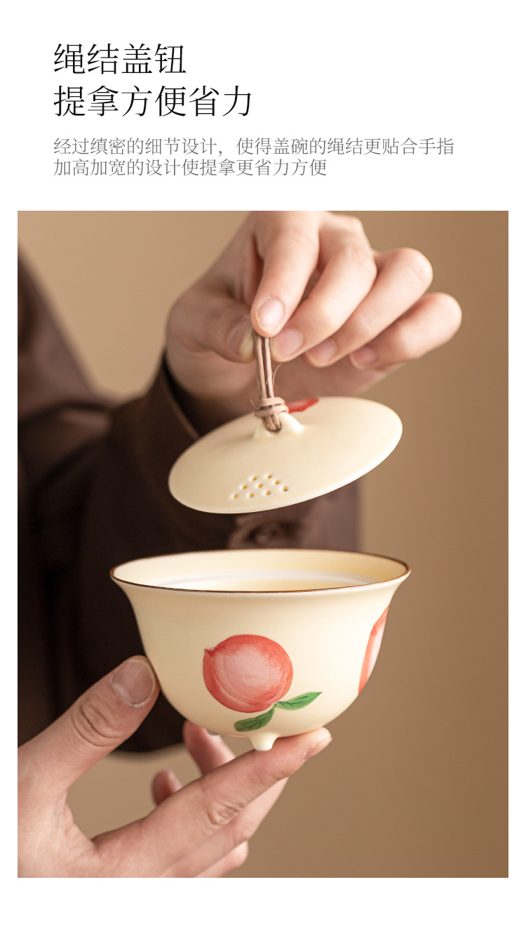 - Quạt vẽ tay nút dây đào có nắp đậy chén trà chén chén trà gốm sứ gia dụng có nắp bộ trà Kung Fu không nóng đơn