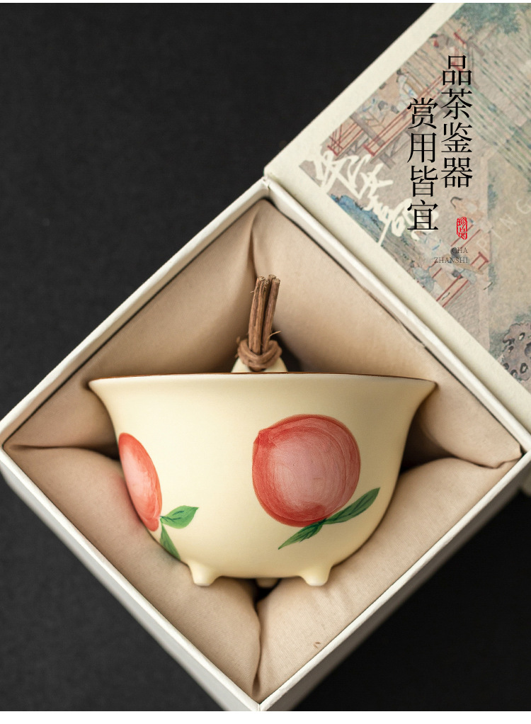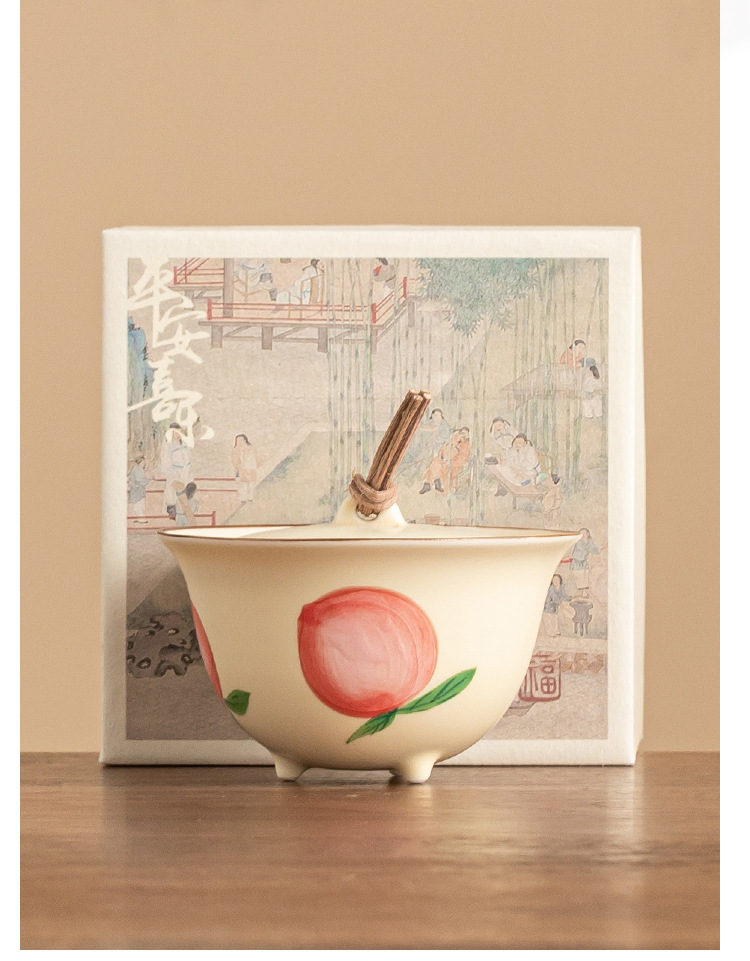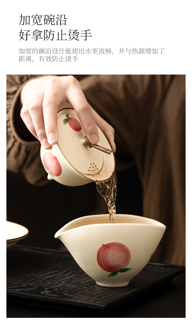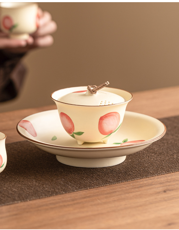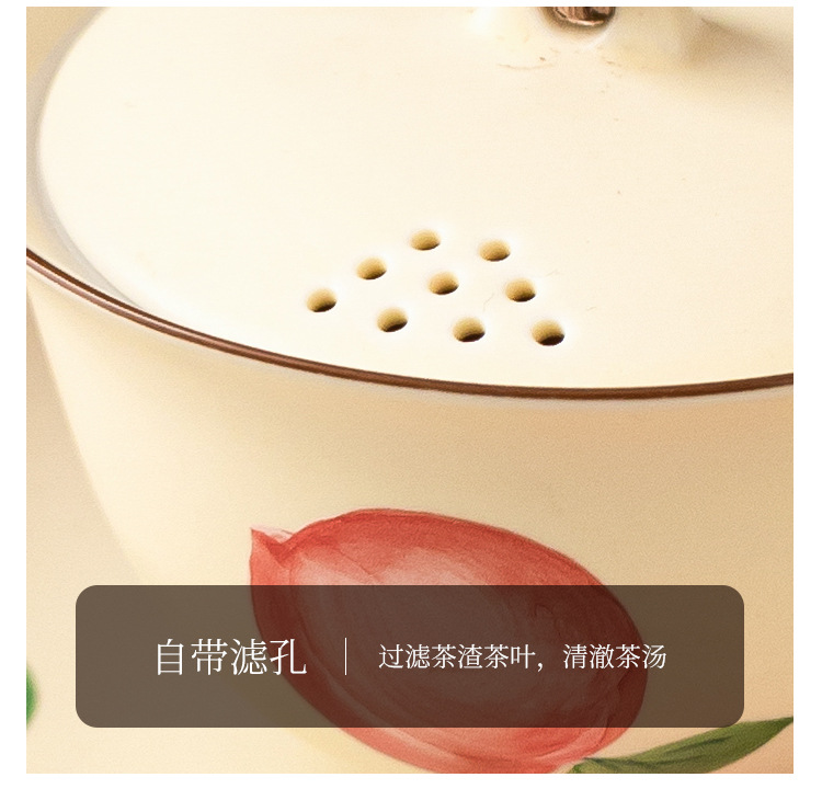 - Quạt vẽ tay nút dây đào có nắp đậy chén trà chén chén trà gốm sứ gia dụng có nắp bộ trà Kung Fu không nóng đơn