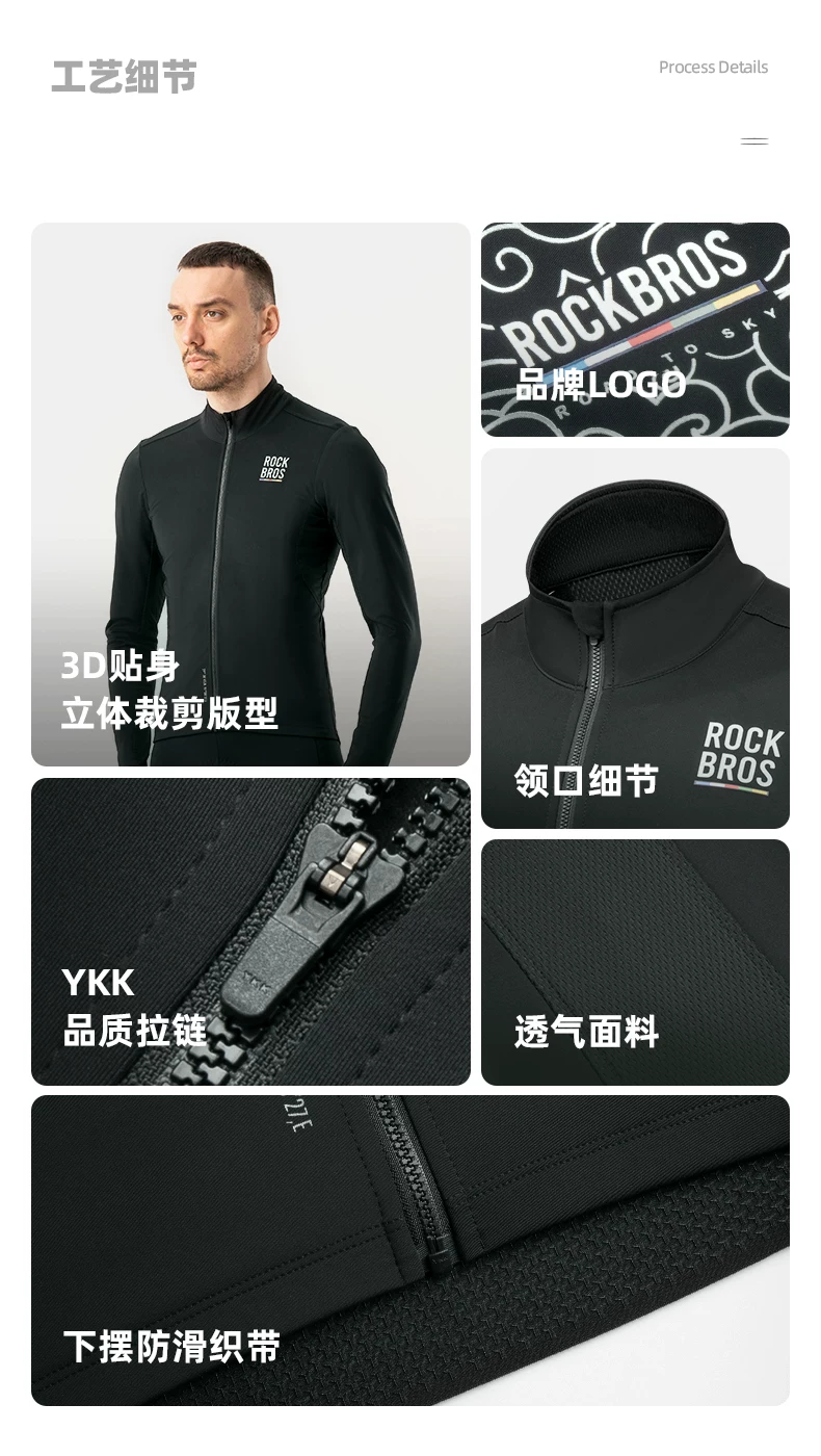 - Rock Brothers Sky Road Series Áo đi xe đạp dài tay Áo ấm mùa thu đông Đường xe đạp thể thao Phong cách nam