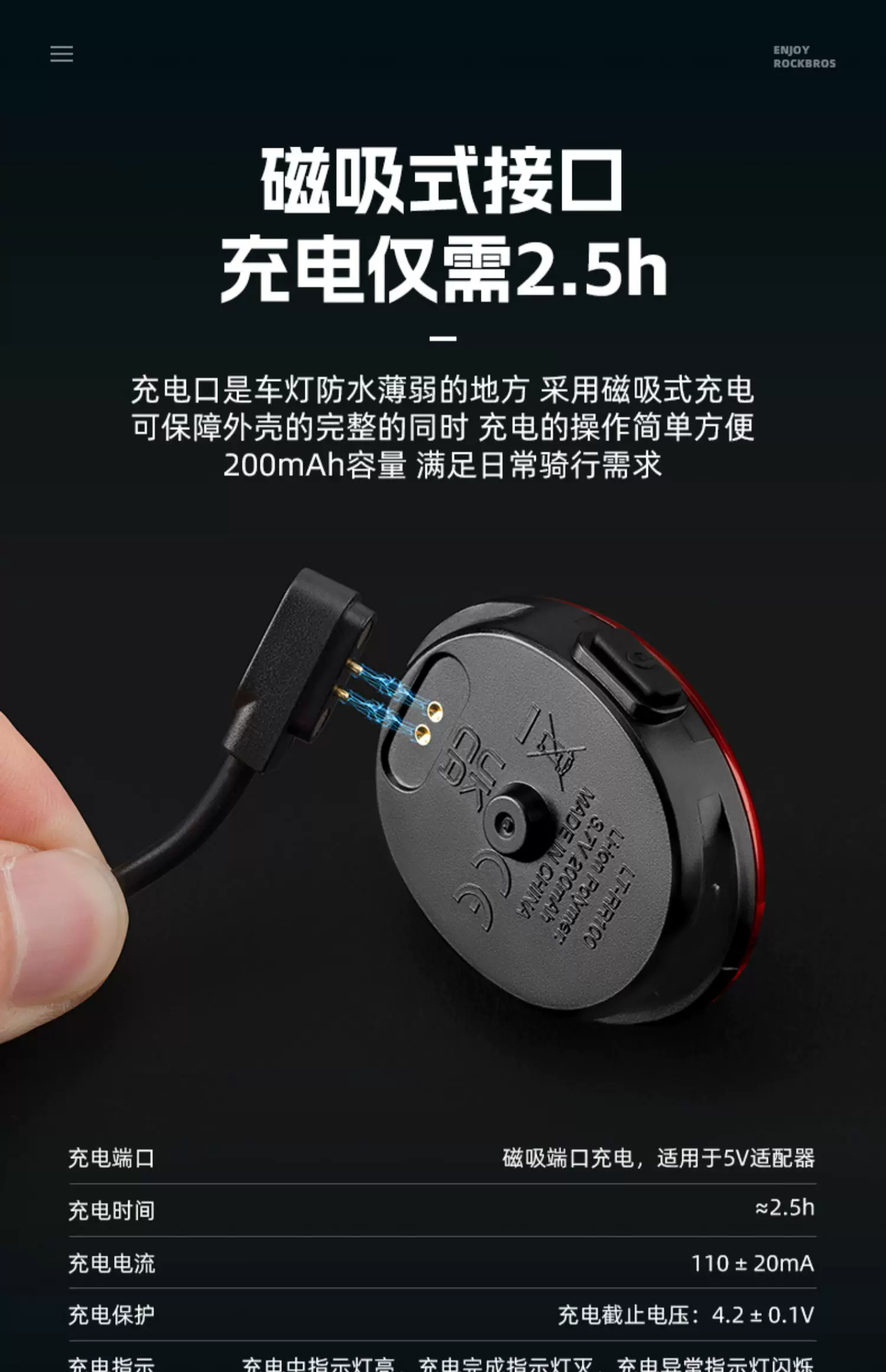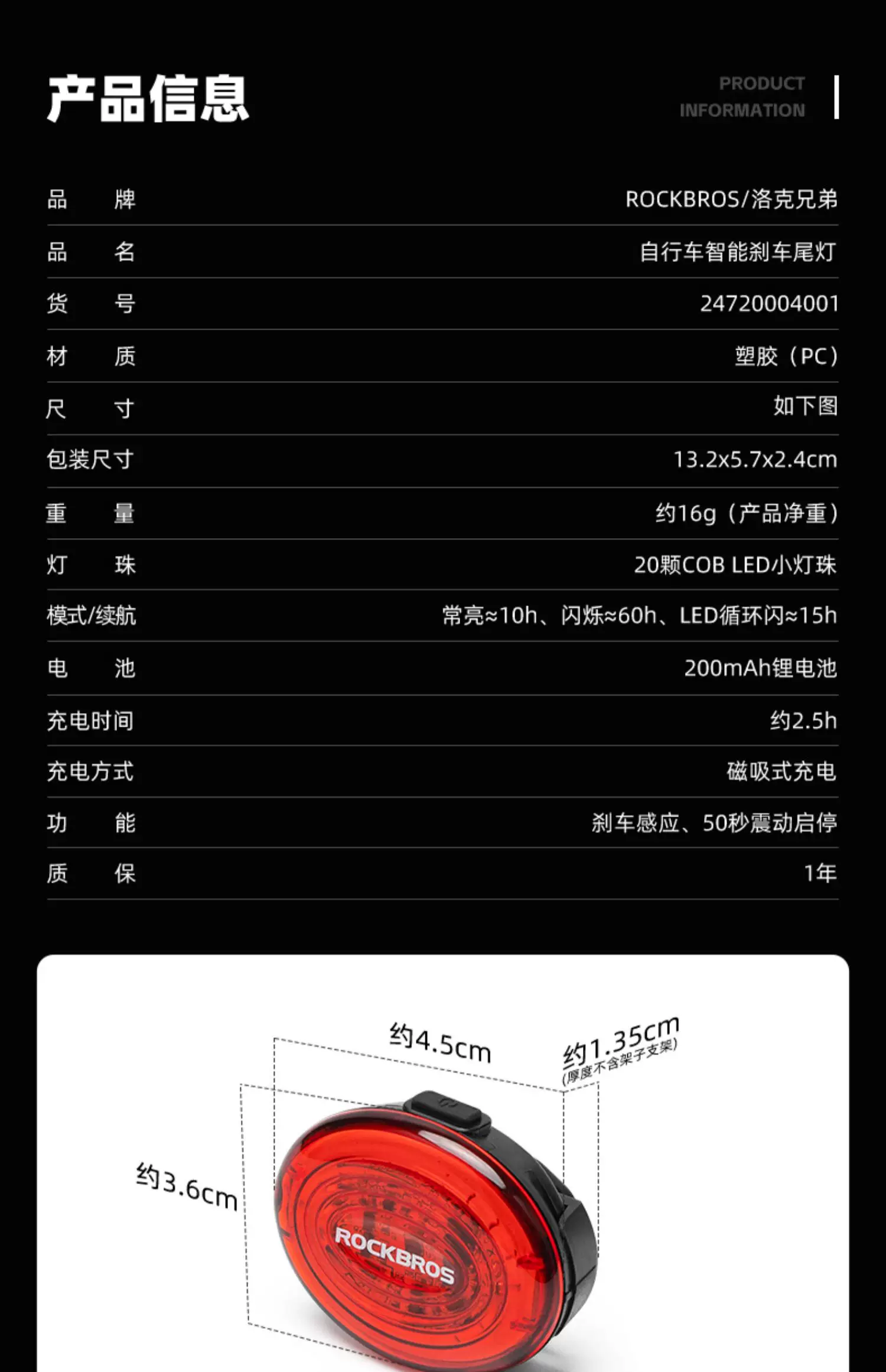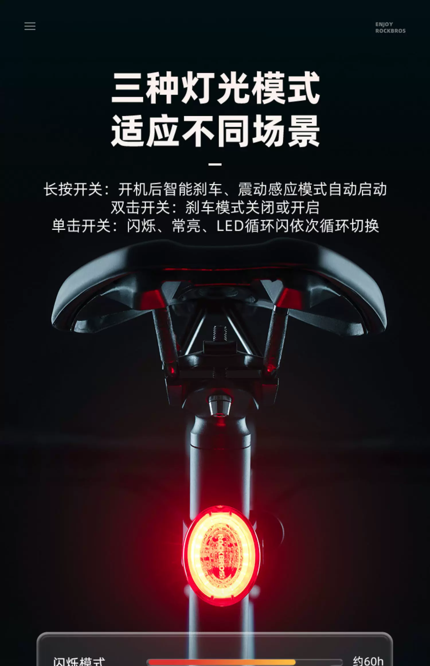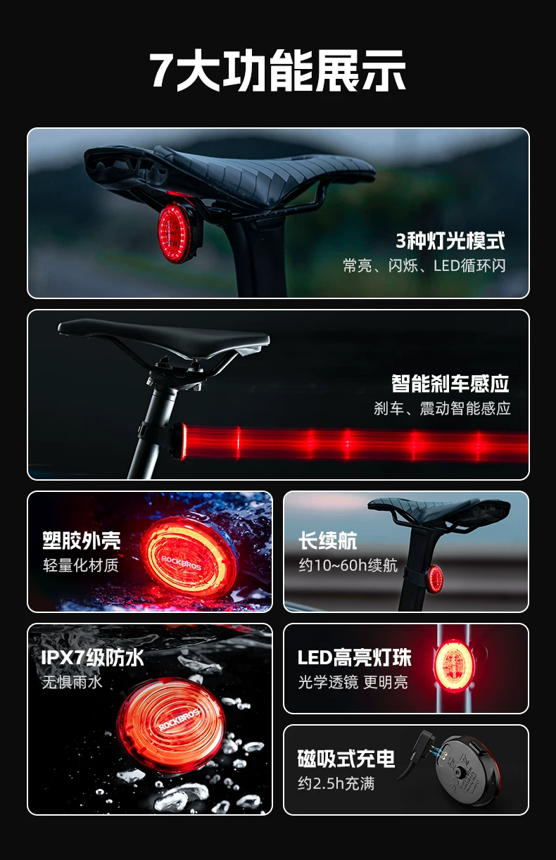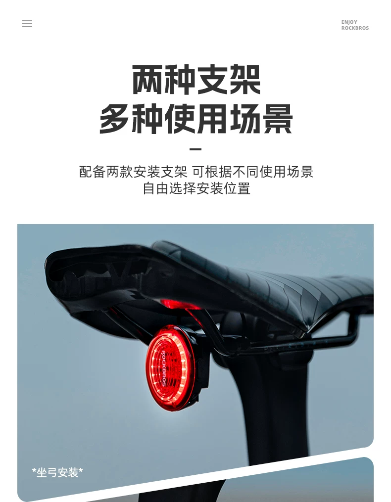 Rock Brothers Xe Đạp Cảm Biến Phanh Thông Minh Đèn Đuôi Xe Đạp Leo Núi Xe Đạp Đường Bộ Đèn Đi Đêm Phụ Kiện Thiết Bị Đi Xe Đạp