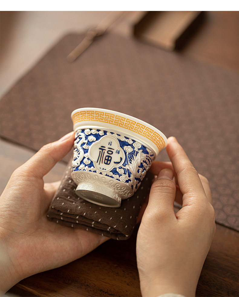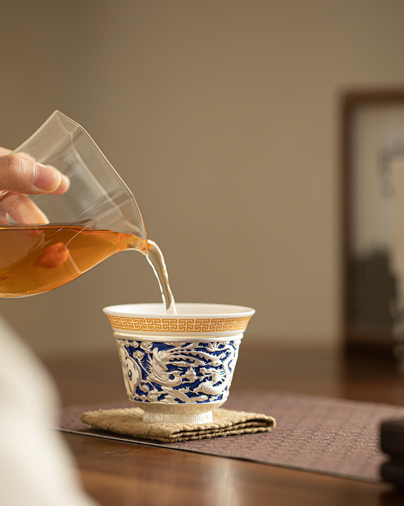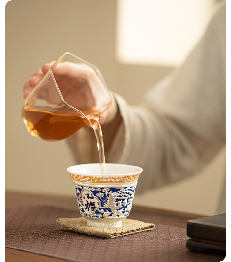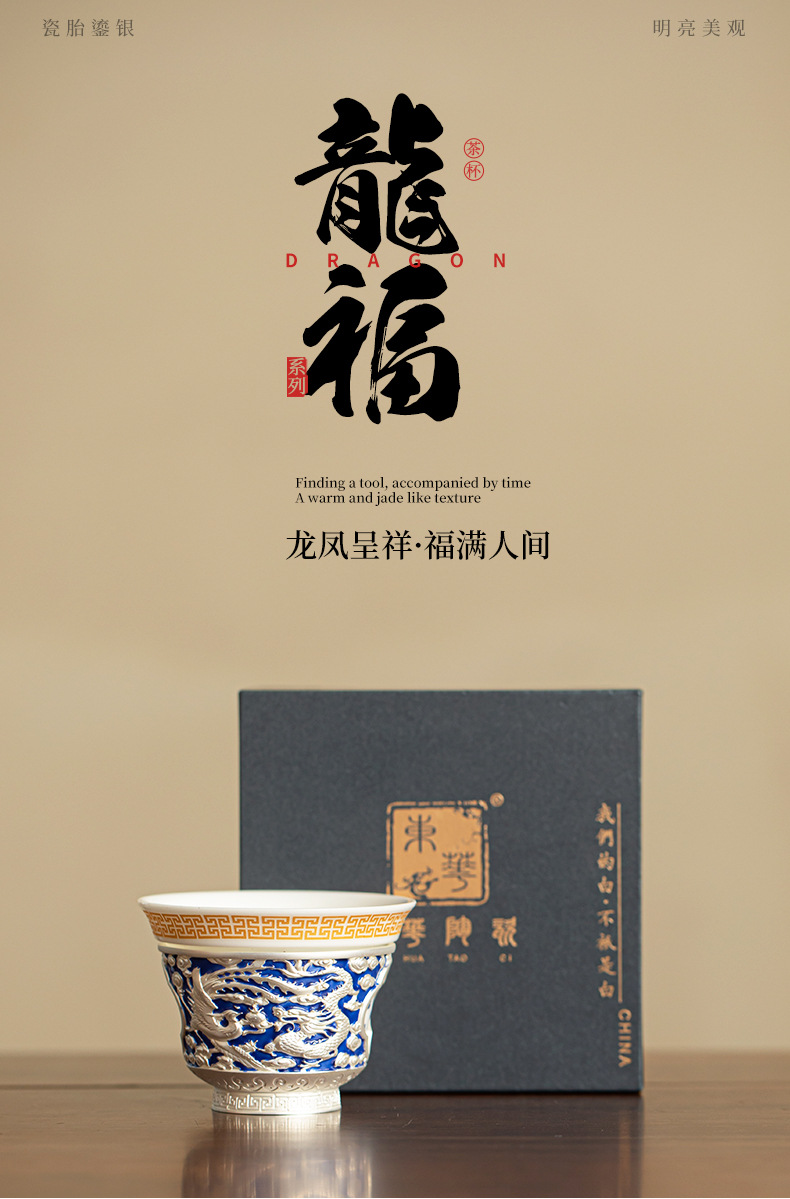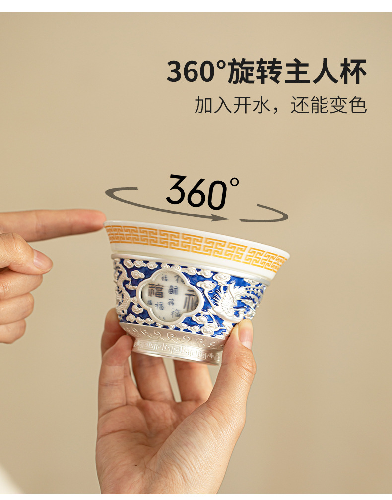 Rồng và phượng mạ bạc Baifu xoay lớn cốc chủ sở hữu lớn dụng cụ trà Kung Fu cốc trà cá nhân tách trà Pu'er cốc đơn bát trà nhỏ