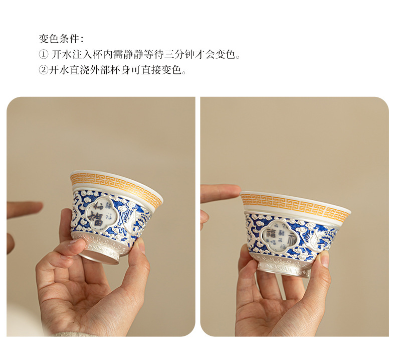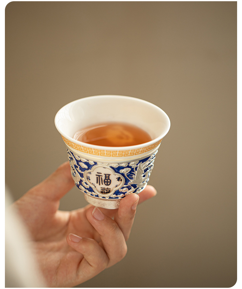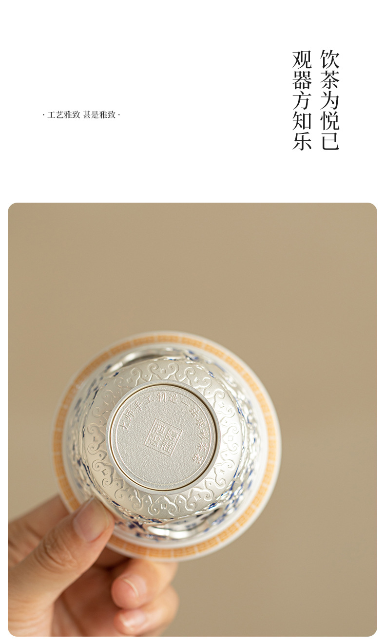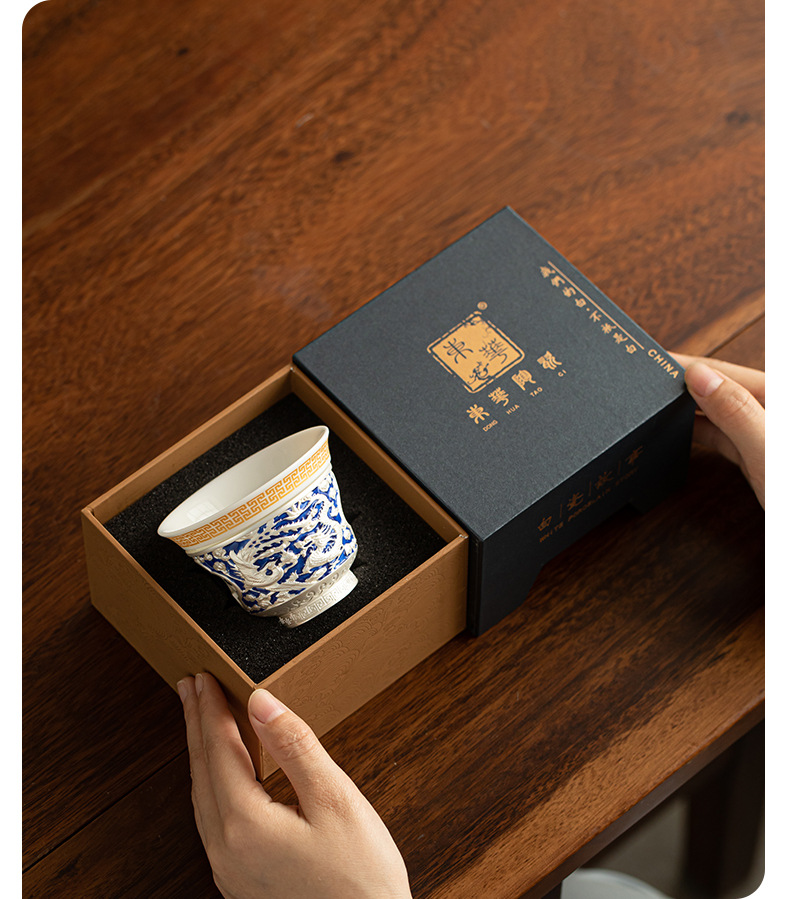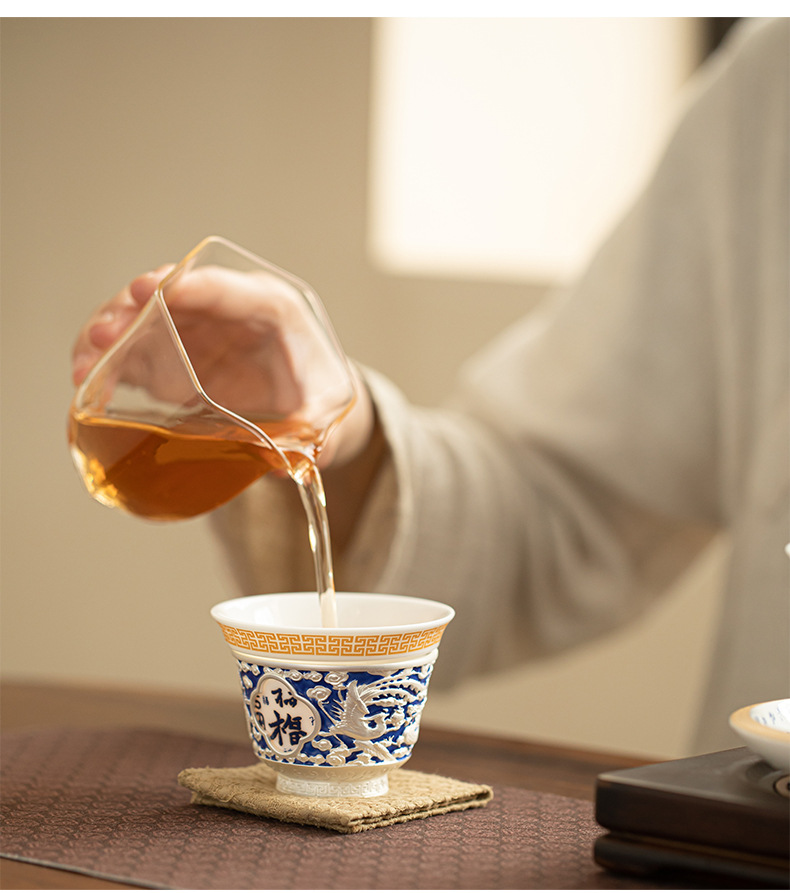 Rồng và phượng mạ bạc Baifu xoay lớn cốc chủ sở hữu lớn dụng cụ trà Kung Fu cốc trà cá nhân tách trà Pu'er cốc đơn bát trà nhỏ