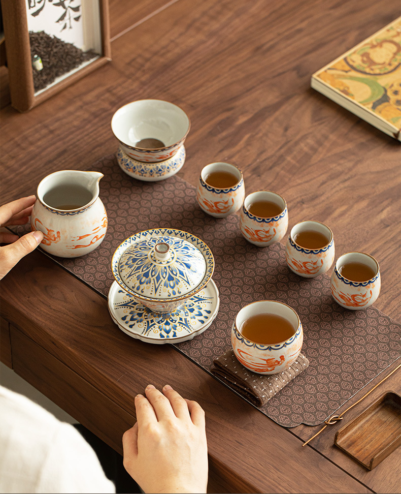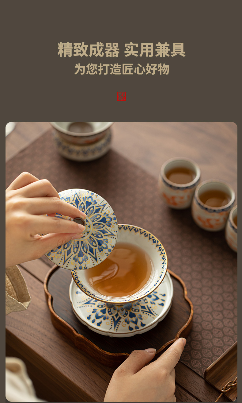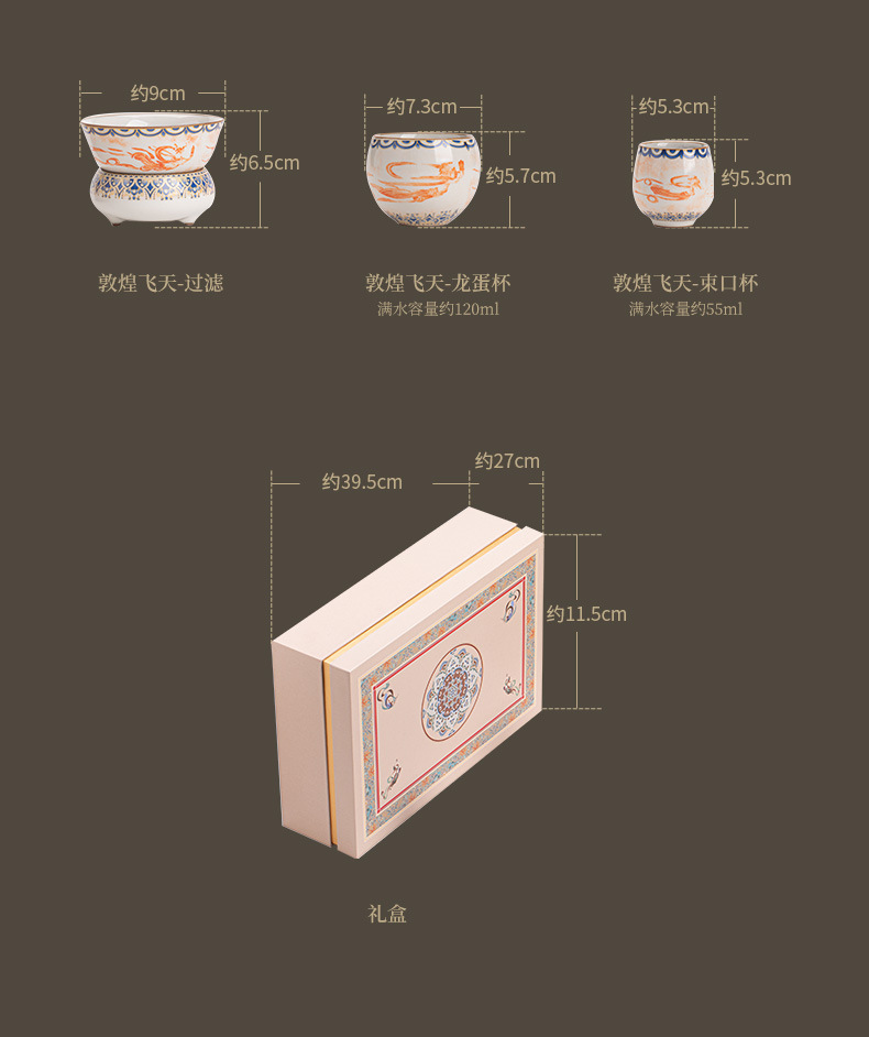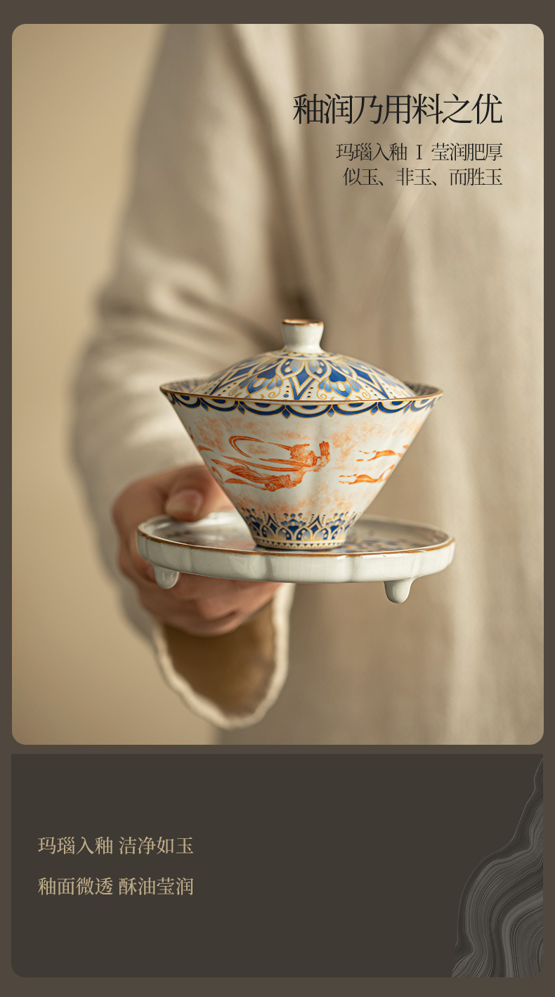 Ru Kiln Đôn Hoàng Feitian Nắp bát cốc trà Bộ đồ trà gốm sứ thủy triều phong cách pha trà bát sản phẩm cốc trà hộp quà công bằng