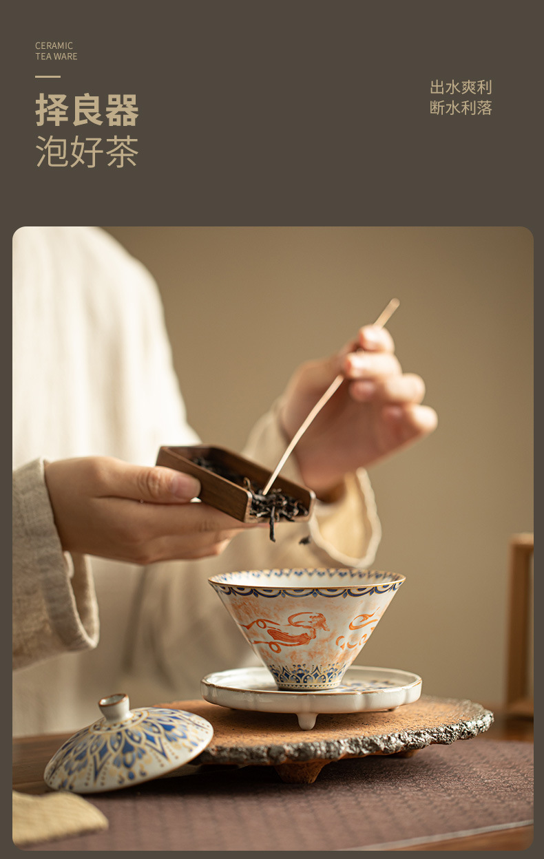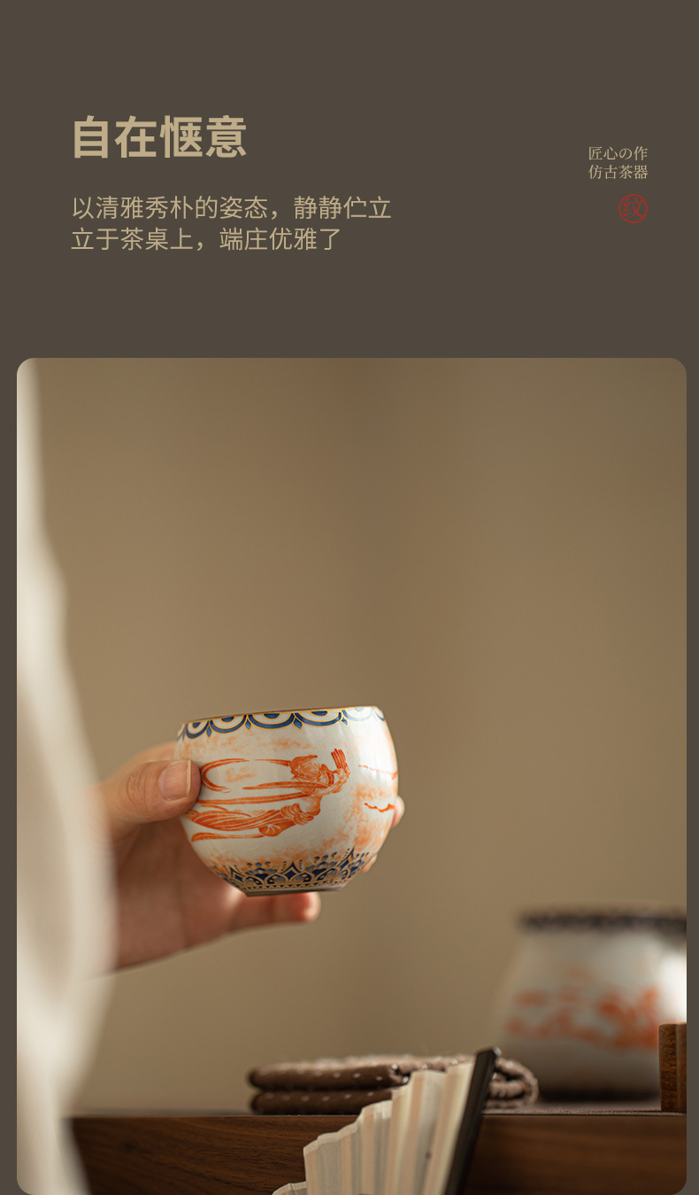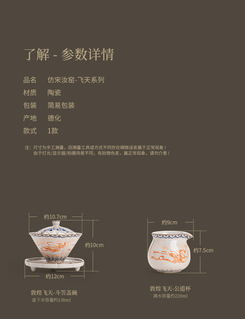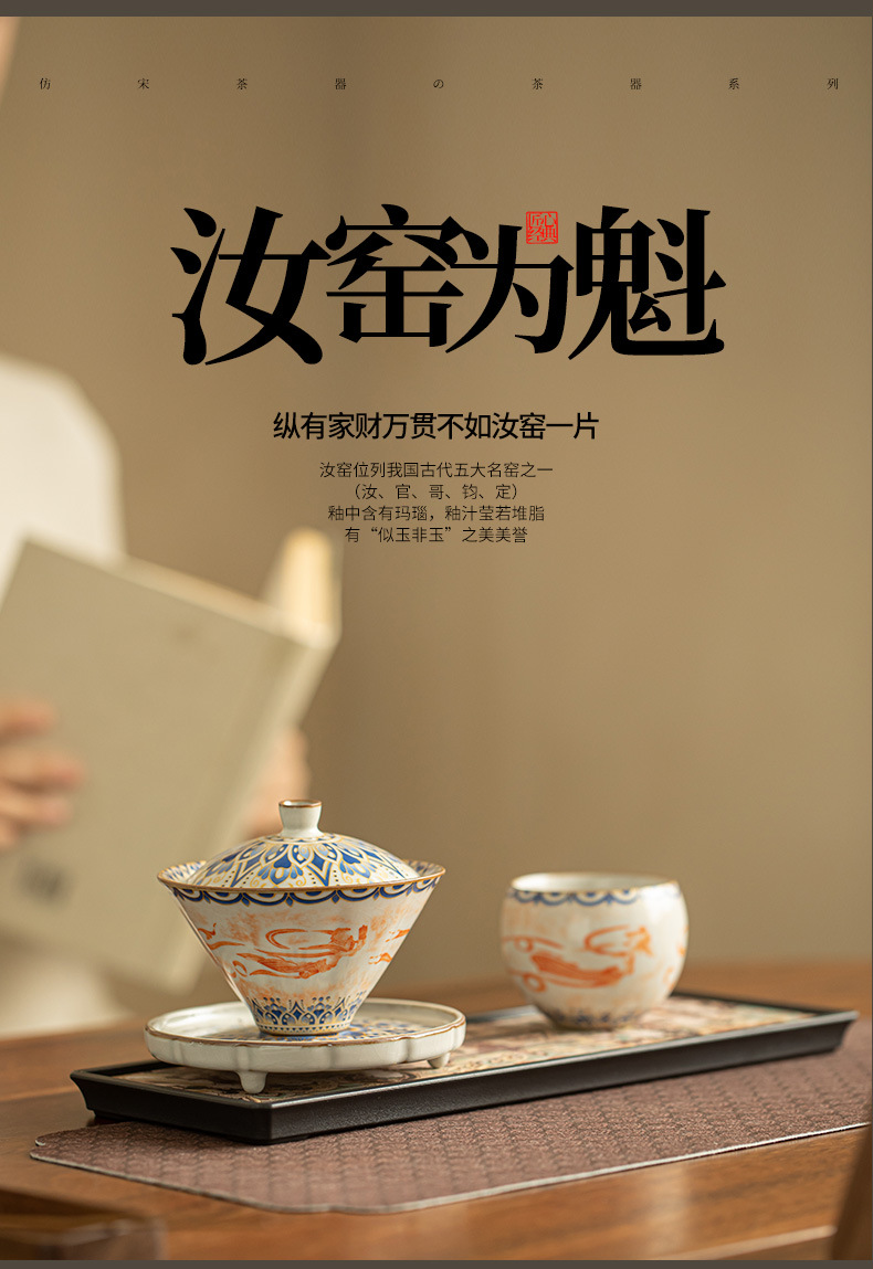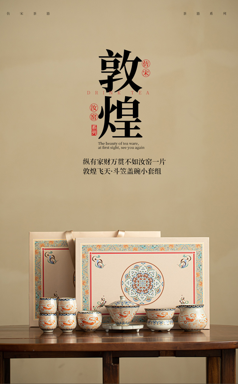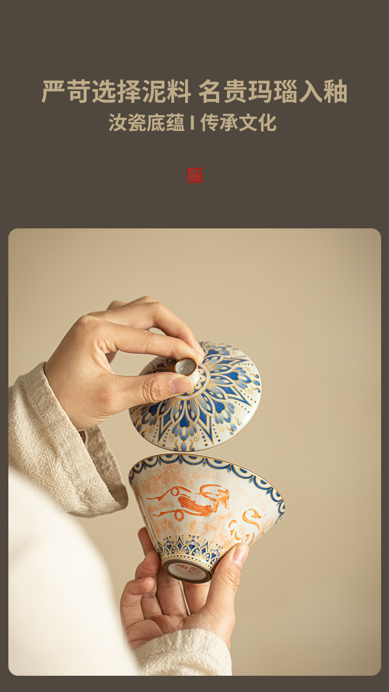 - Ru Kiln Đôn Hoàng Feitian Nắp bát cốc trà Bộ đồ trà gốm sứ thủy triều phong cách pha trà bát sản phẩm cốc trà hộp quà công bằng