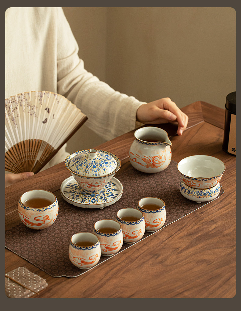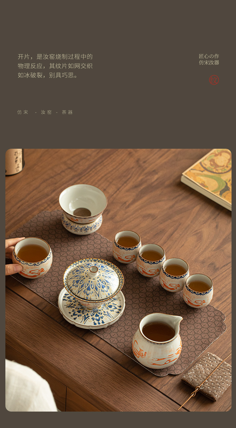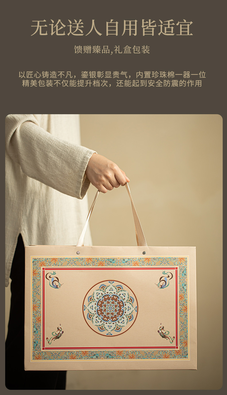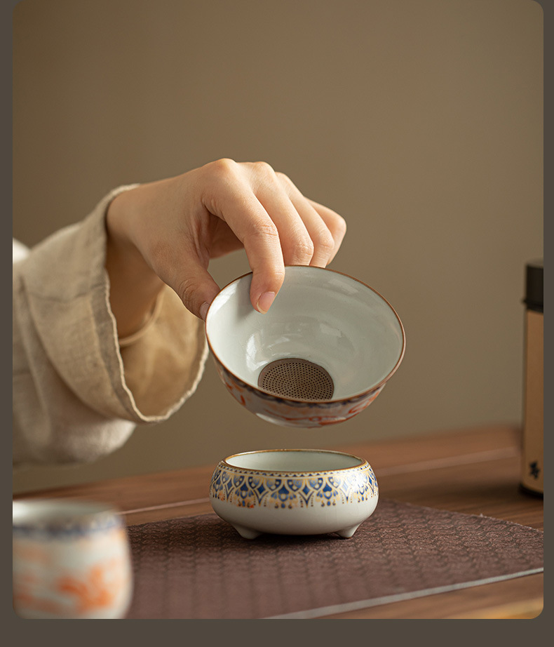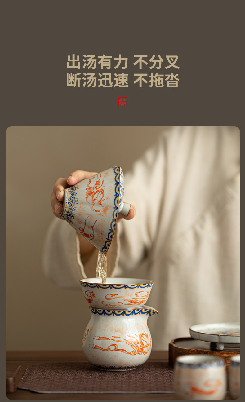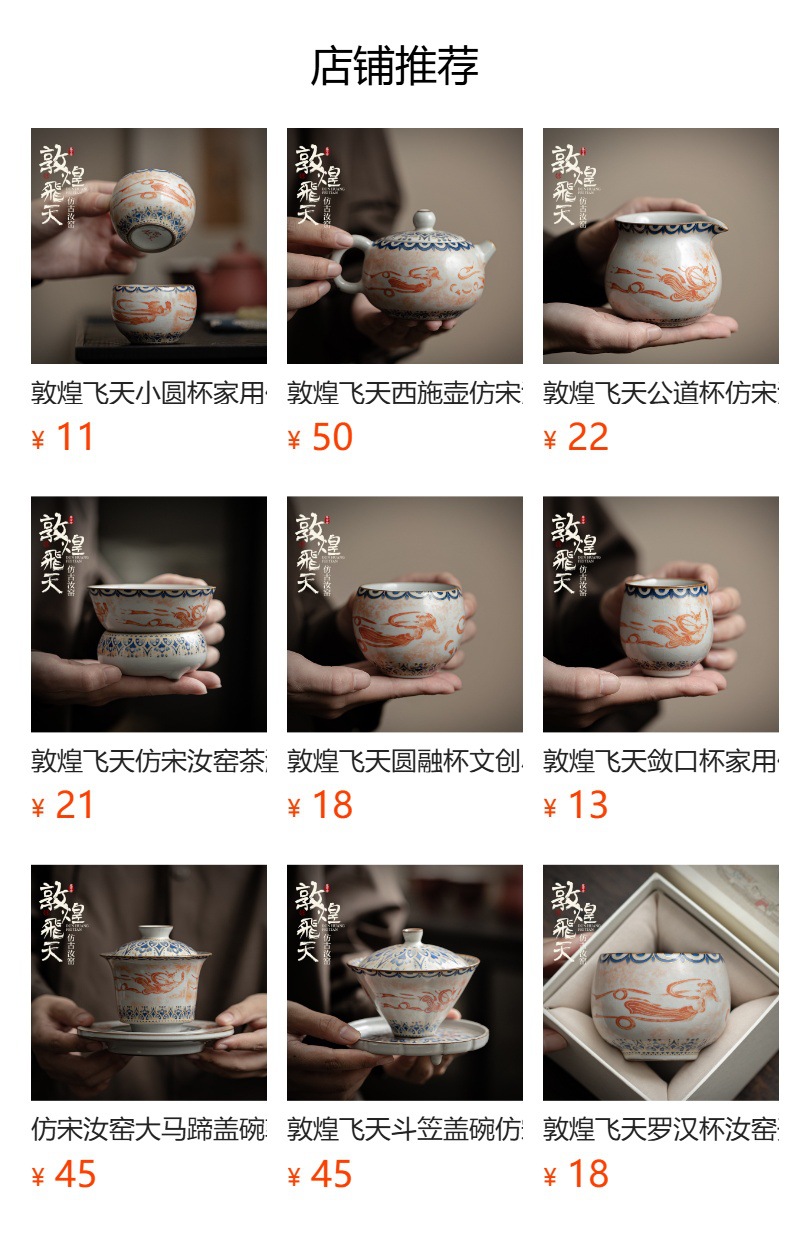 - Ru Kiln Đôn Hoàng Feitian Nắp bát cốc trà Bộ đồ trà gốm sứ thủy triều phong cách pha trà bát sản phẩm cốc trà hộp quà công bằng