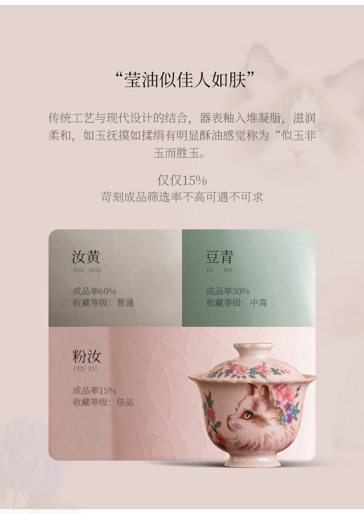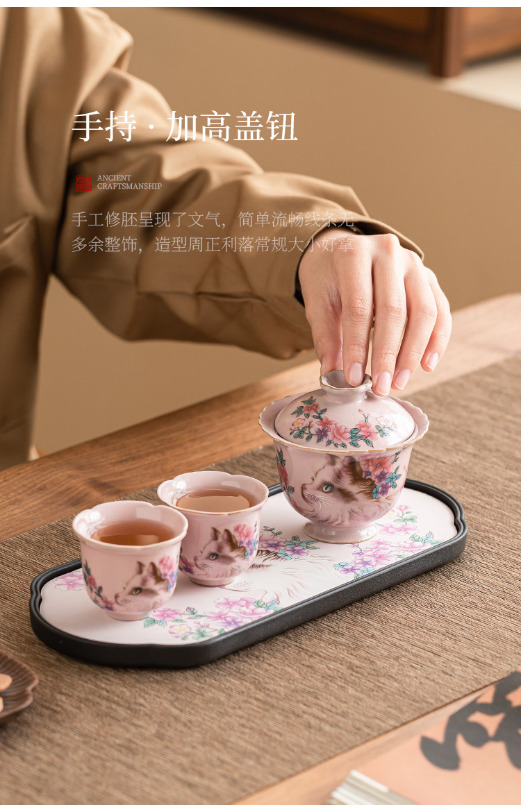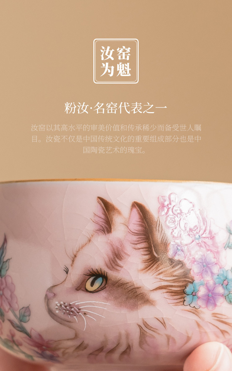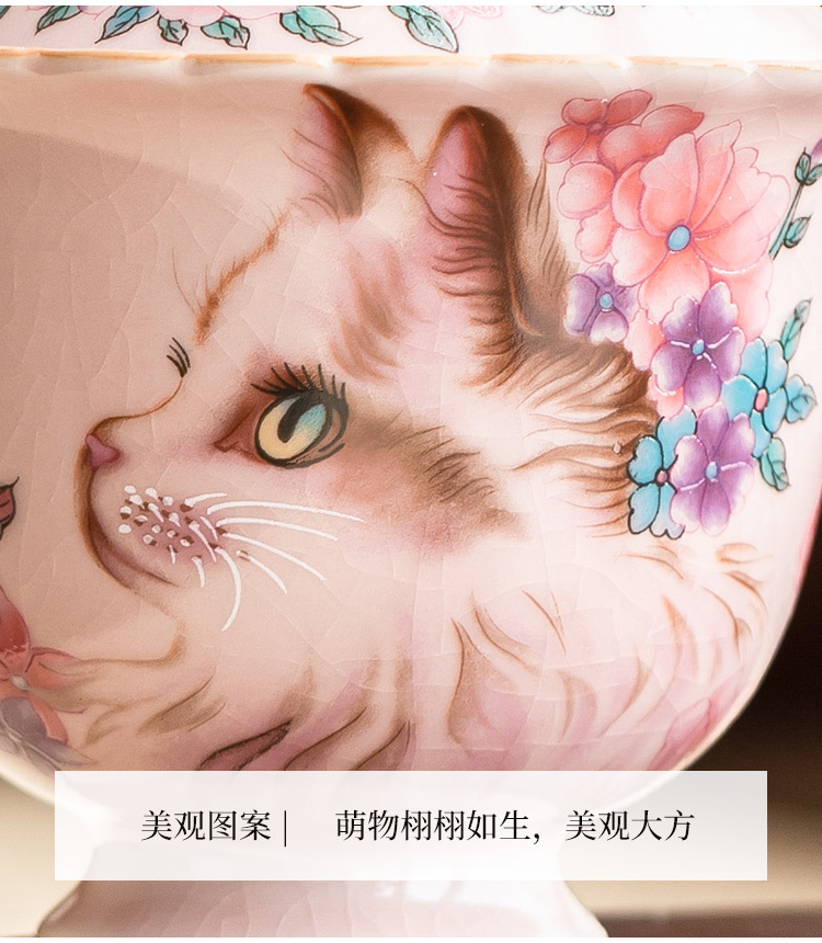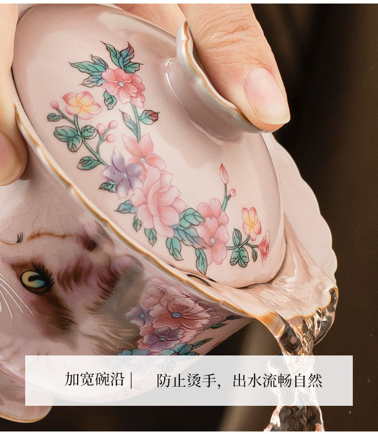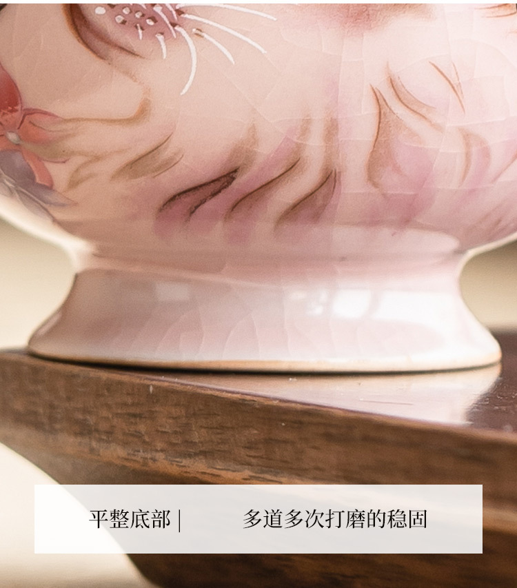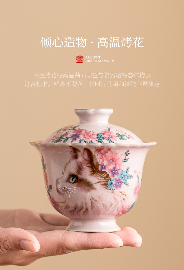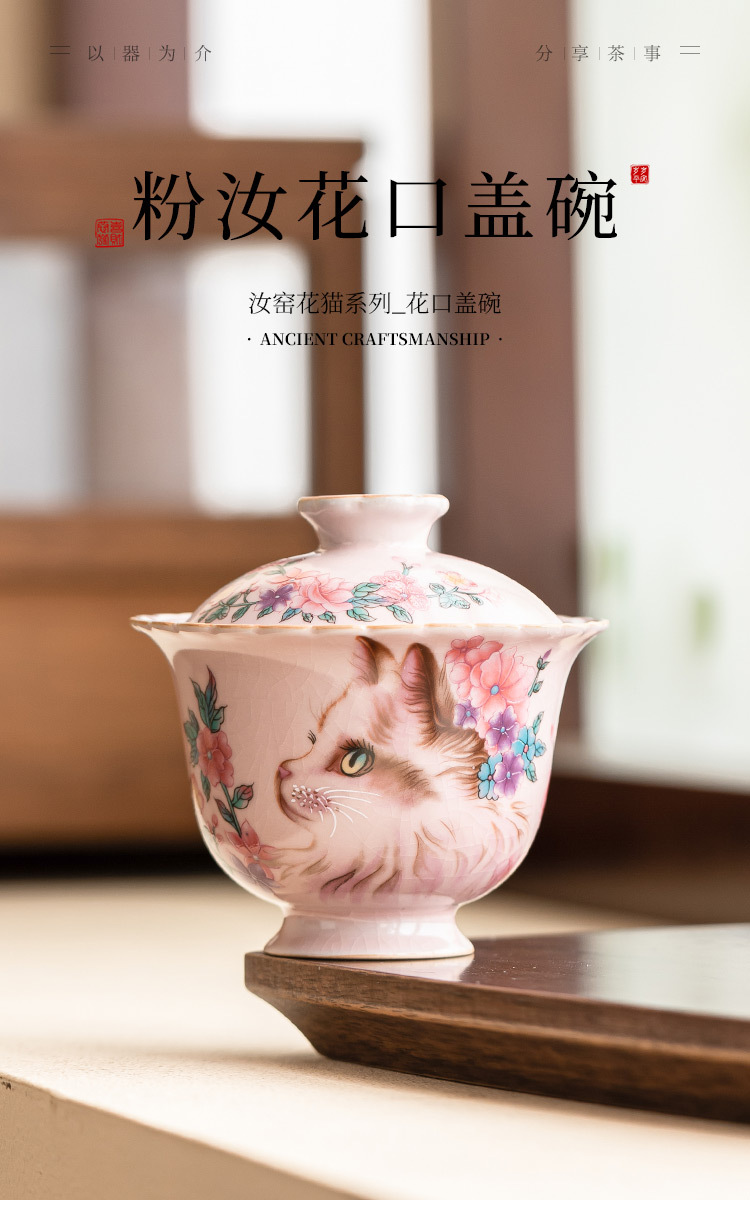 - Ru Kiln Hoa Mèo Họa Tiết Hoa Miệng Bát Có Chân Cao, Tách Trà Gốm Ru Màu Hồng, Đơn Có Nắp, Bộ Pha Trà Gia Đình Cho Nữ, Kích Thước Lớn.