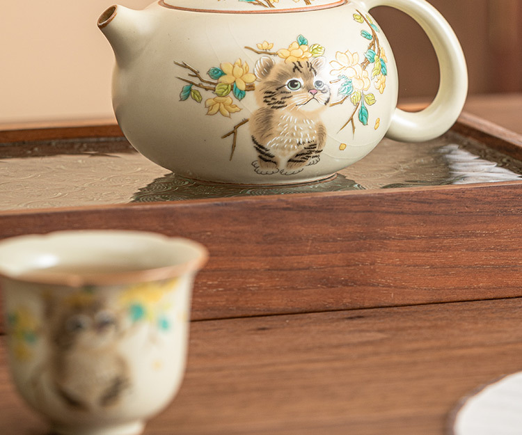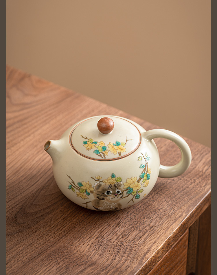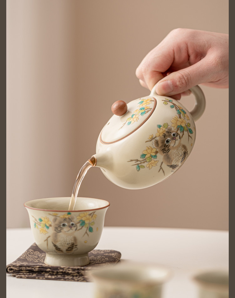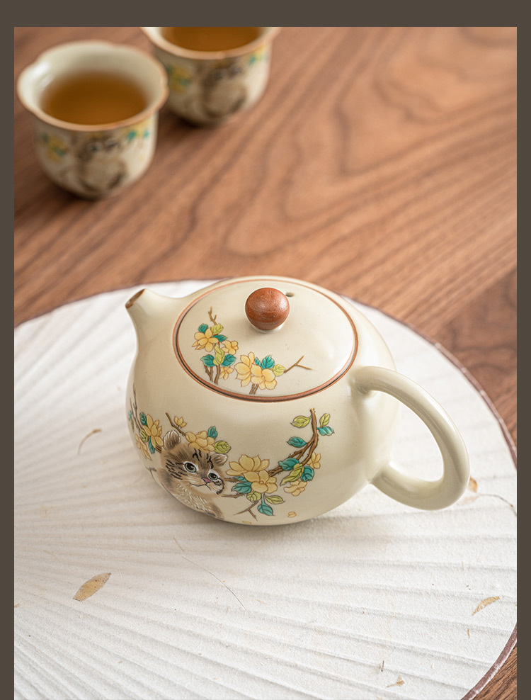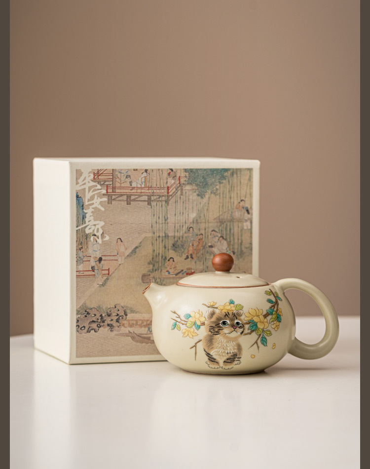 - Ru Kiln Yellow Flower Mengmao Xi Shi Ấm trà gia dụng Bộ trà Kung Fu gốm sứ có thể mở một bộ hai cốc