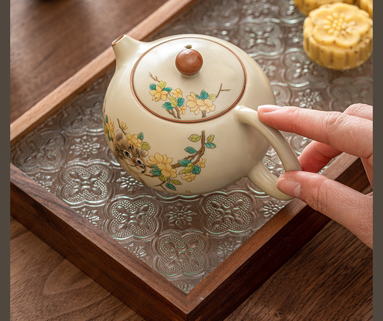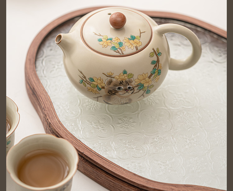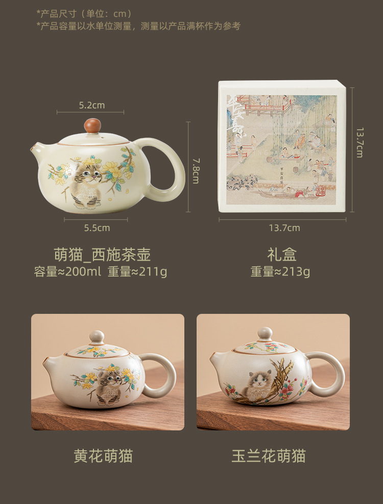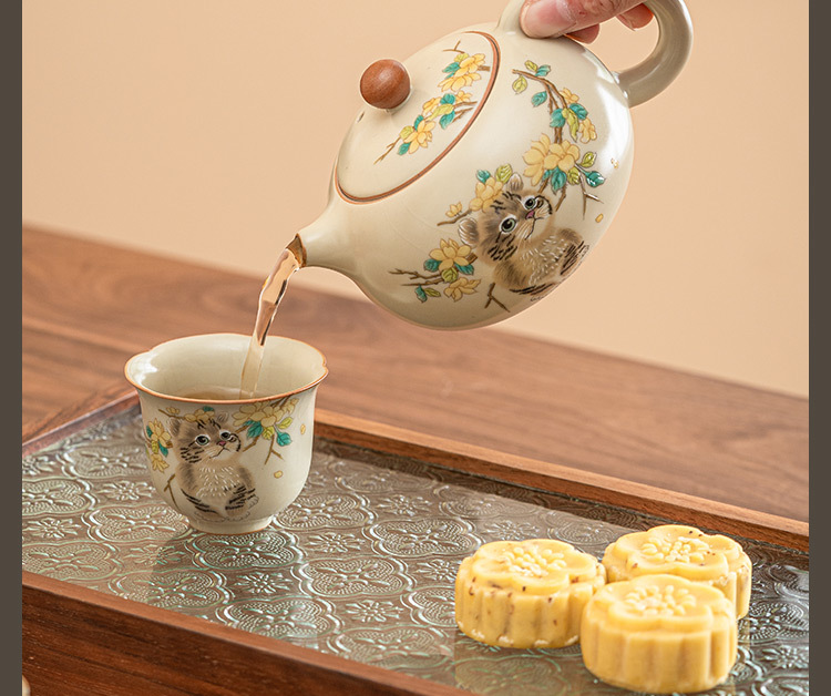 Ru Kiln Yellow Flower Mengmao Xi Shi Ấm trà gia dụng Bộ trà Kung Fu gốm sứ có thể mở một bộ hai cốc