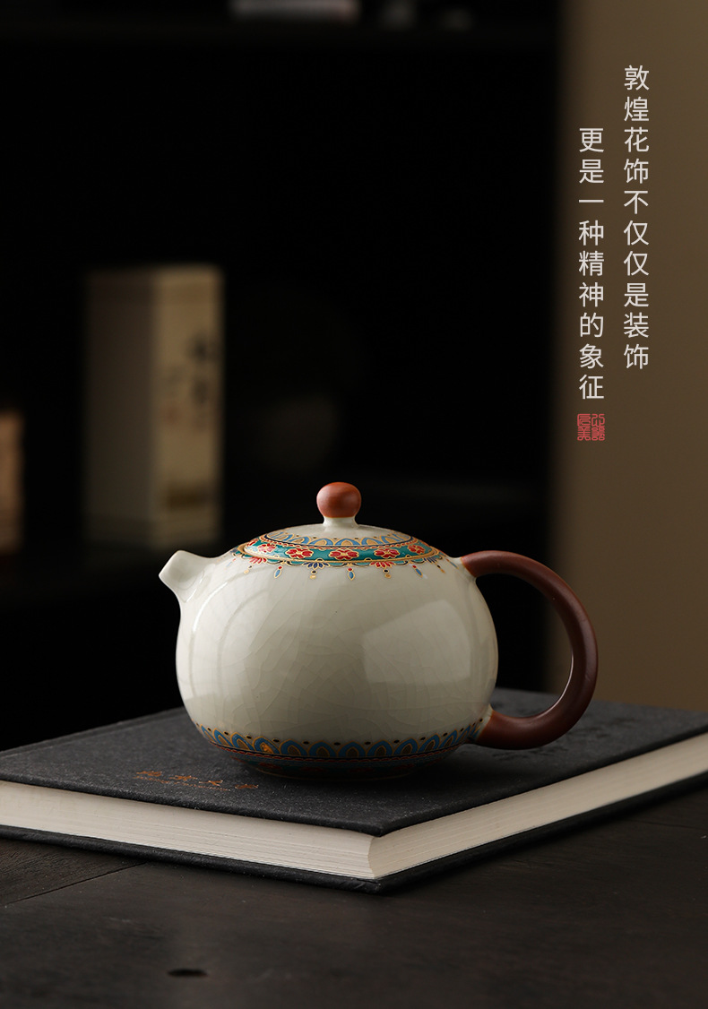 Ru Lò Đôn Hoàng Baoxianghua Xi Shi Ấm pha trà gia dụng bằng gốm sứ có thể nâng cao bộ trà Kung Fu ấm lọc ấm đơn