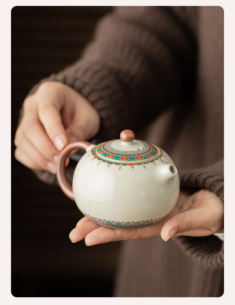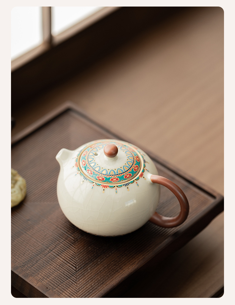 - Ru Lò Đôn Hoàng Baoxianghua Xi Shi Ấm pha trà gia dụng bằng gốm sứ có thể nâng cao bộ trà Kung Fu ấm lọc ấm đơn