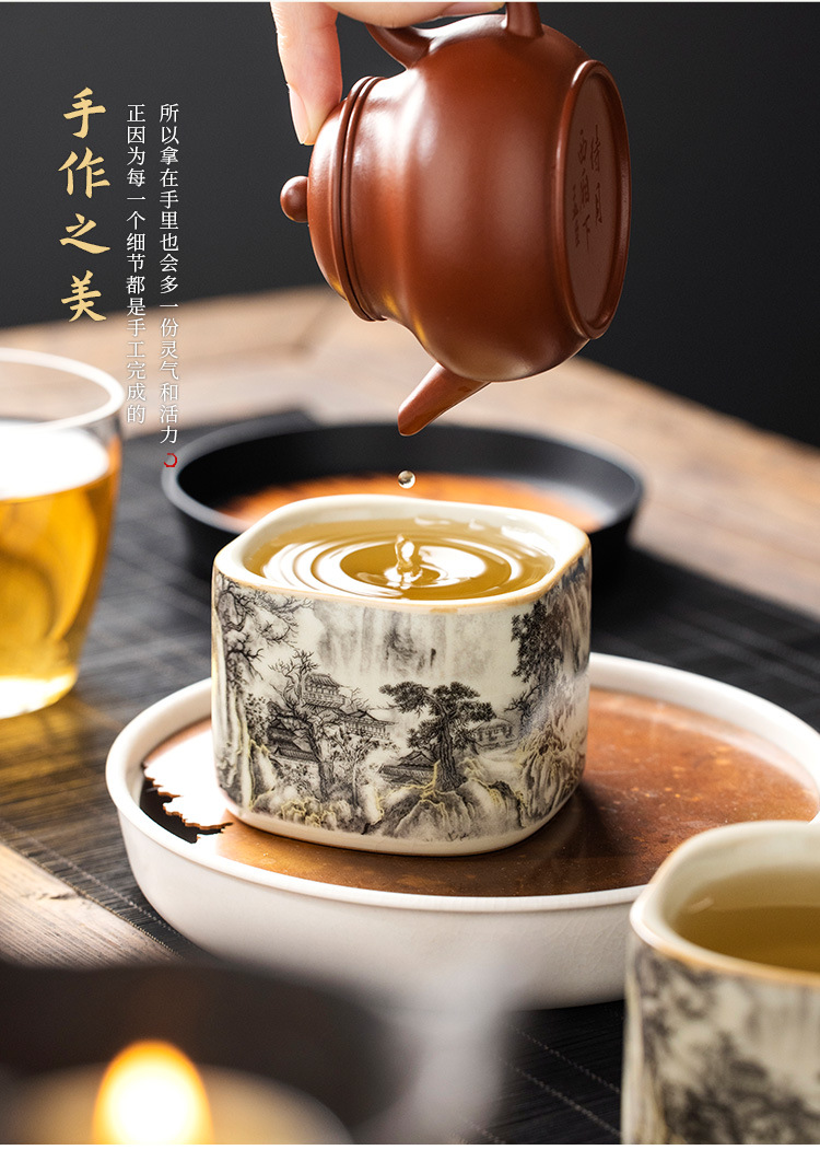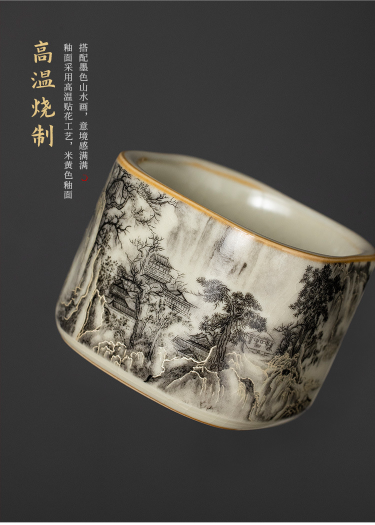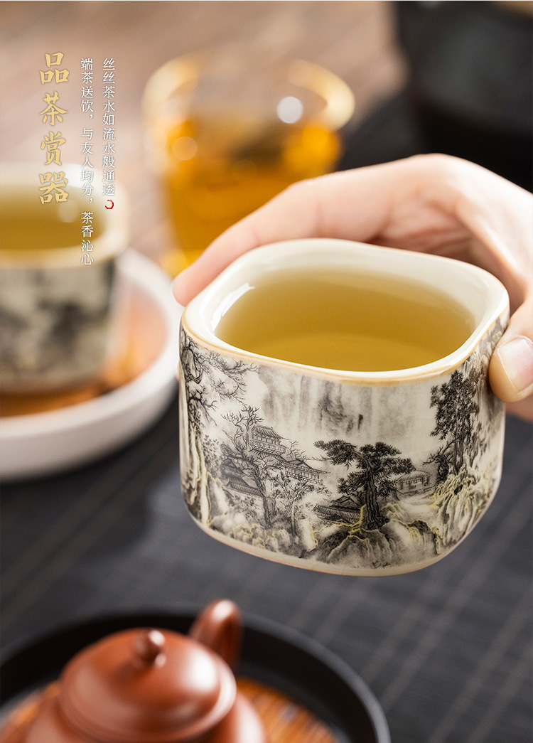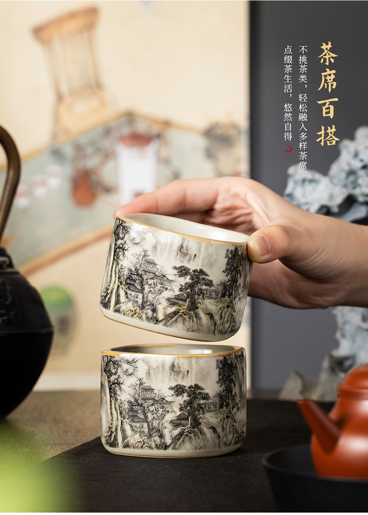 Ru Lò Nung Mực Phong Cảnh Thảo Dược Cốc Trà Cá Nhân Gốm Sứ Cao Cấp Tinh Tế Chủ Cốc Trà Bộ Trà