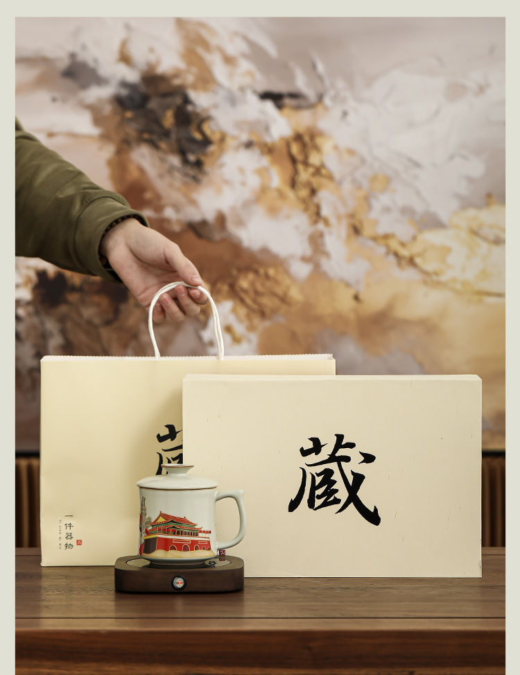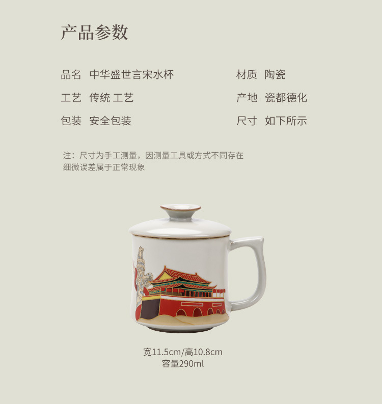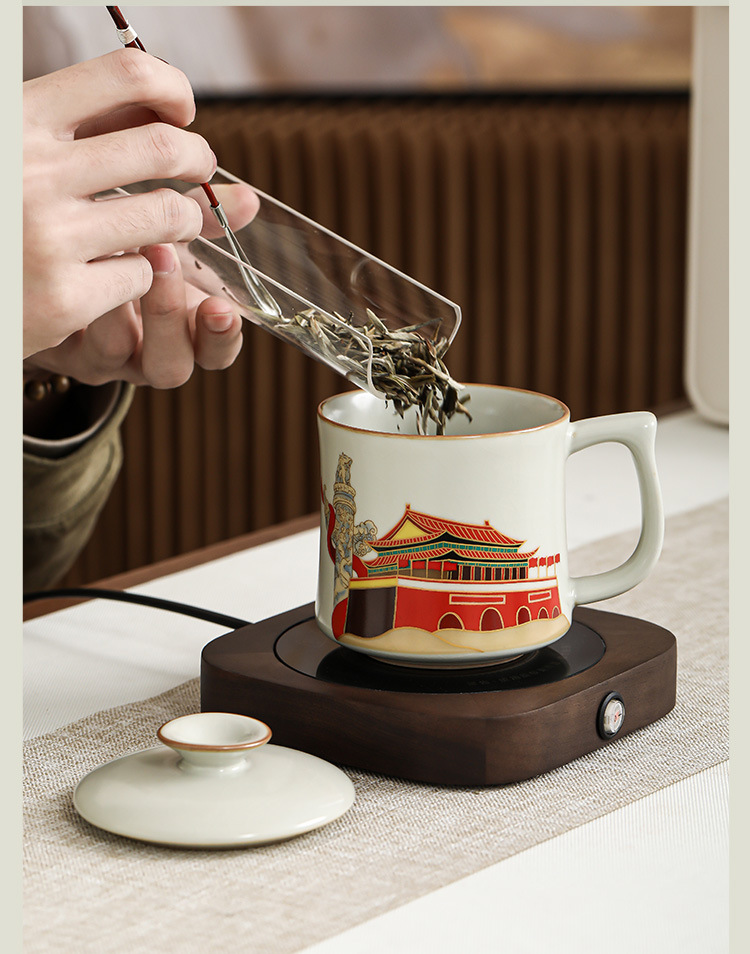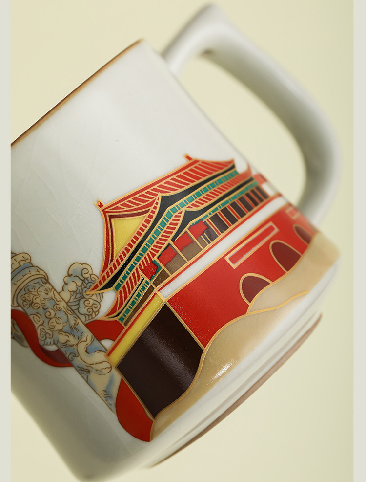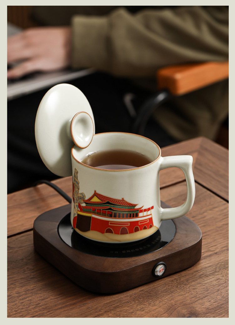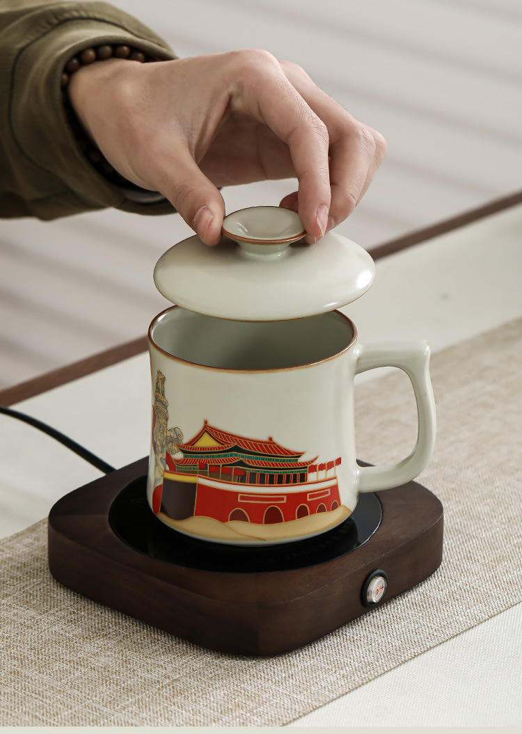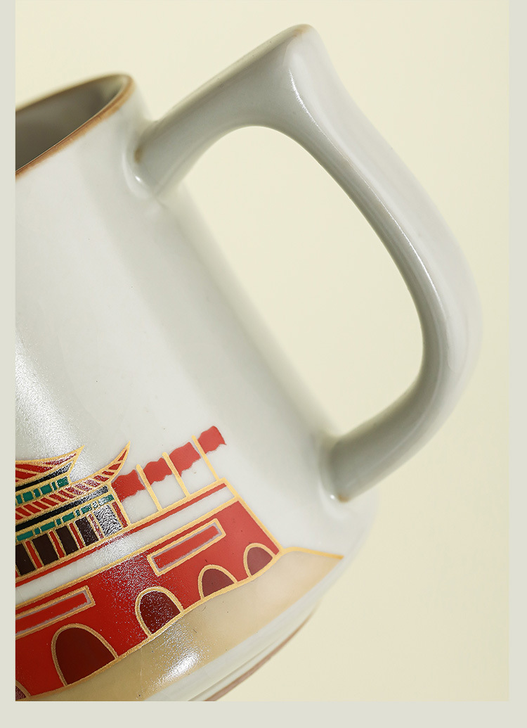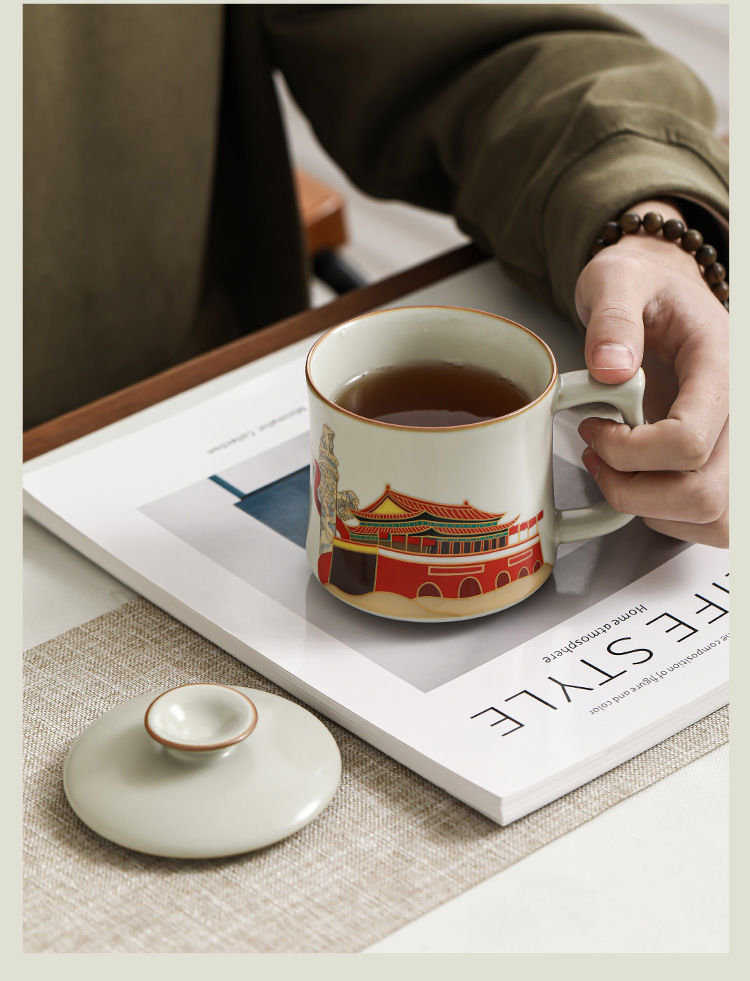 Ru Yaoyan Song Zhonghua Thịnh vượng Pha trà Cốc nước Cốc nước Đá gốm sứ Cốc gia dụng văn phòng Cốc trà có nắp