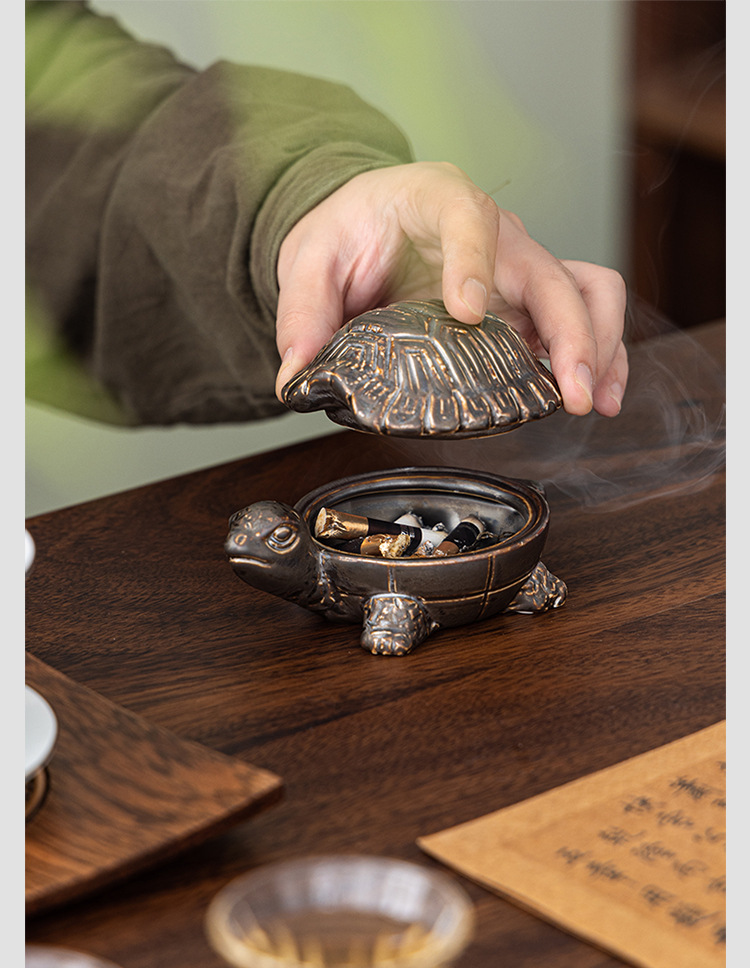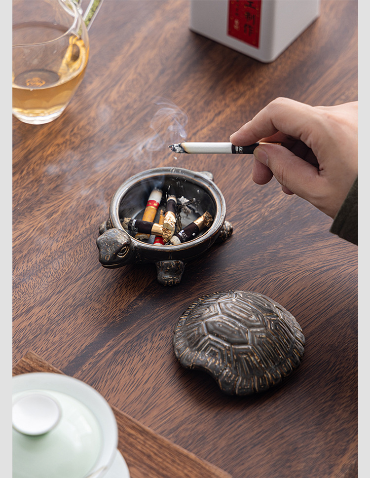 Rùa trường thọ gạt tàn gốm nhỏ trà thú cưng văn phòng nhà phòng khách có nắp chống tro bay phong cách Trung Hoa đồ trang trí dễ thương trang trí