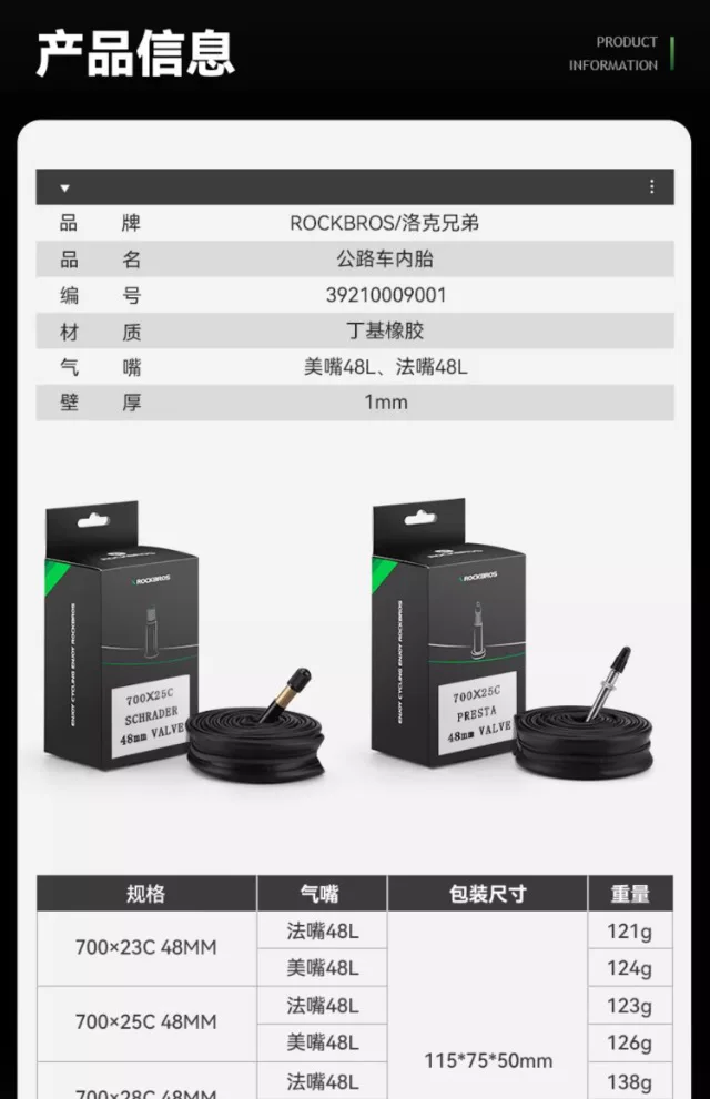 - Ruột xe đạp Rock Brothers, lốp xe đạp đường trường 700C/23 25 28 35, van Presta, cao su butyl