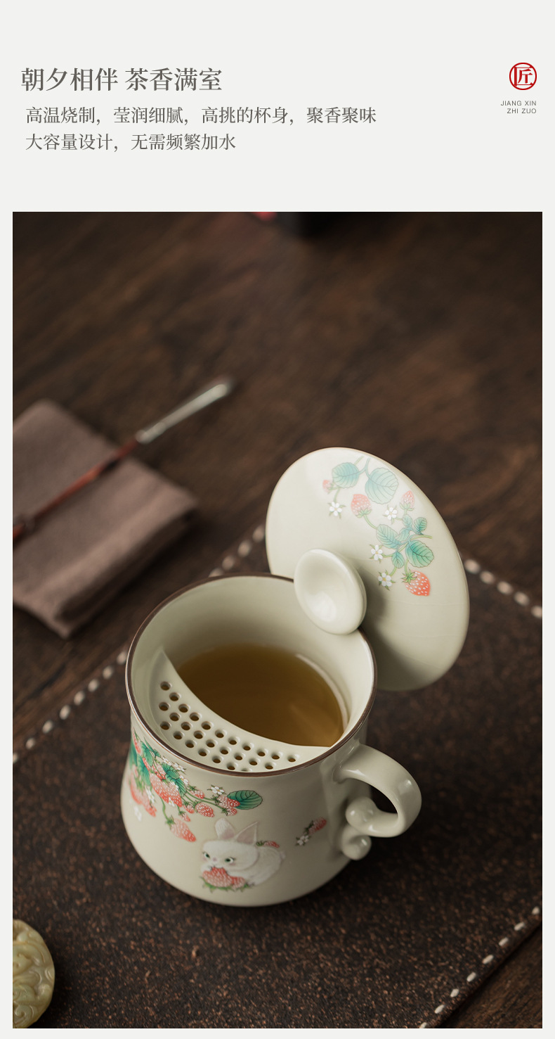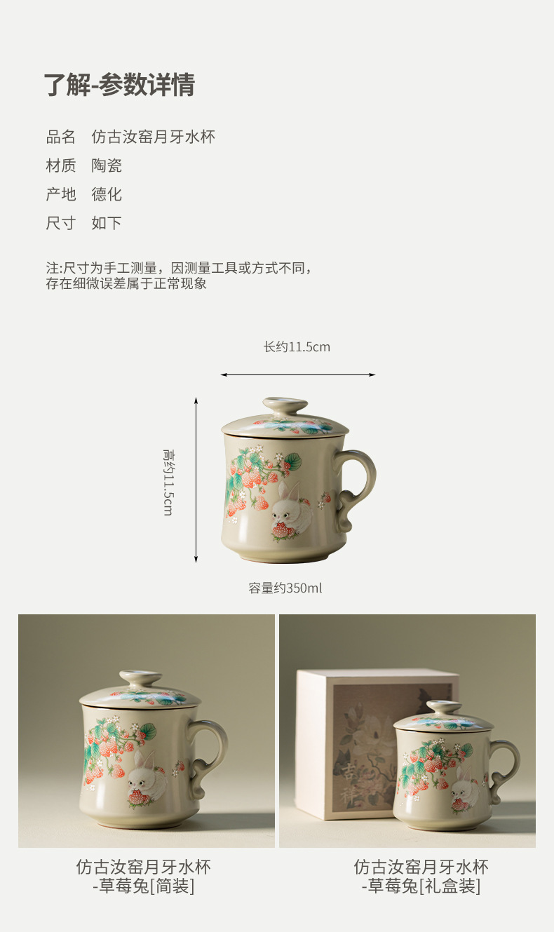 - Ruyao Dâu Thỏ Trăng Lưỡi Liềm Cốc Nước Cốc Sứ Văn Phòng Có Nắp Hộ Gia Đình Công Suất Lớn Lọc Trà