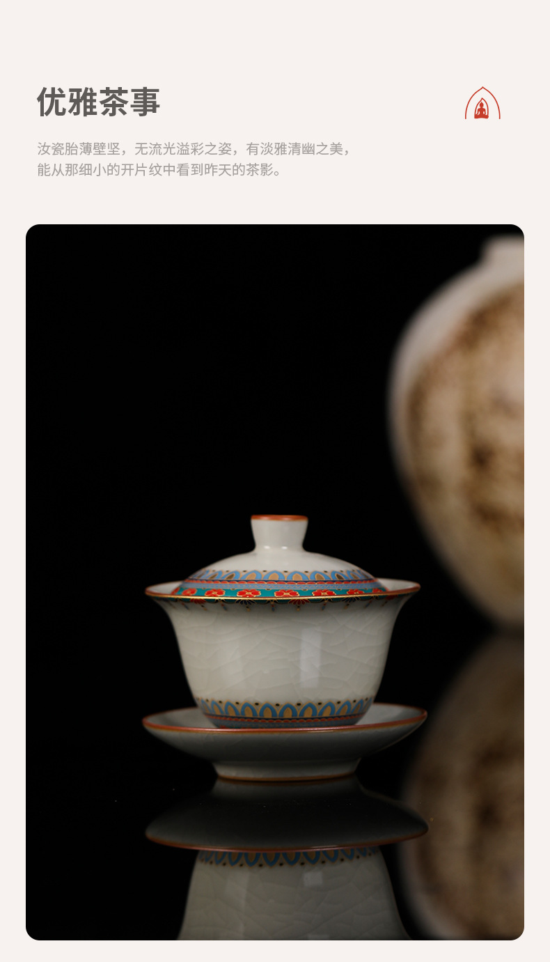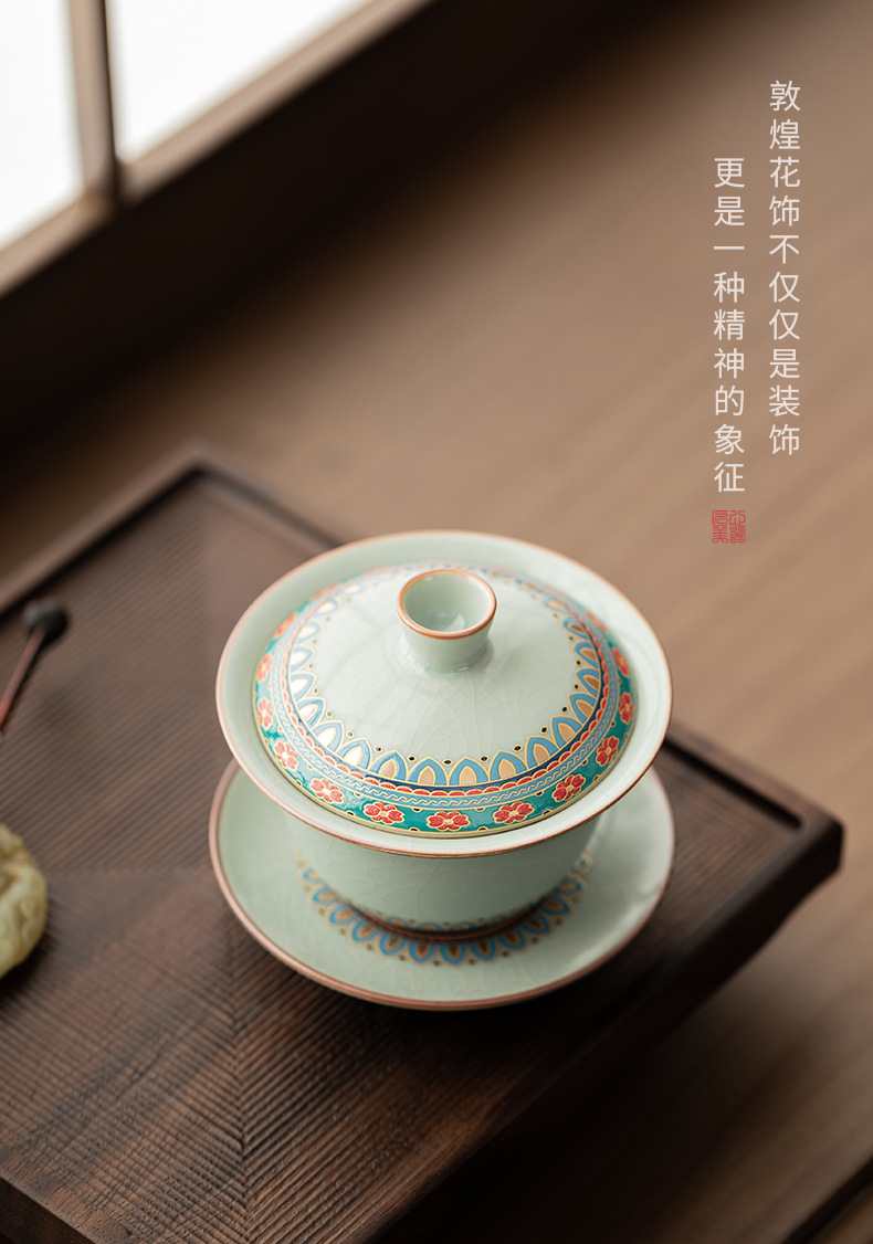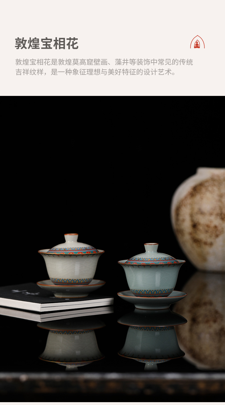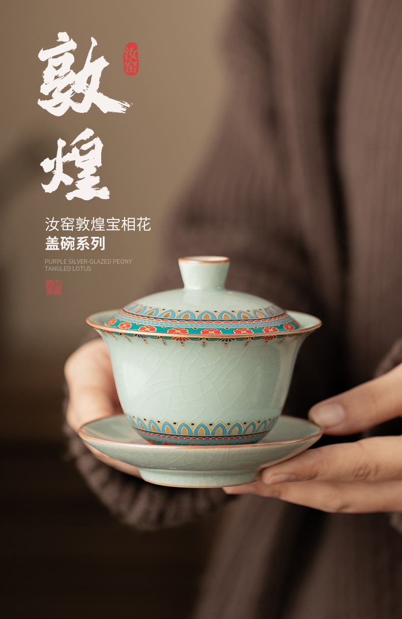 Ruyao Đôn Hoàng Baoxianghua Chén trà Ba tài có nắp, gốm sứ có thể cất giấu và nâng cao Bộ trà Kung Fu Bát trà có nắp
