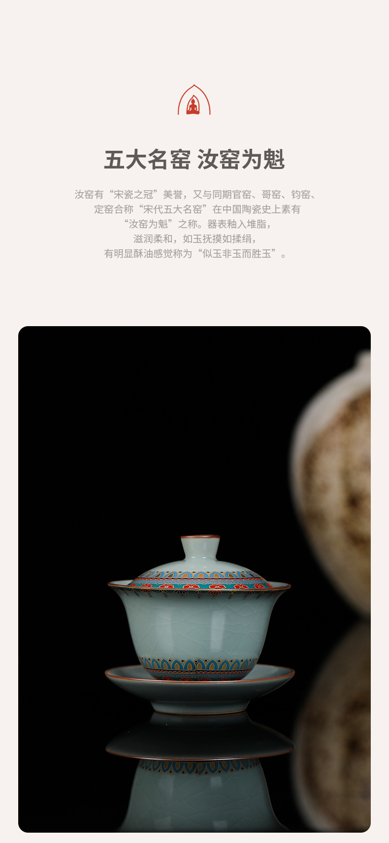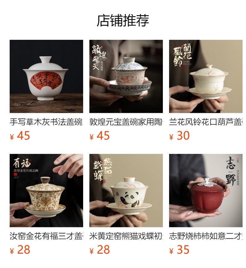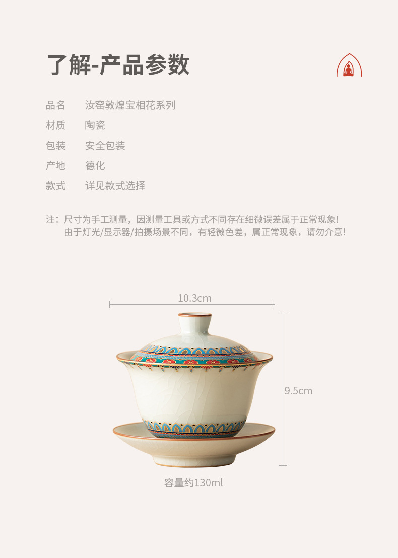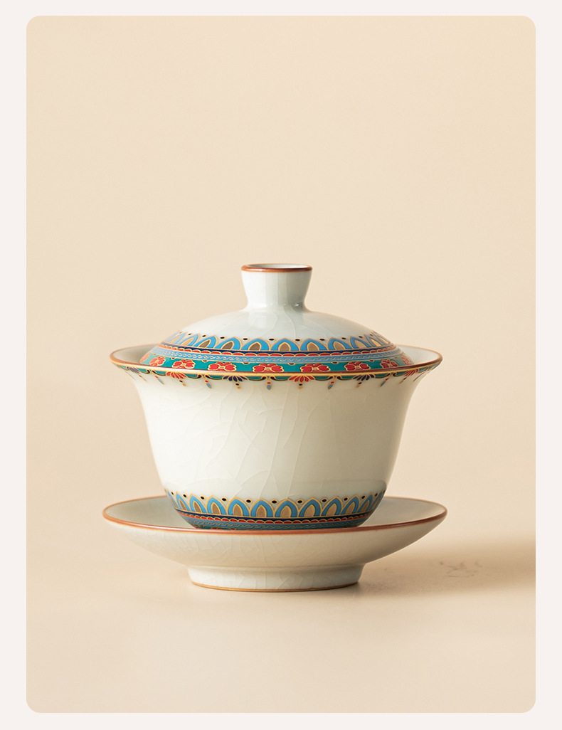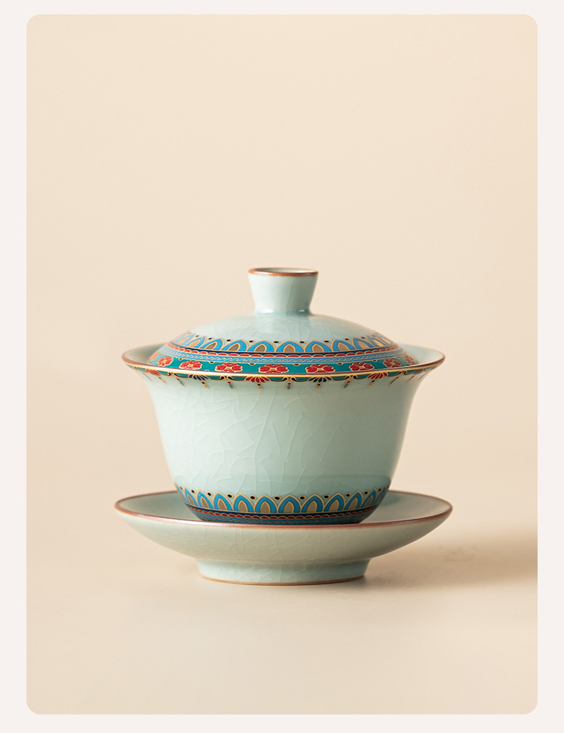 Ruyao Đôn Hoàng Baoxianghua Chén trà Ba tài có nắp, gốm sứ có thể cất giấu và nâng cao Bộ trà Kung Fu Bát trà có nắp