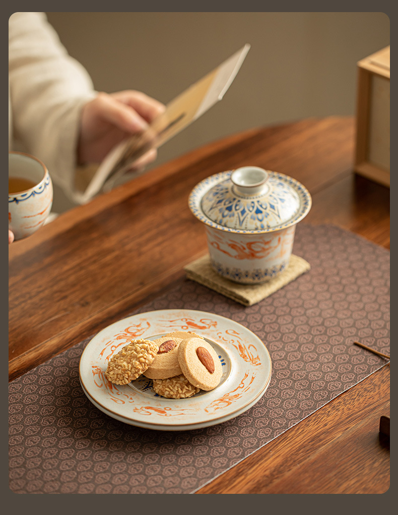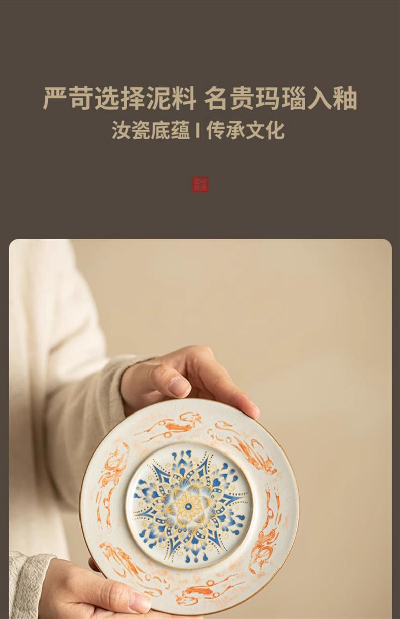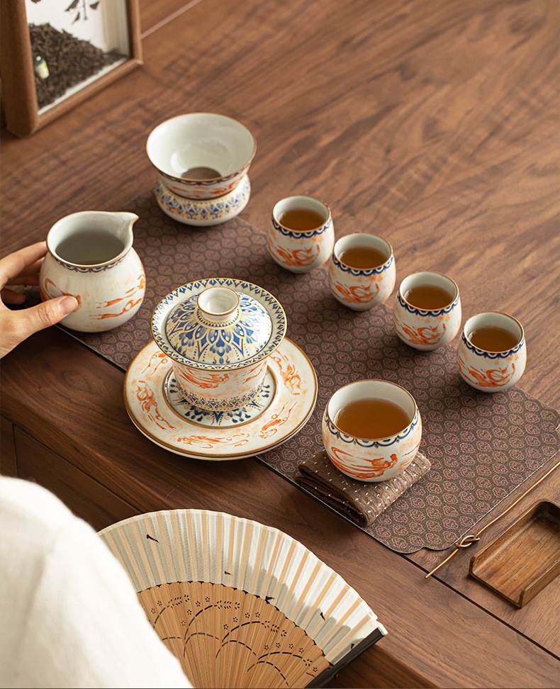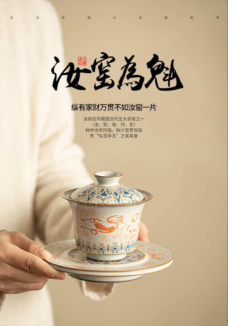- Ruyao Đôn Hoàng Flying Sky Horseshoe Sancai Bát có nắp Bộ ấm trà Kung Fu Bộ chén trà gốm sứ gia dụng trọn bộ
