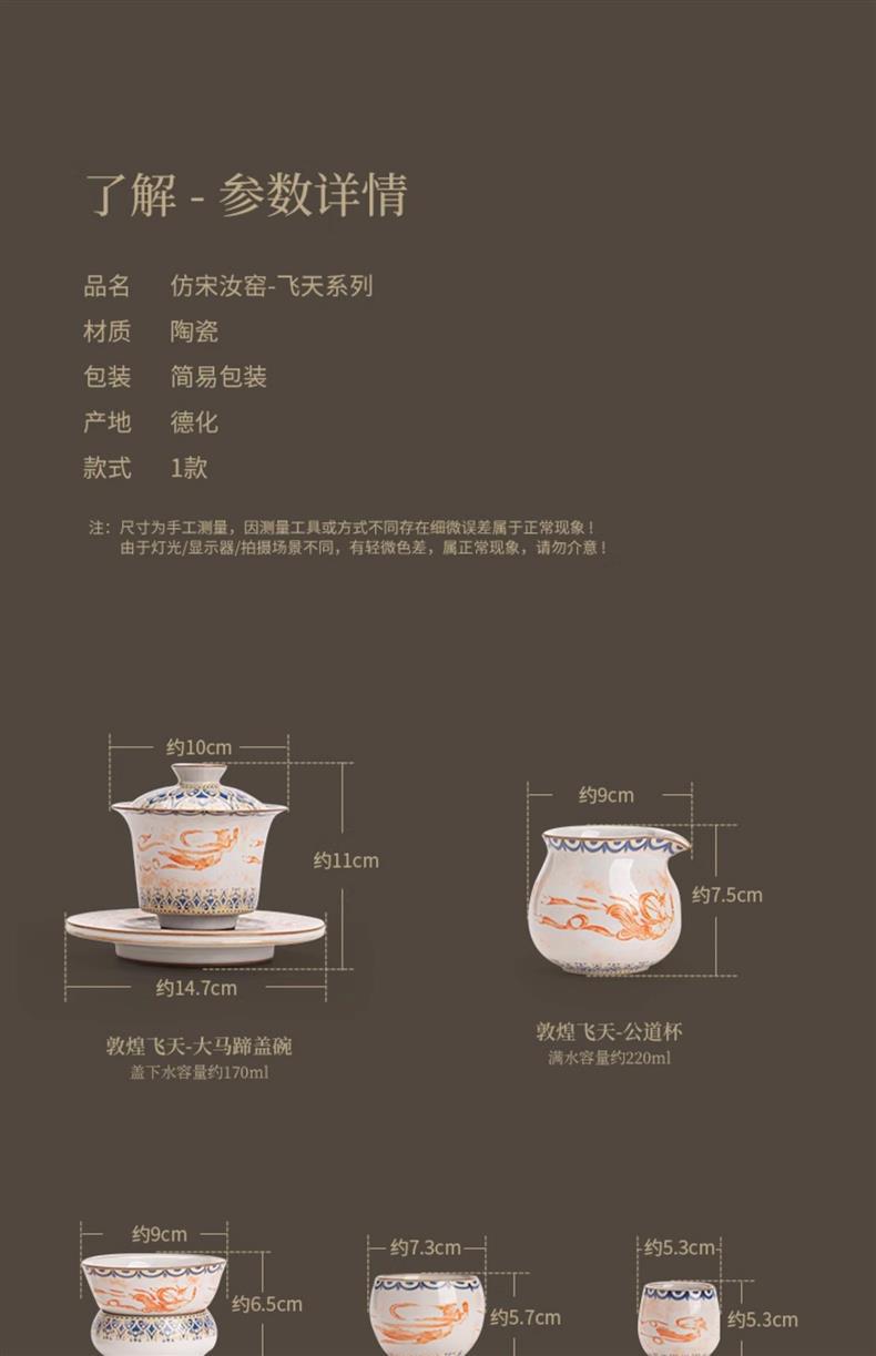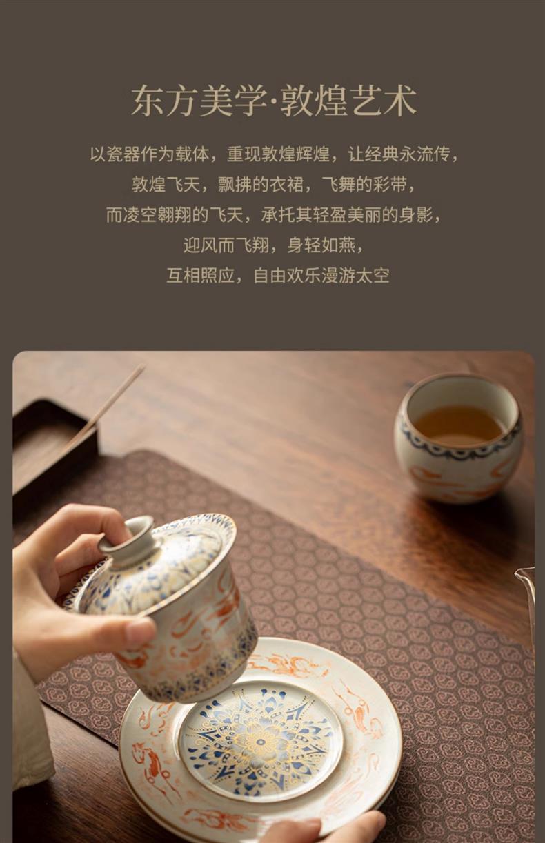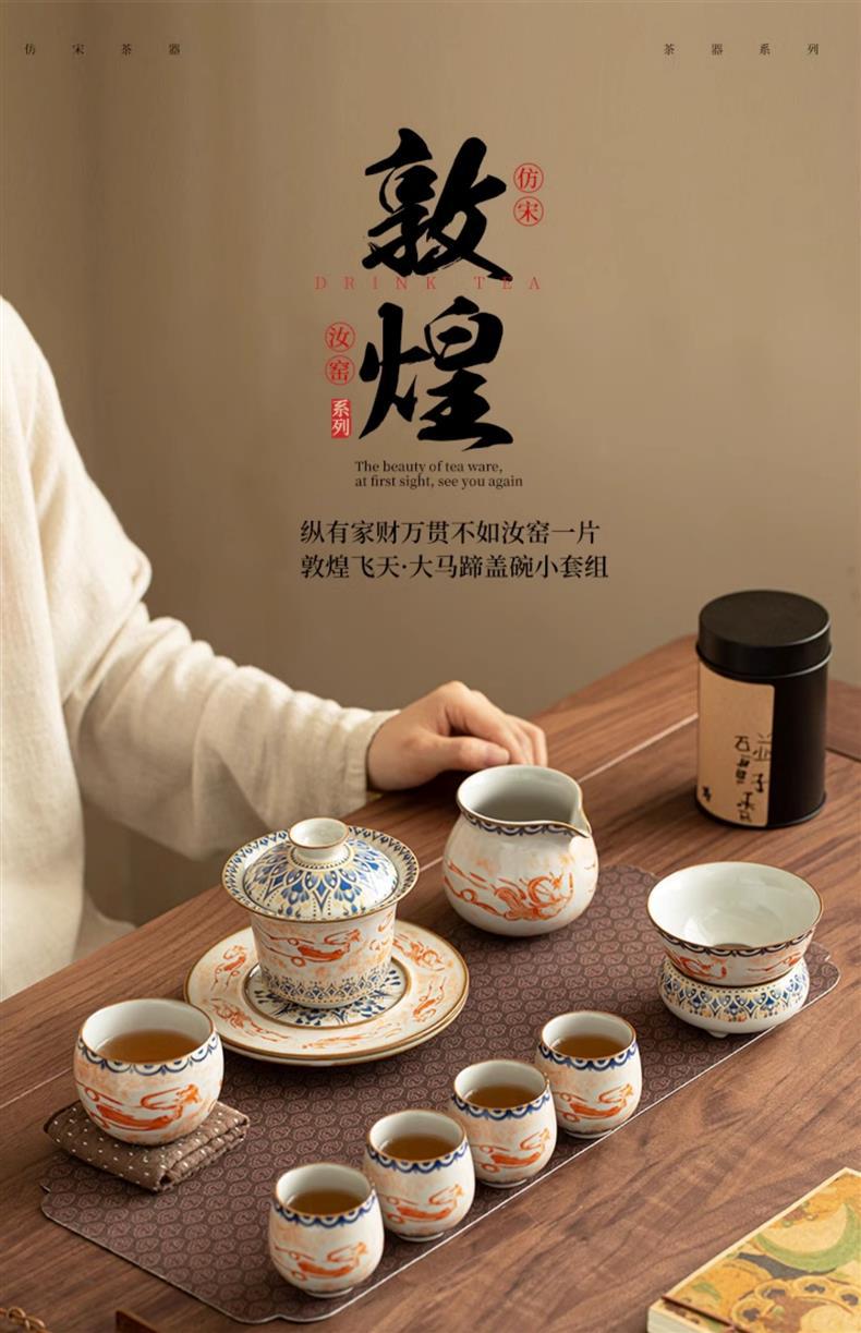Ruyao Đôn Hoàng Flying Sky Horseshoe Sancai Bát có nắp Bộ ấm trà Kung Fu Bộ chén trà gốm sứ gia dụng trọn bộ