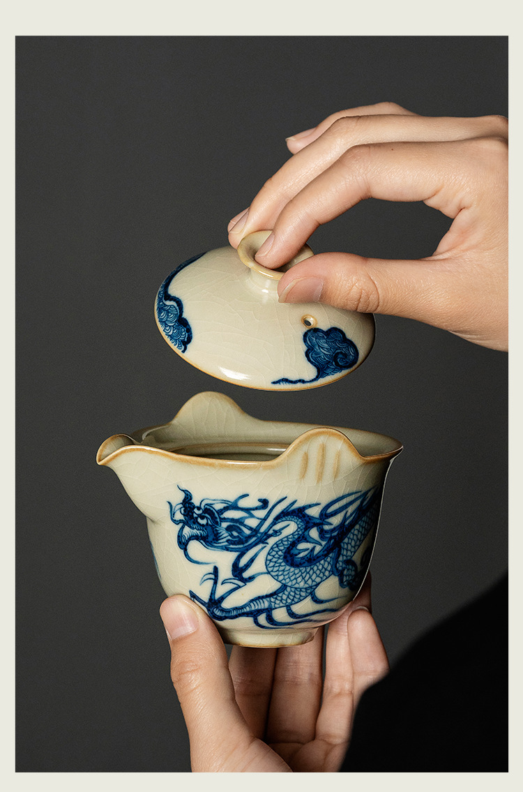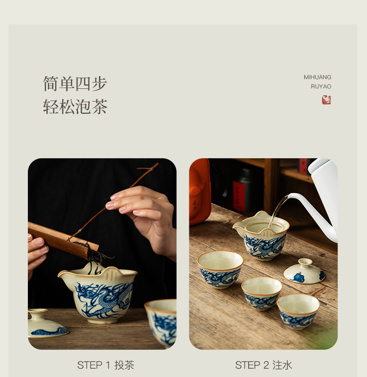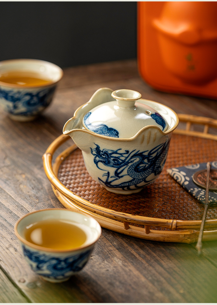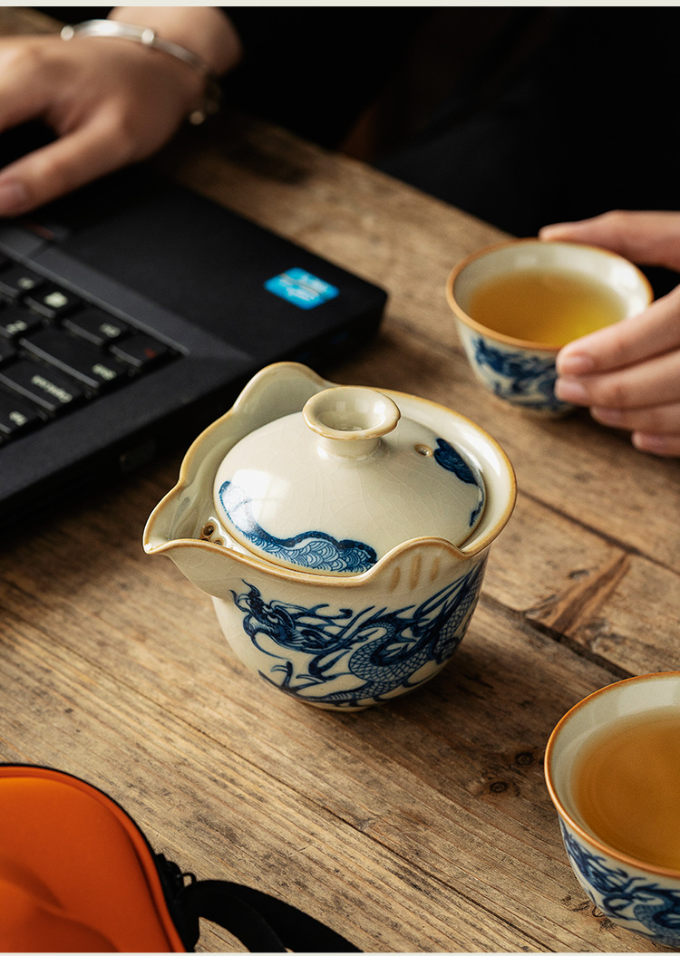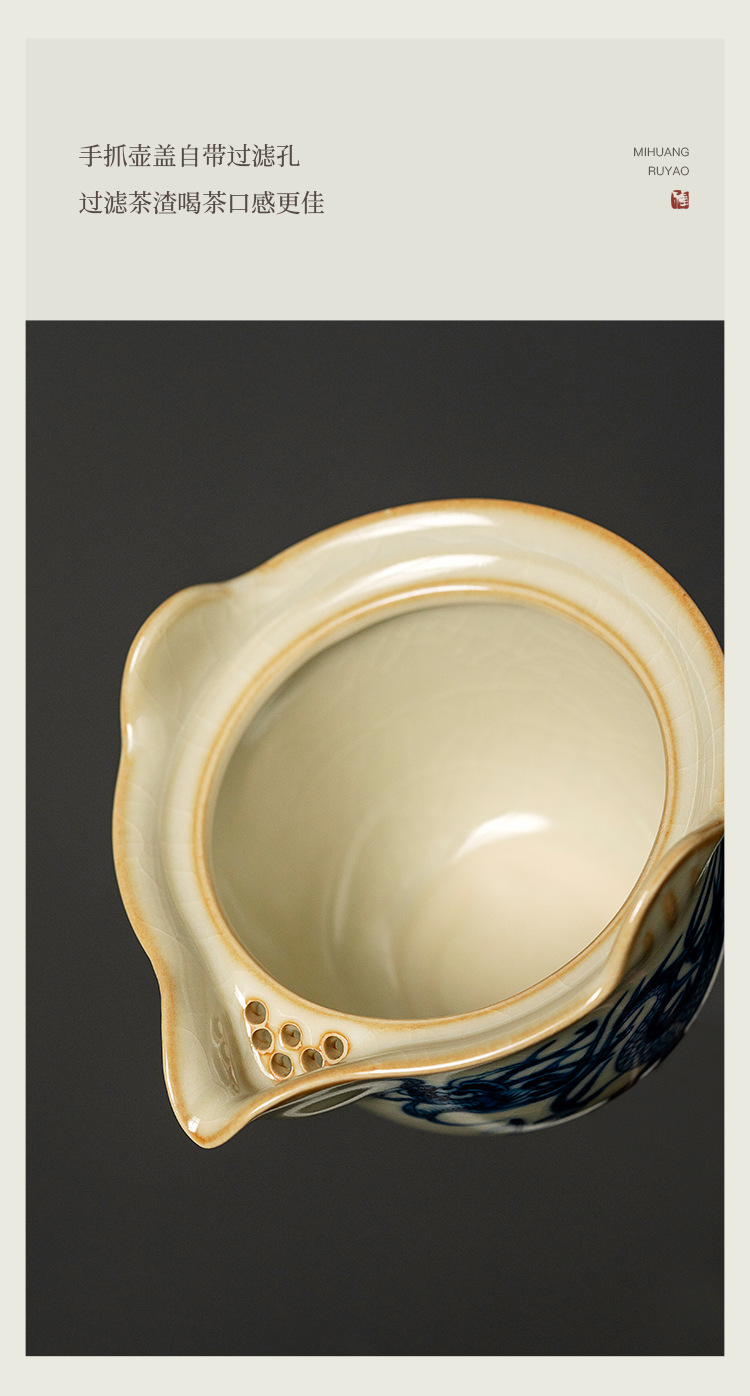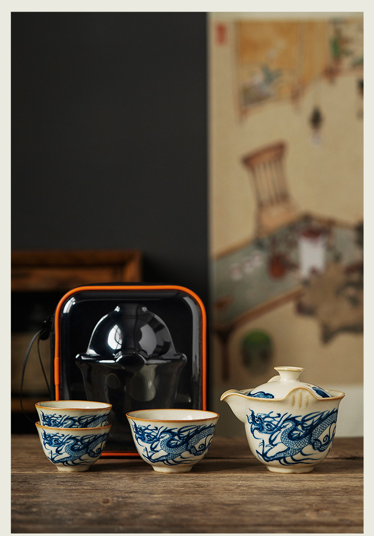 - Ruyao Kuaike Cup Bộ trà du lịch Một ấm Ba cốc Bộ trà cắm trại ngoài trời Thiết bị uống trà gốm di động
