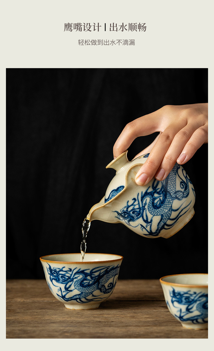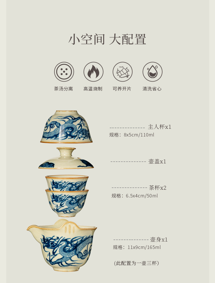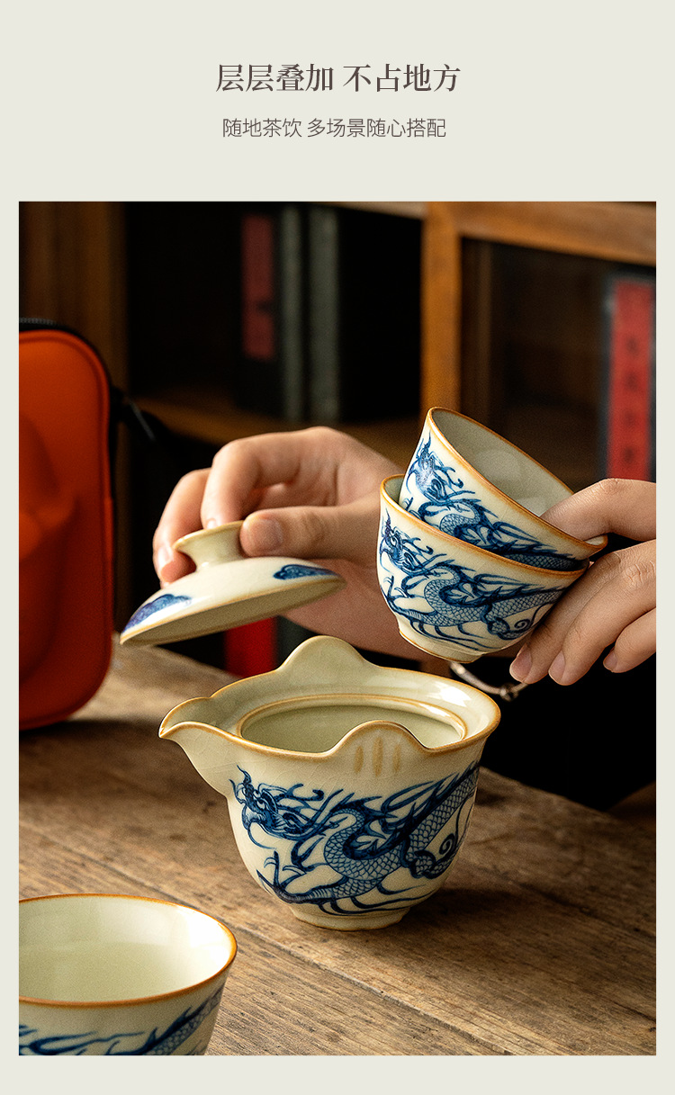 汝窑快客杯旅行茶具一壶三杯户外露营茶具套装喝茶装备陶瓷便携式